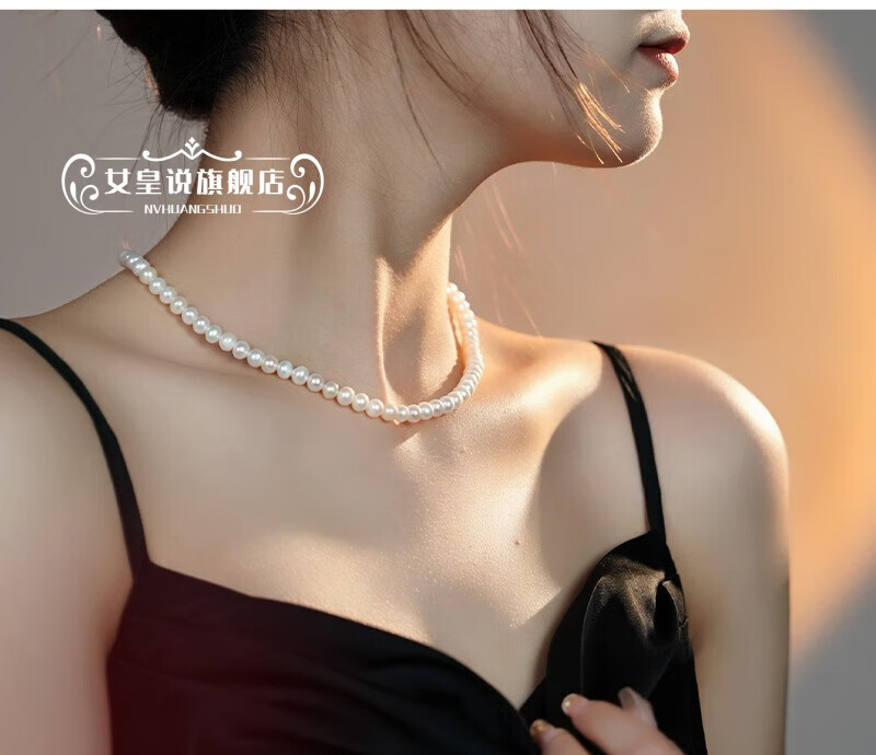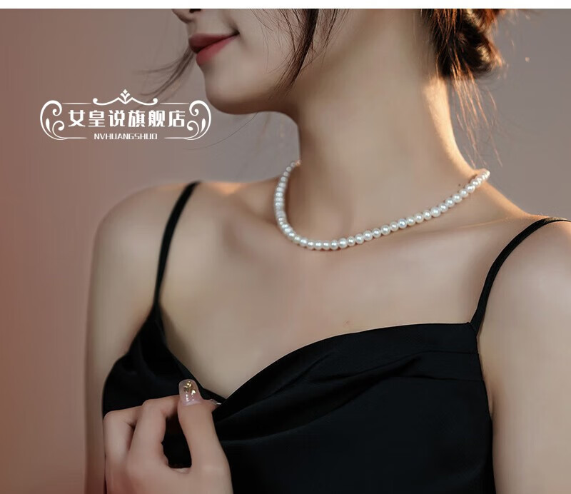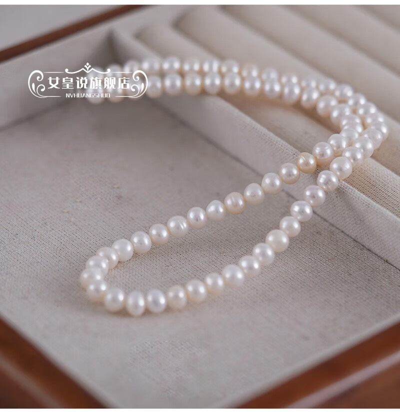女皇说【极光/正圆】珍珠项链年轻款无核锁骨链送七夕情人节礼物 42cm左右【长度可定制可刻字】 珠径7-8mm