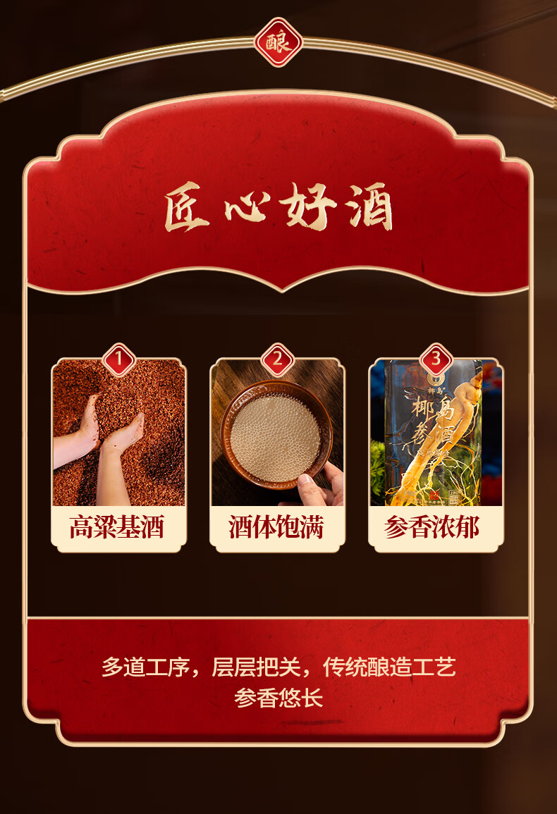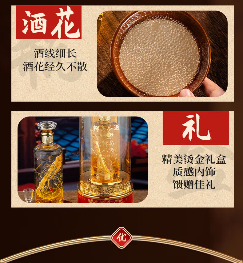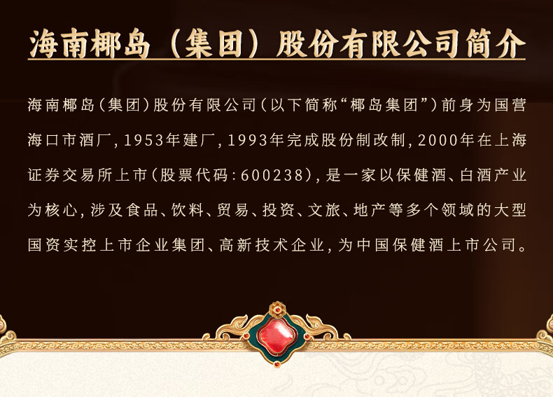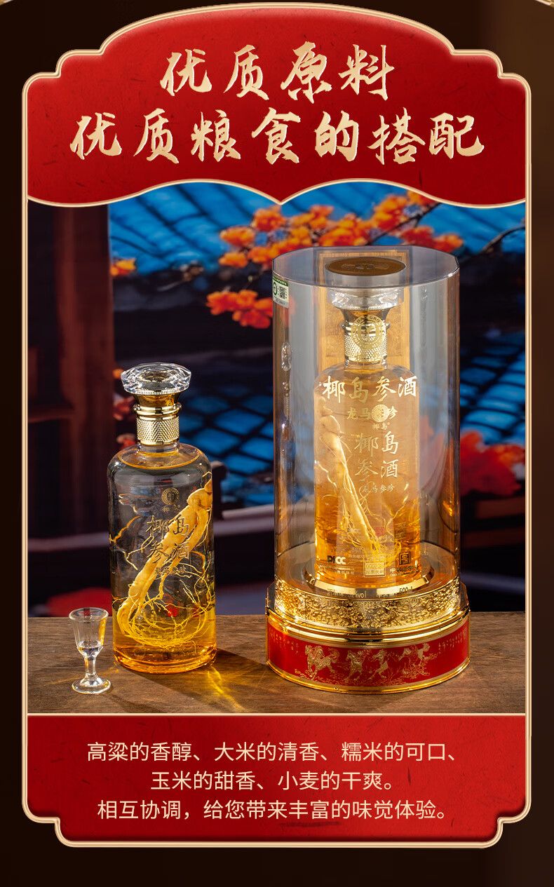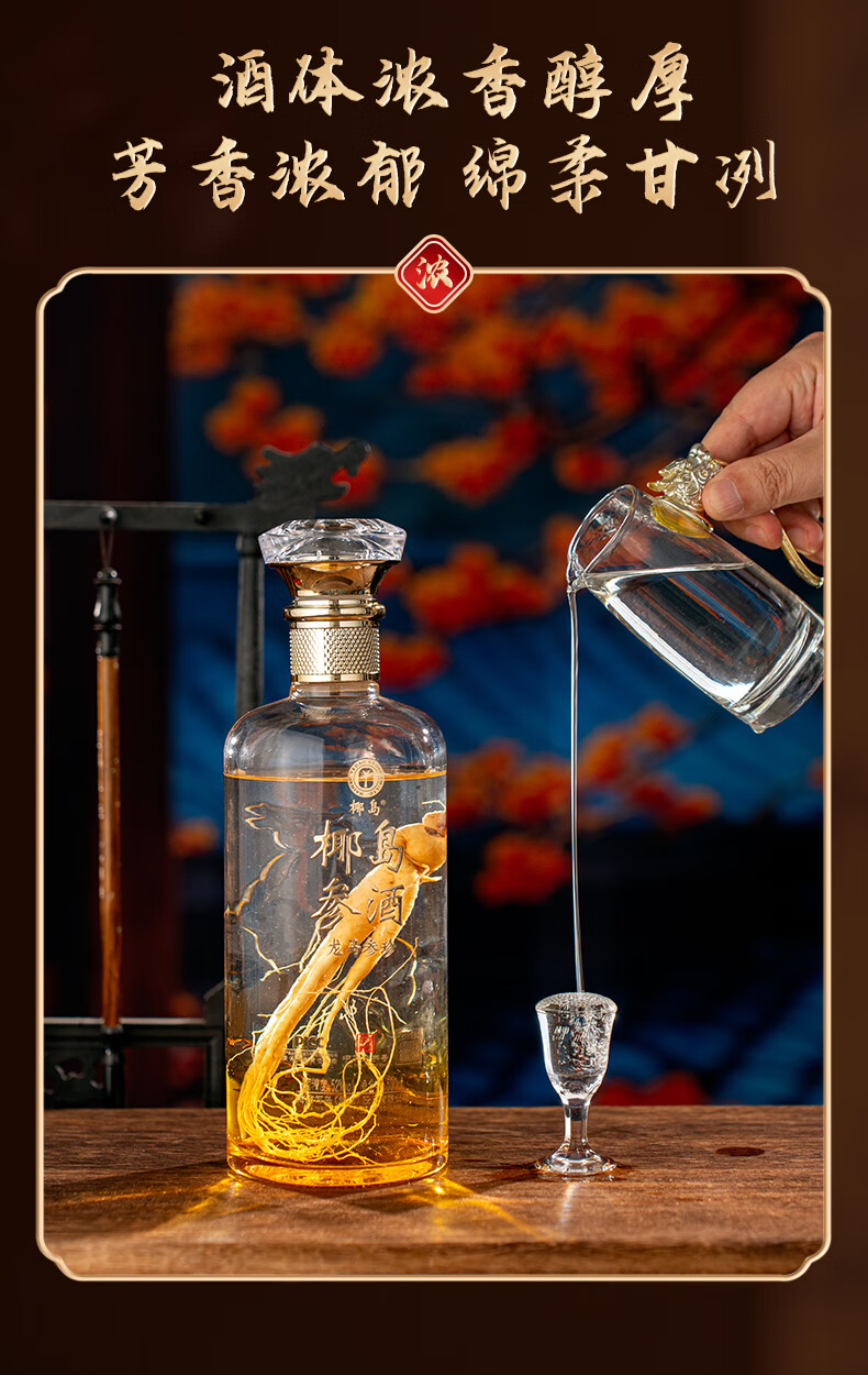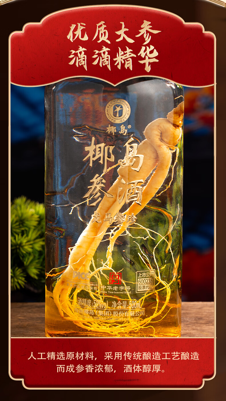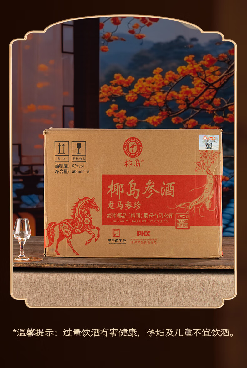 椰岛(YEDAO)参酒龙马参珍商务宴请过节送礼给老人 整箱装礼盒装 52度 500mL 6瓶 椰岛龙马参珍佳节送礼