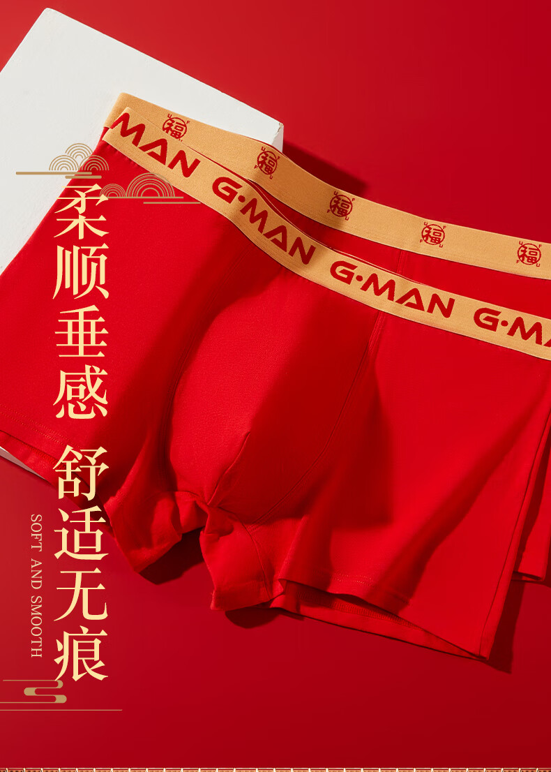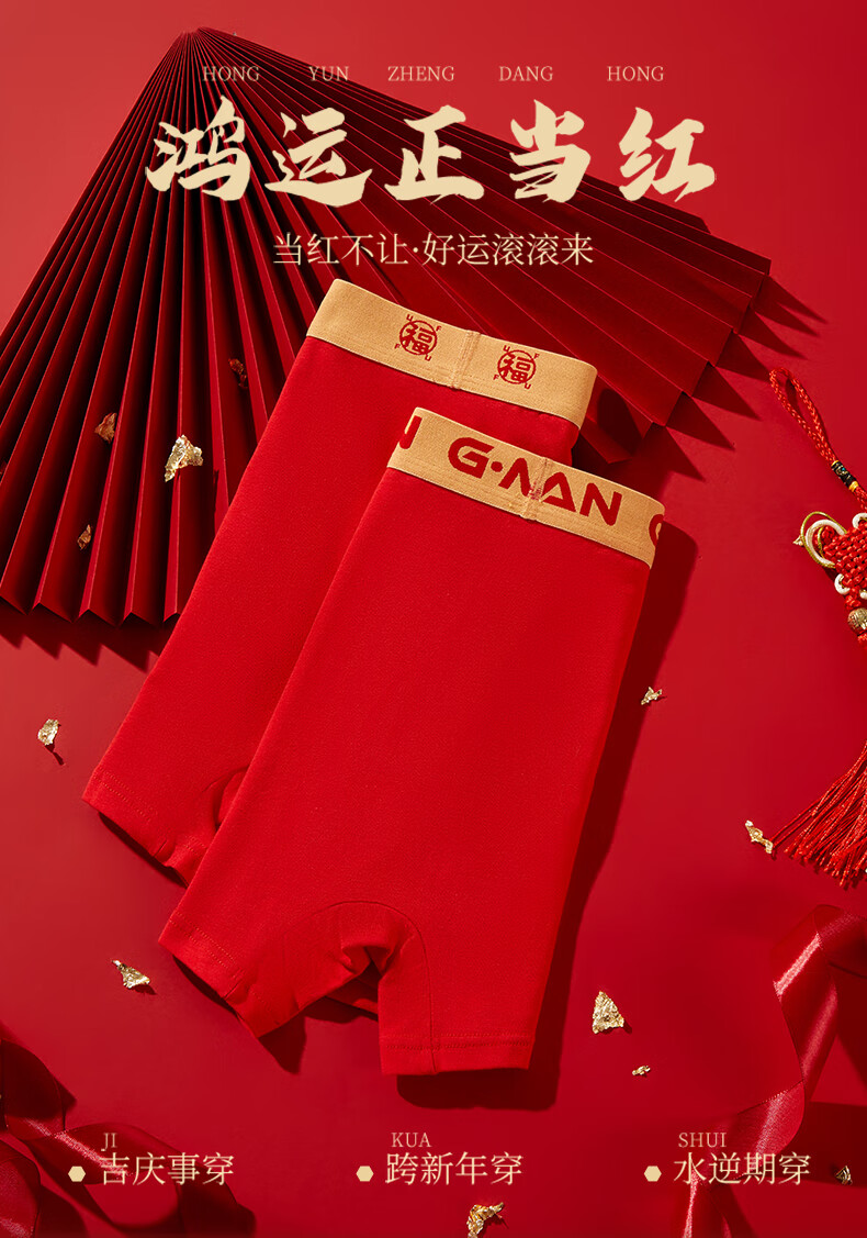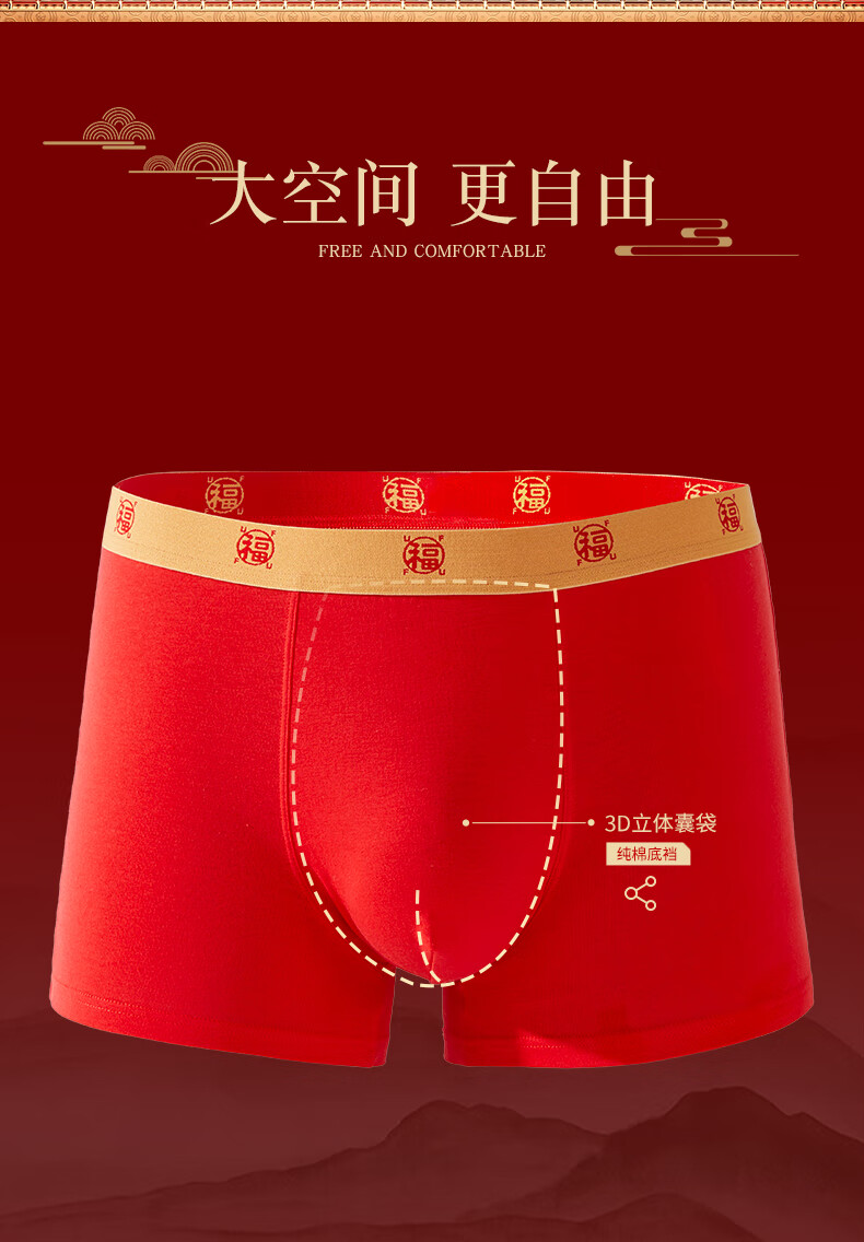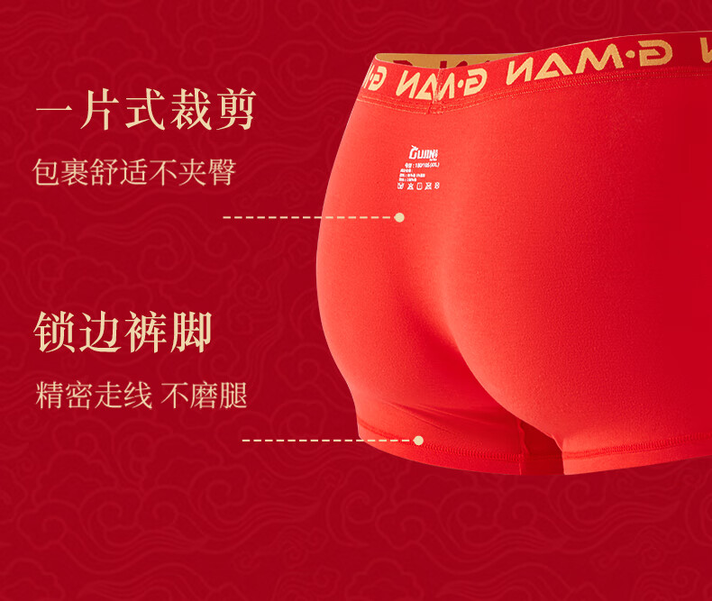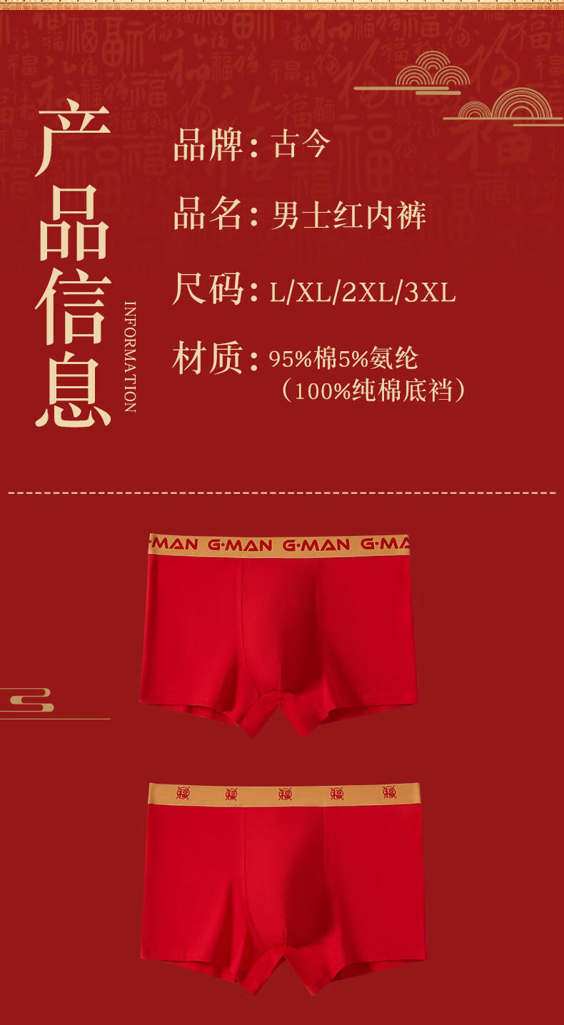 古今红色内裤男士全纯棉短裤衩头高端平四角本命年男生结婚大码 红福字+红字母 2条 XL 体重60-70kg