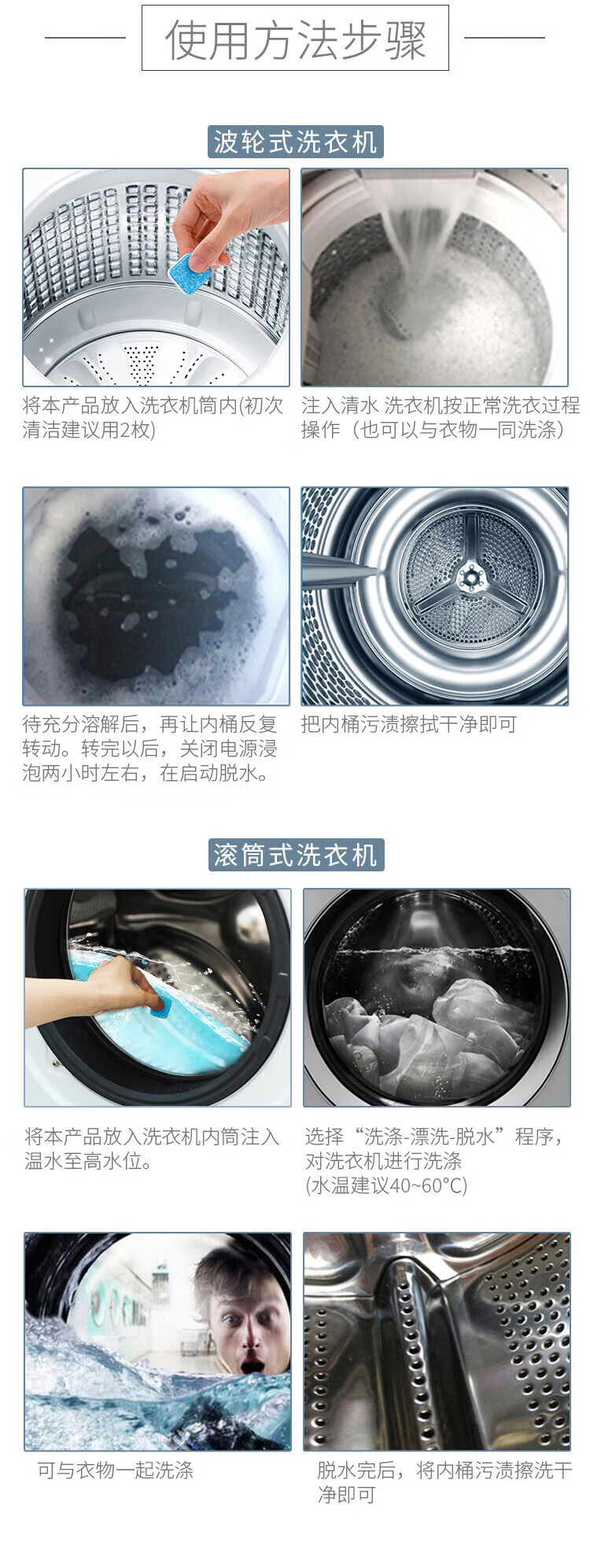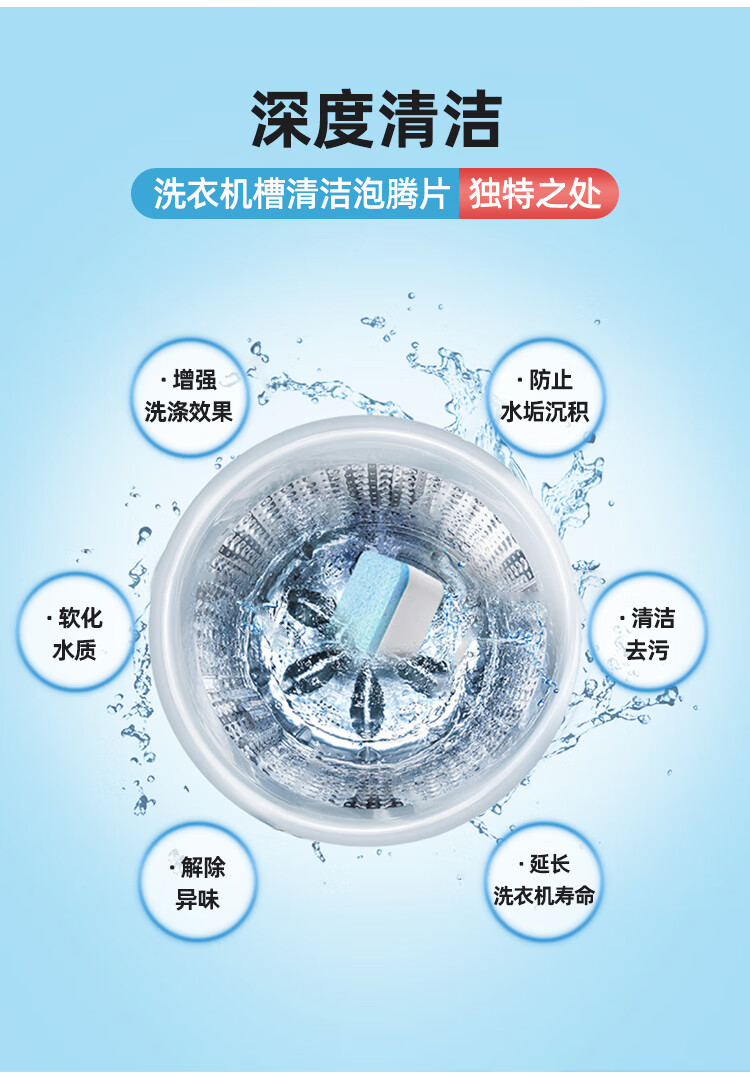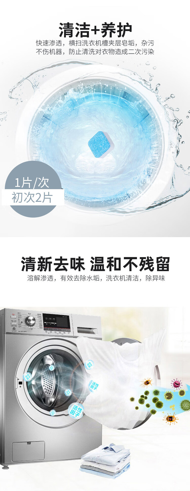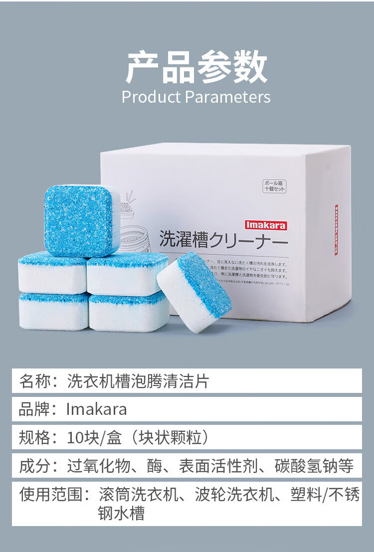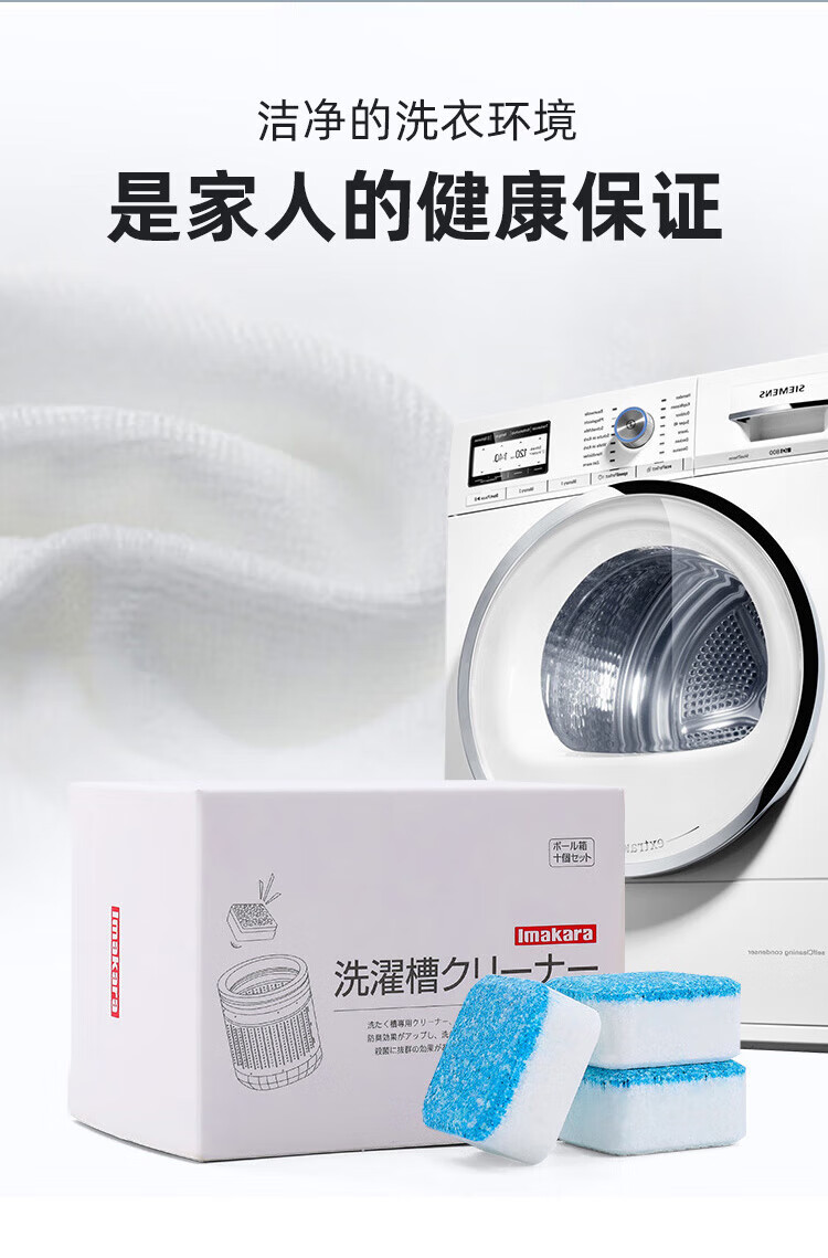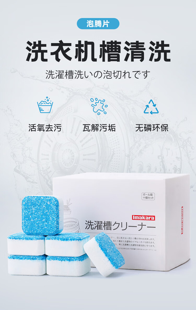 Imakara清洗洗衣机槽的专用深度清洁剂洗衣机泡腾片清洗剂去污去异味除垢 滚筒洗衣机泡腾片-10块装