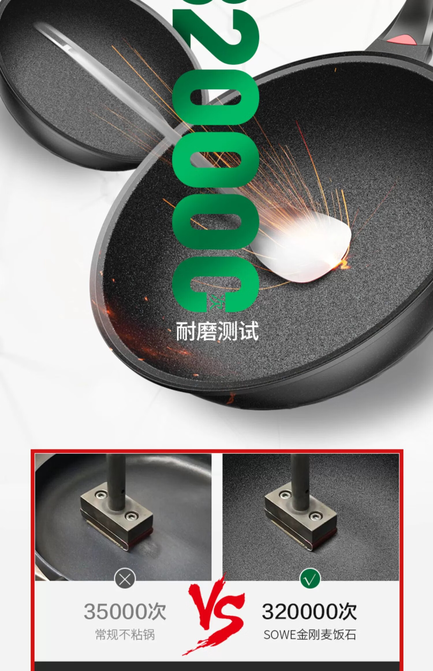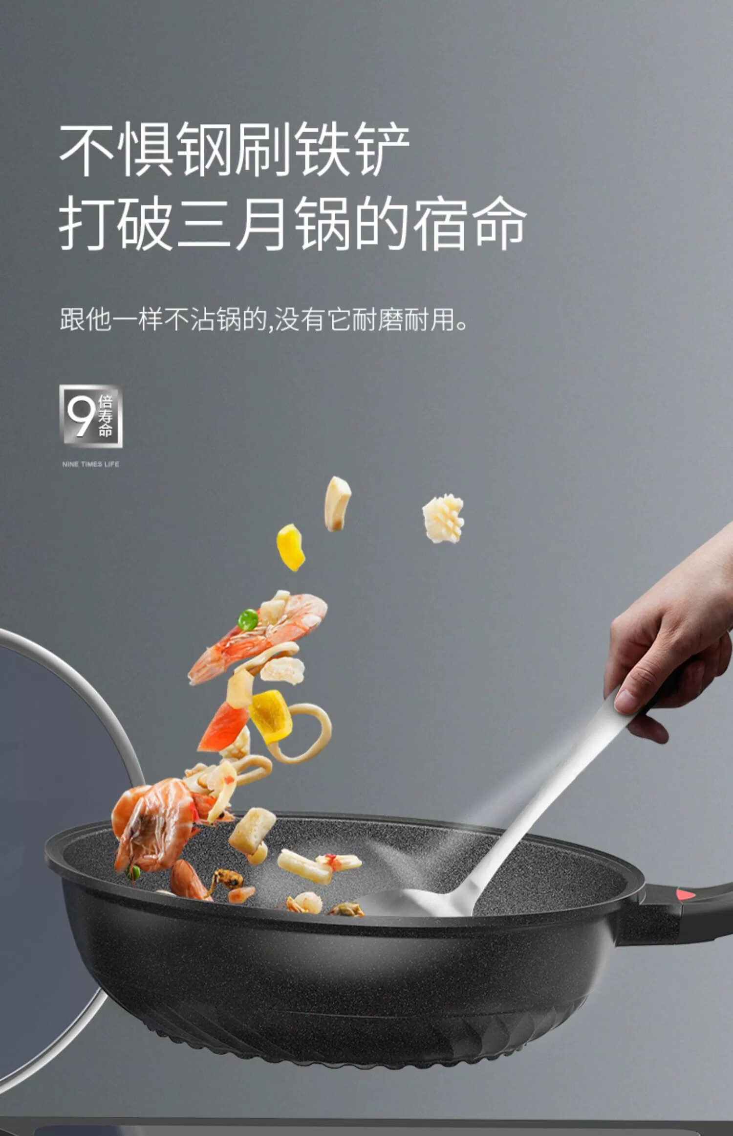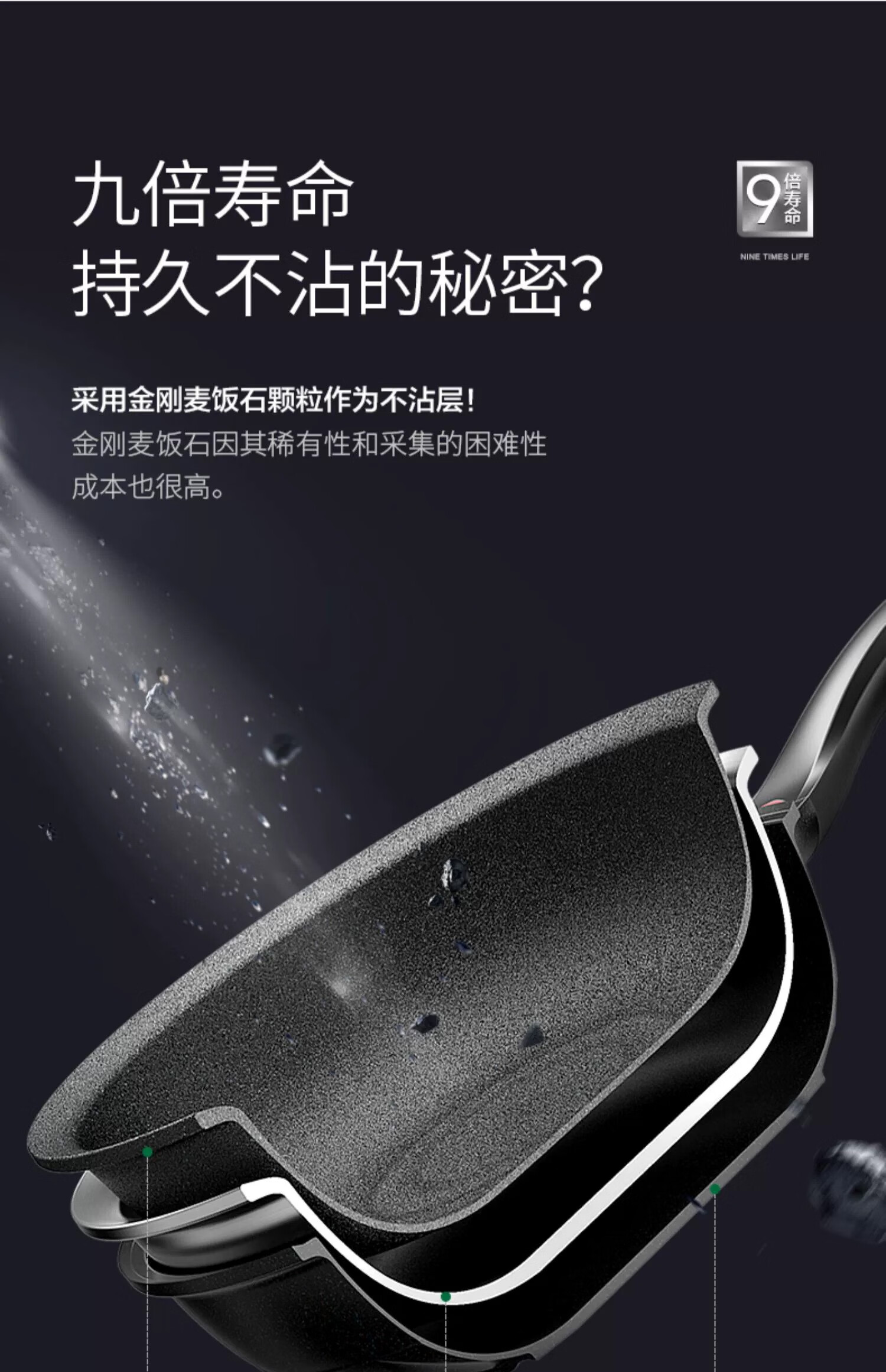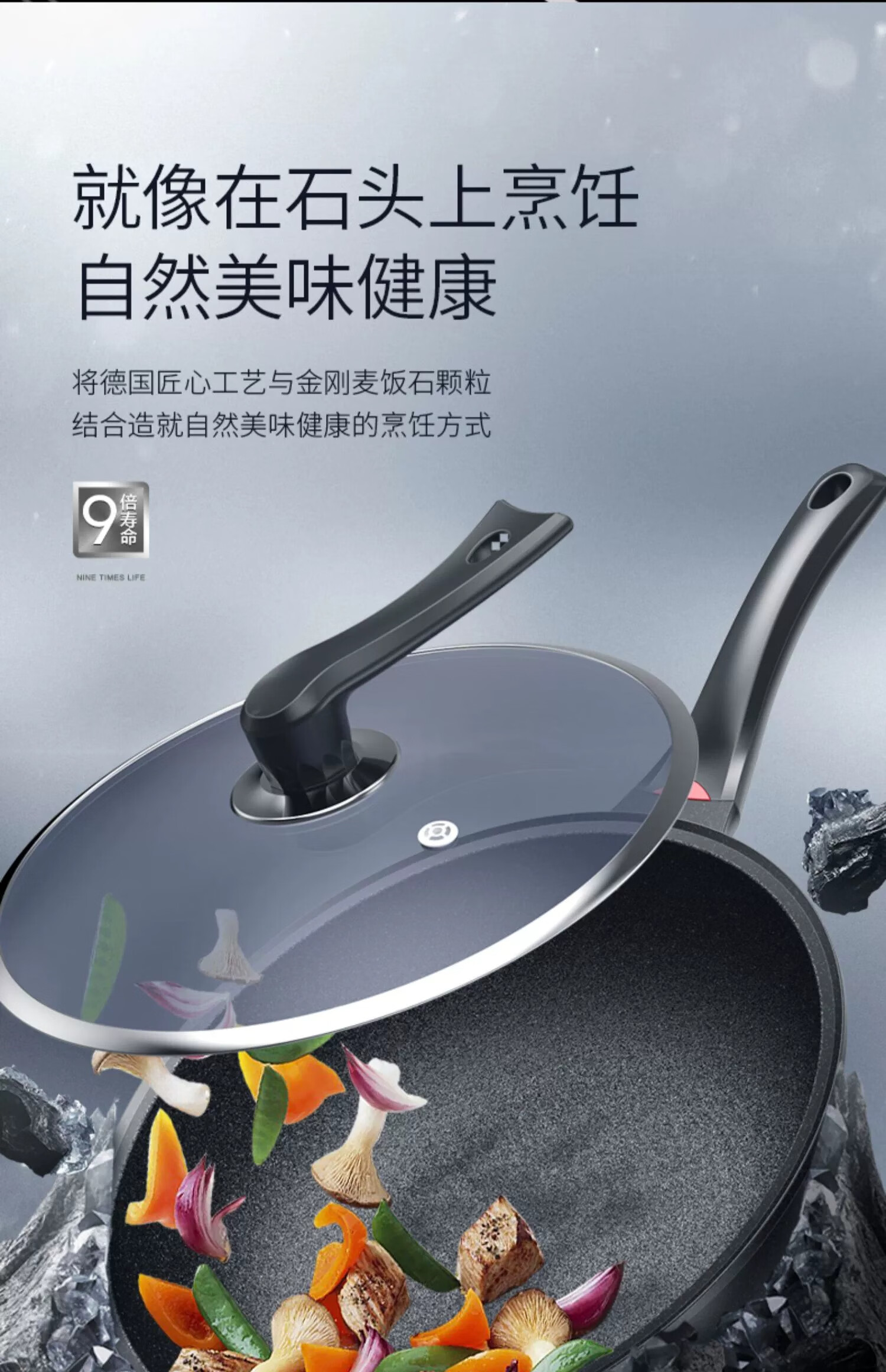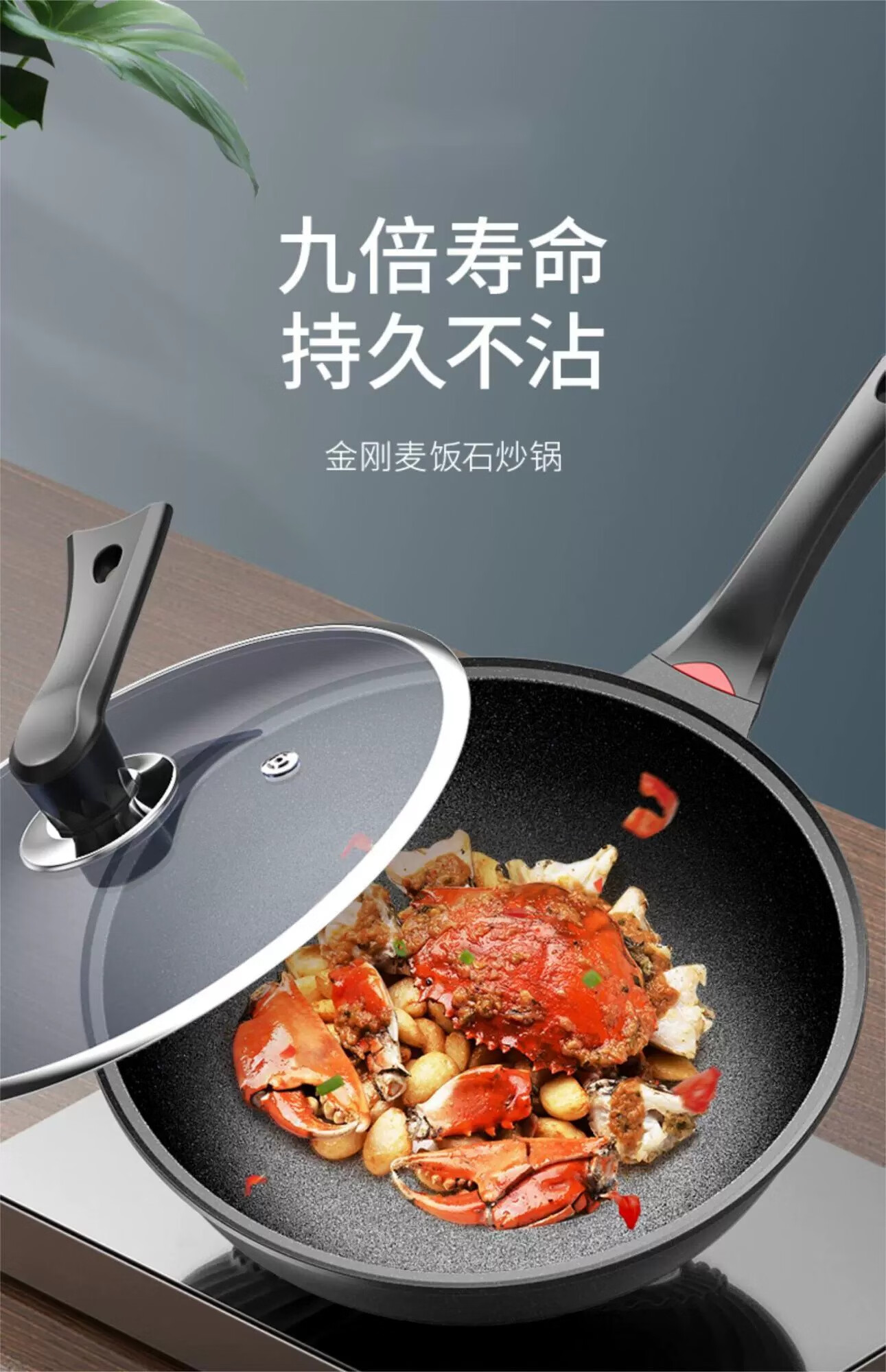 GNNDXX德国金刚麦饭石不粘锅炒锅家用平底锅电磁炉煤气灶无涂层炒菜煎锅 【经典款】炒锅[适用4-7人] 34cm