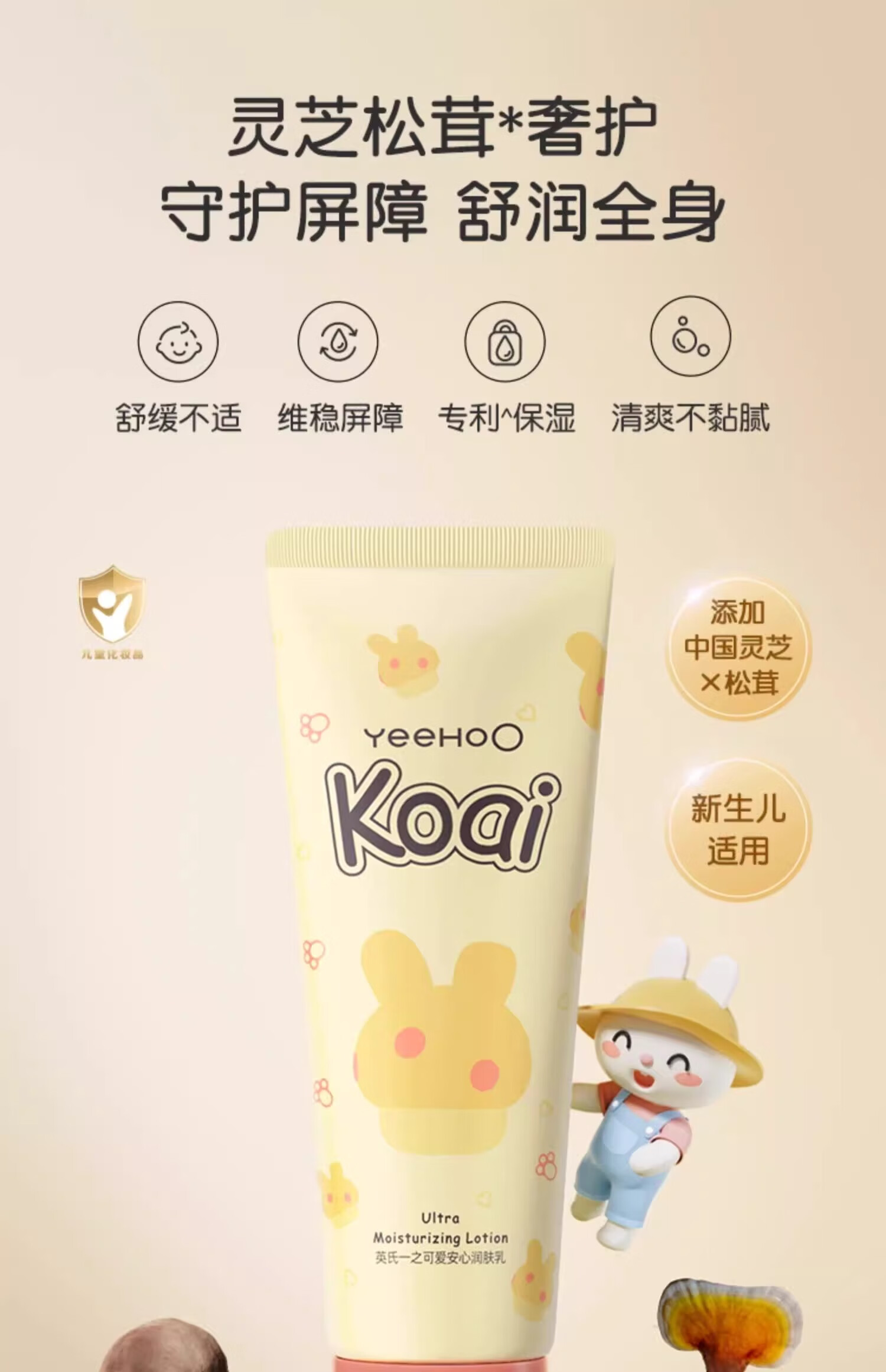 英氏(YEEHOO)英氏婴儿身体乳儿童宝宝蘑菇霜全身润肤乳干燥保湿补水滋润春夏 蘑菇安心润肤乳100g*2