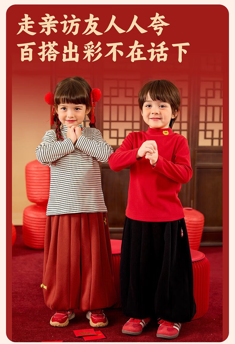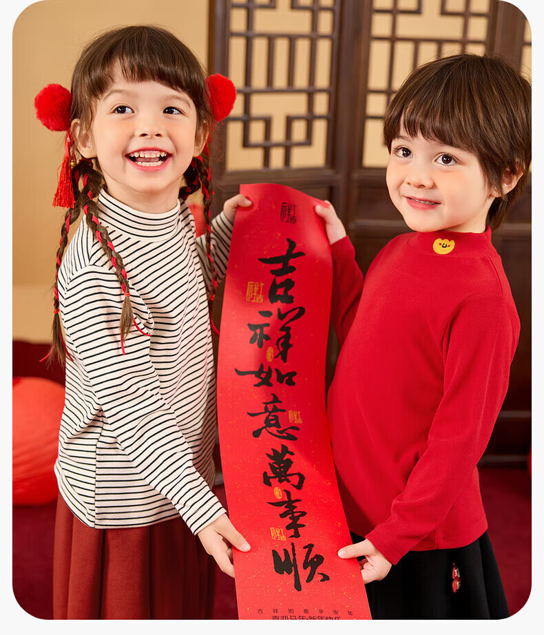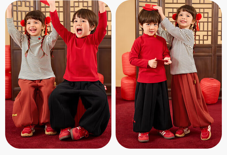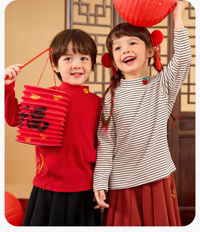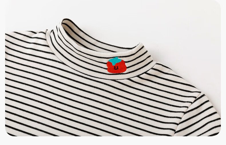 嘟嘟家女童红色打底衫拜年服冬款女孩长袖上衣t恤冬装本命年新年童装 黑白系条纹 100