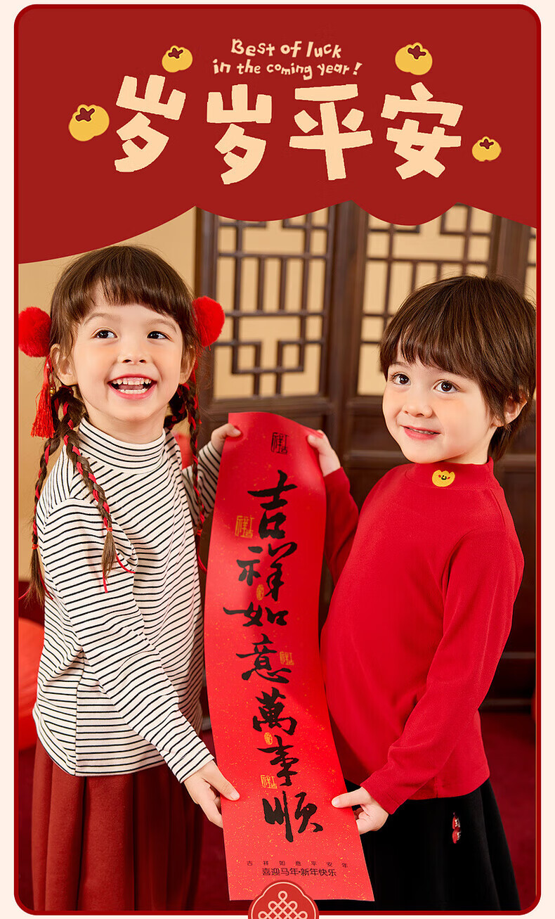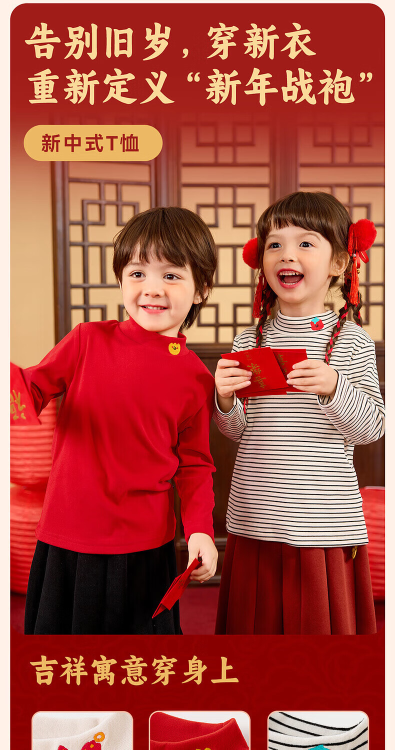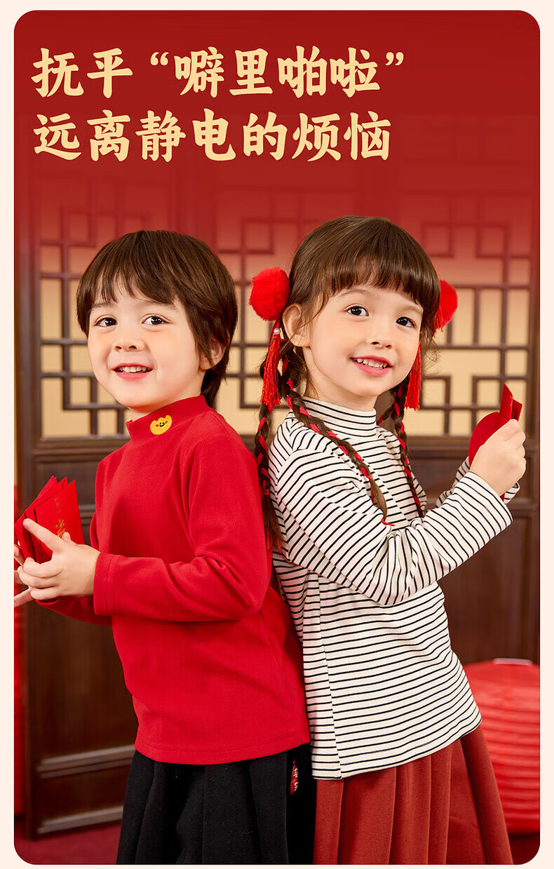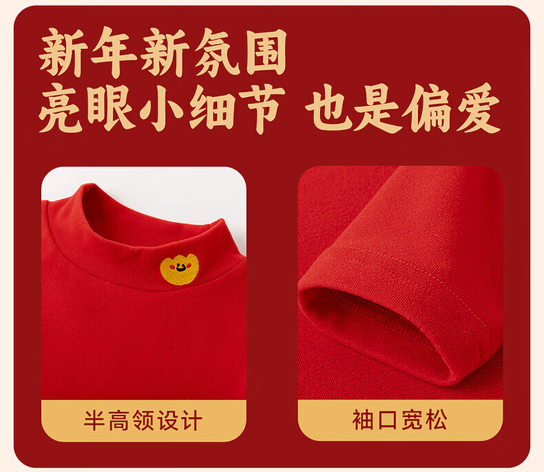 嘟嘟家女童红色打底衫拜年服冬款女孩长袖上衣t恤冬装本命年新年童装 黑白系条纹 100