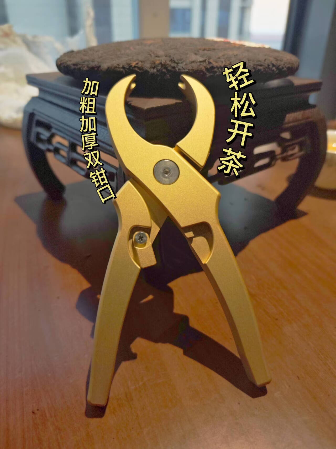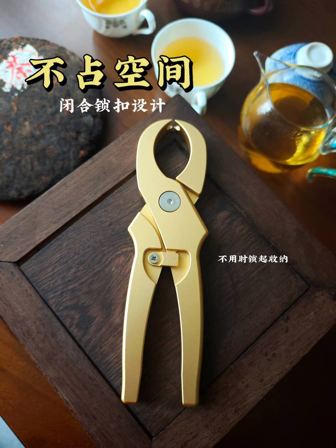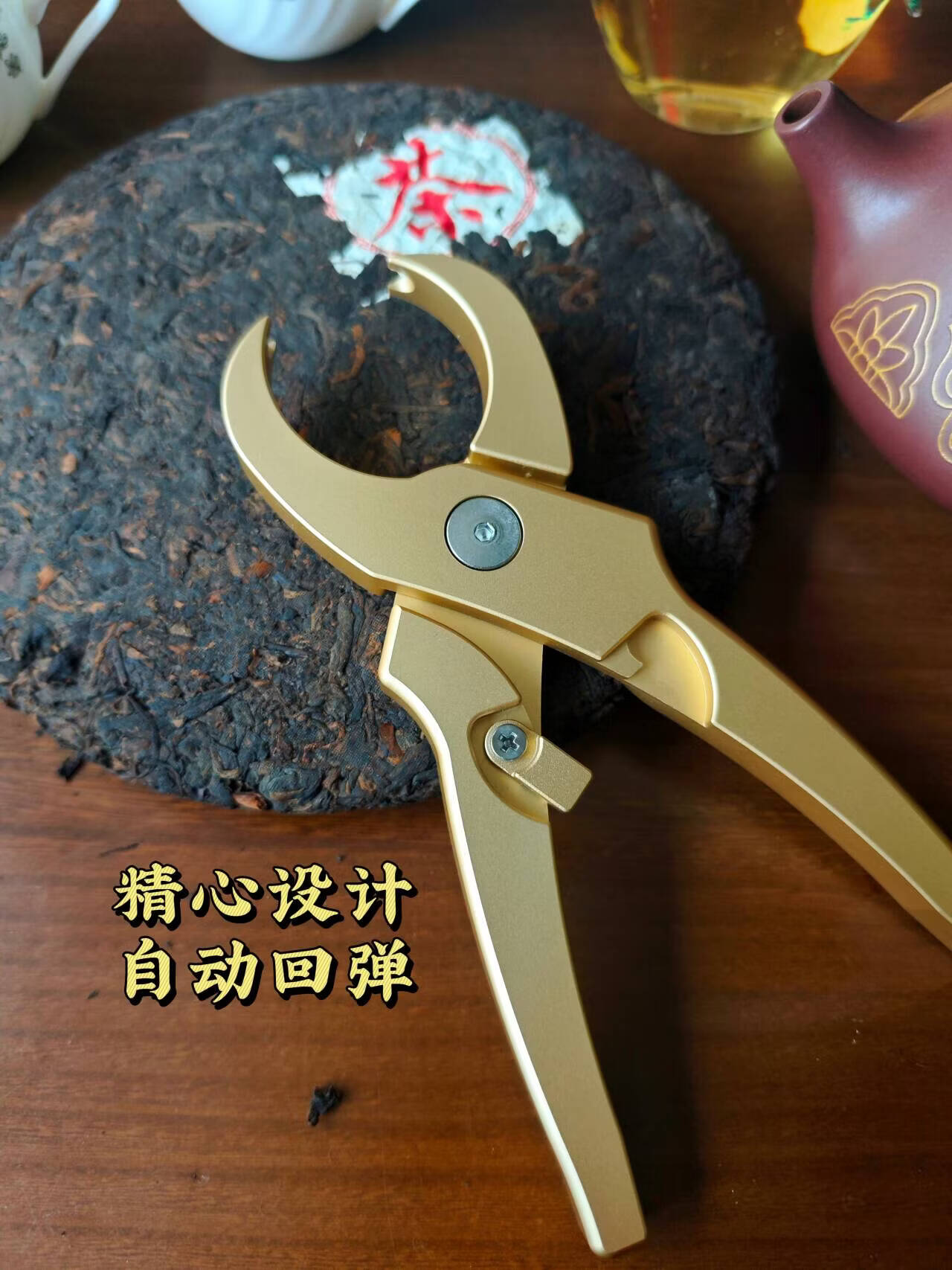 茶钳铝合金功夫茶具开茶钳子普洱茶开茶饼茶砖开口器自动回弹撬茶 新款金黄色茶钳【礼盒装】 金黄色