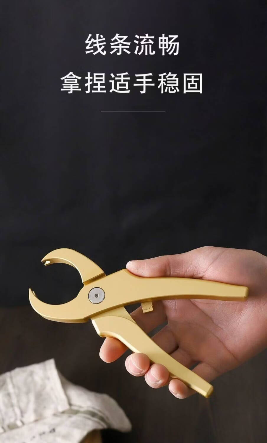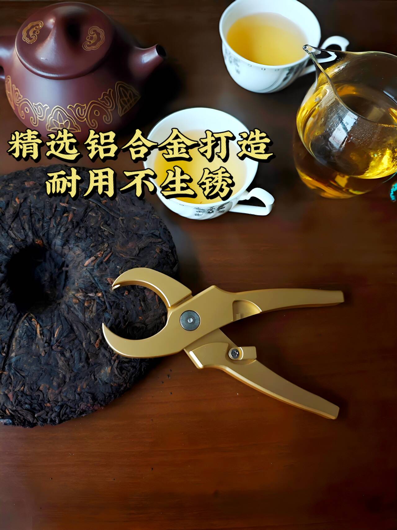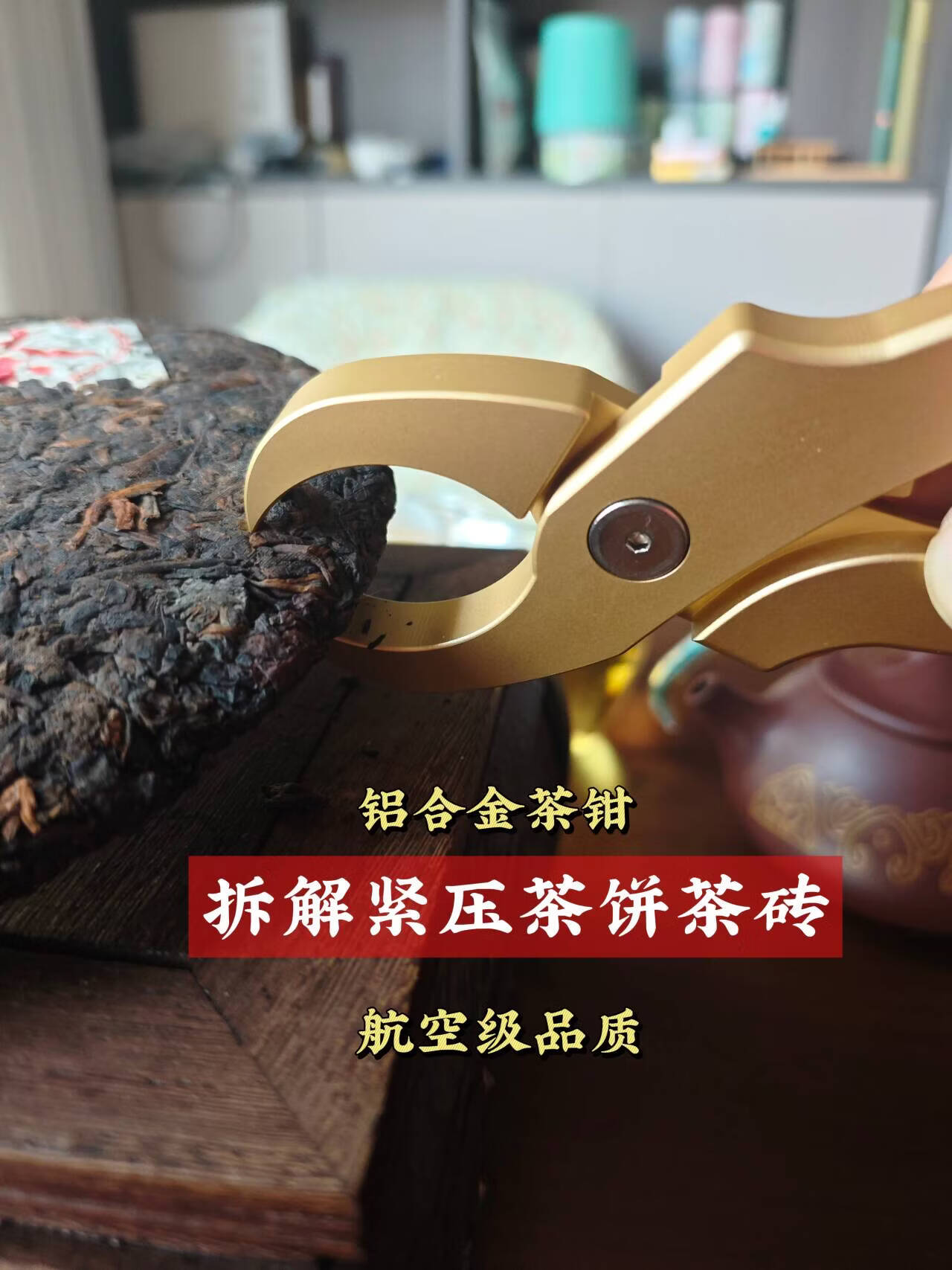 茶钳铝合金功夫茶具开茶钳子普洱茶开茶饼茶砖开口器自动回弹撬茶 新款金黄色茶钳【礼盒装】 金黄色