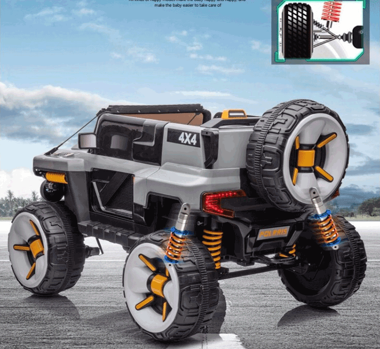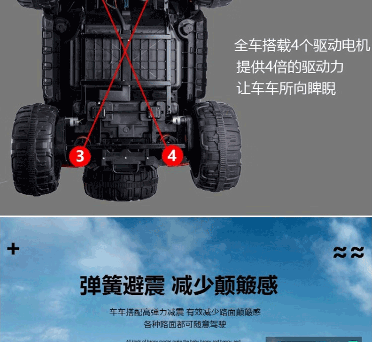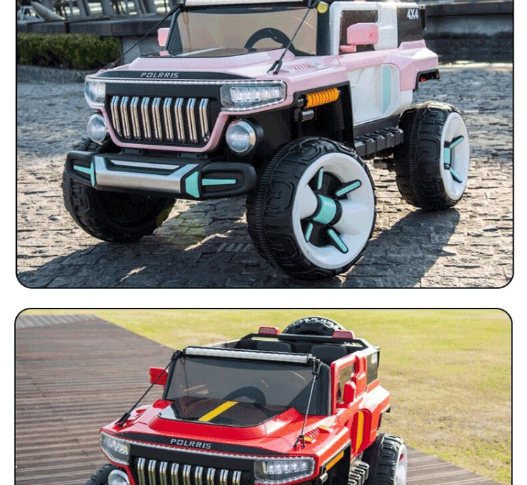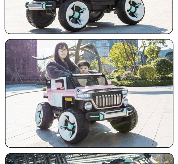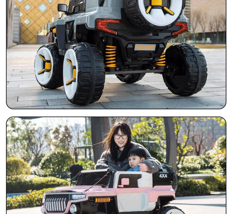 孩儿乖坦克悍马H8超大号儿童电动车四轮可坐大人双人越野车小孩玩具车 粉:23A超威+皮座软轮