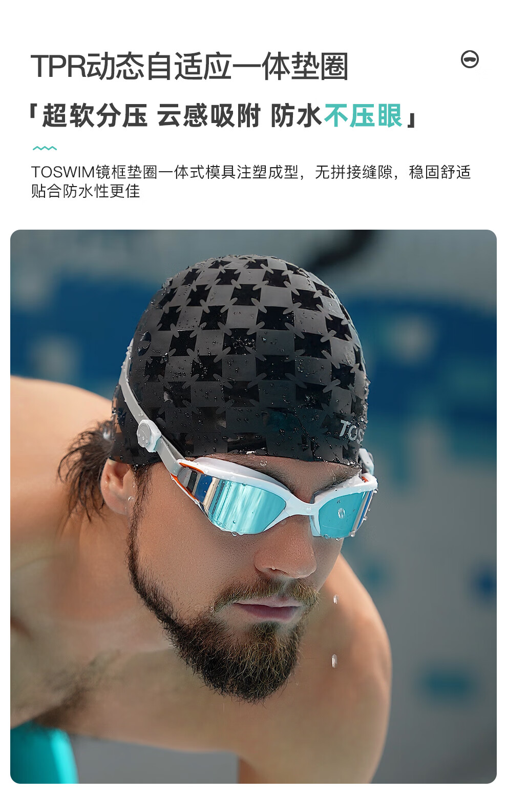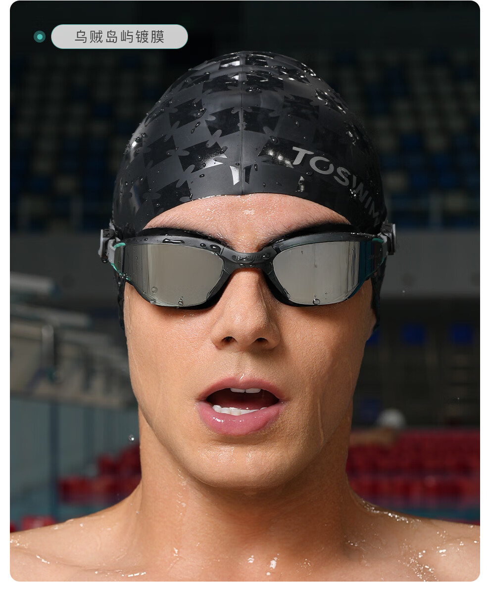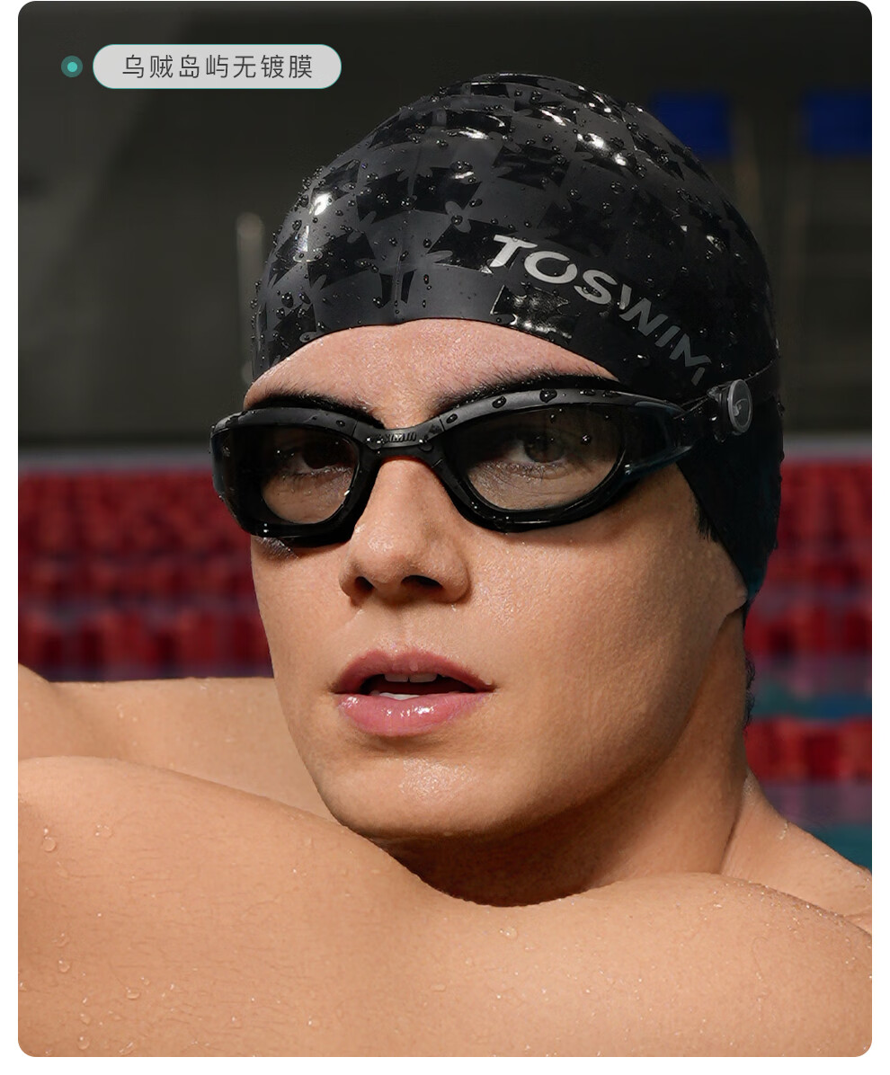 TOSWIM拓胜大框泳镜男女士通用防水防雾游泳眼镜套装近视左右眼不同度数 【无镀膜乌贼岛屿】高透防水舒适