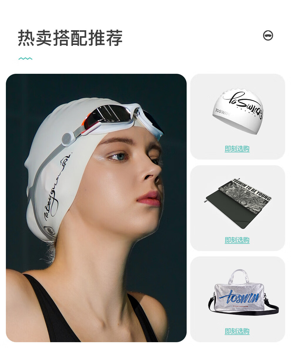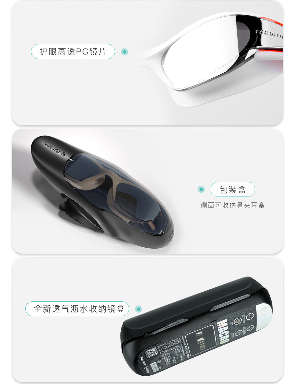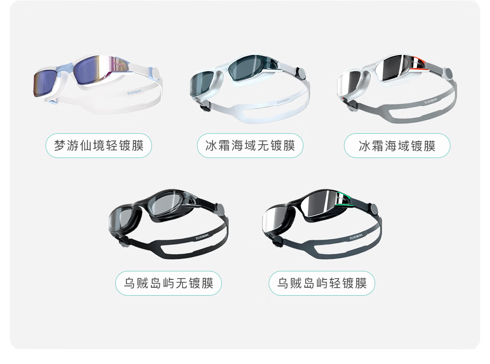 TOSWIM拓胜大框泳镜男女士通用防水防雾游泳眼镜套装近视左右眼不同度数 【无镀膜乌贼岛屿】高透防水舒适