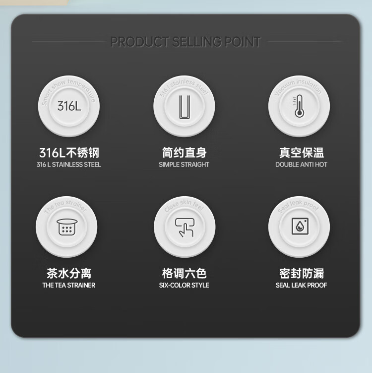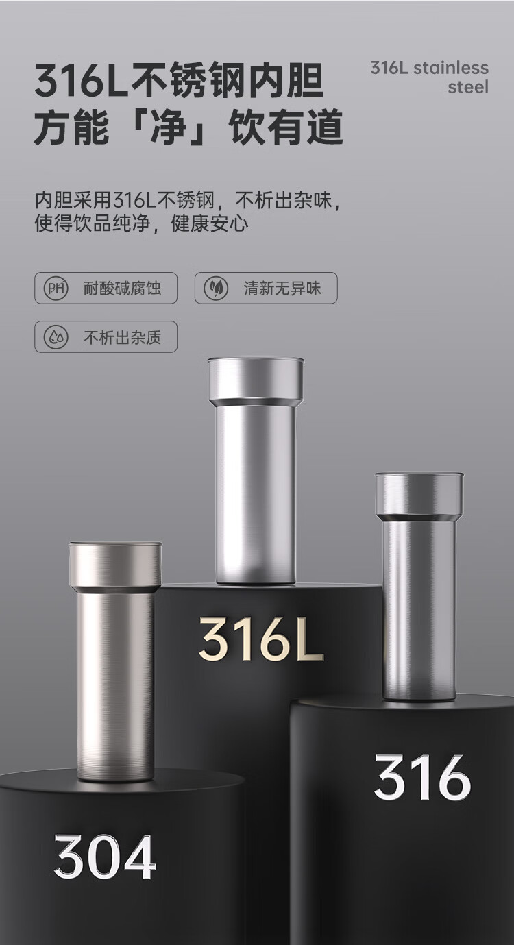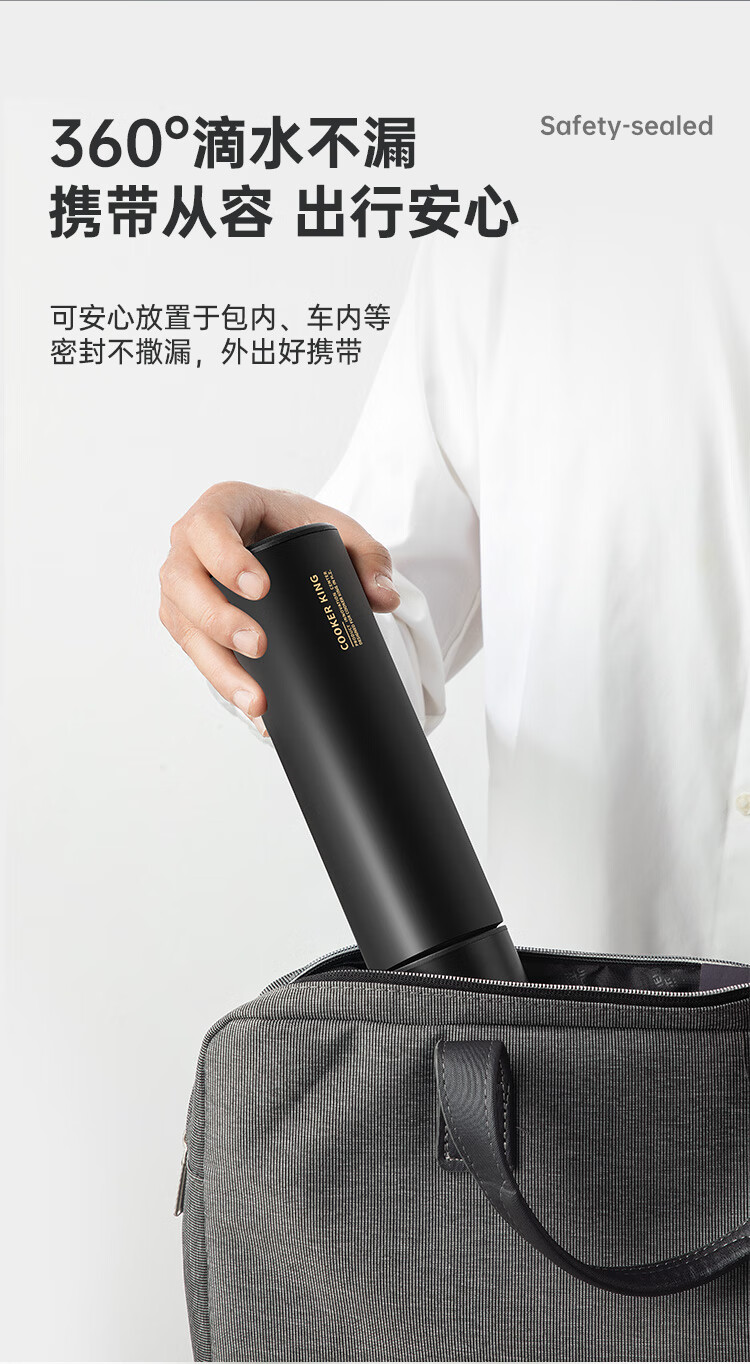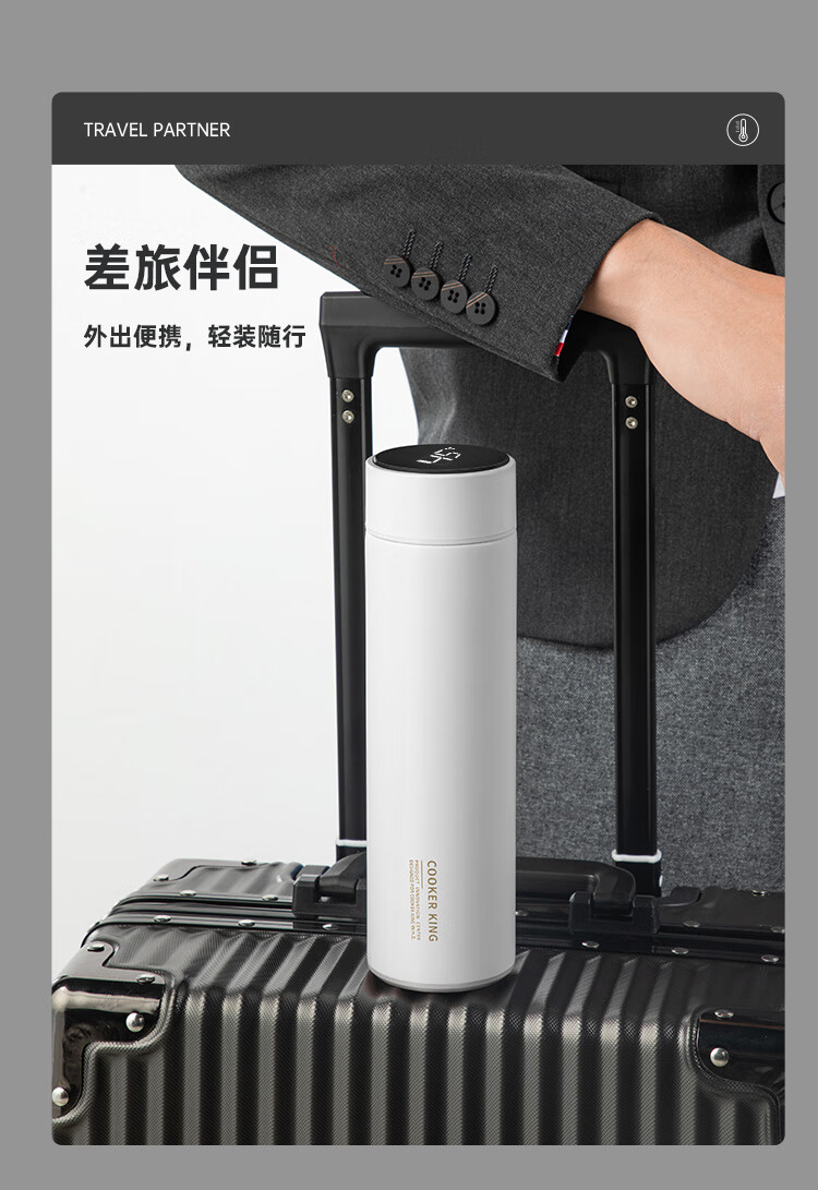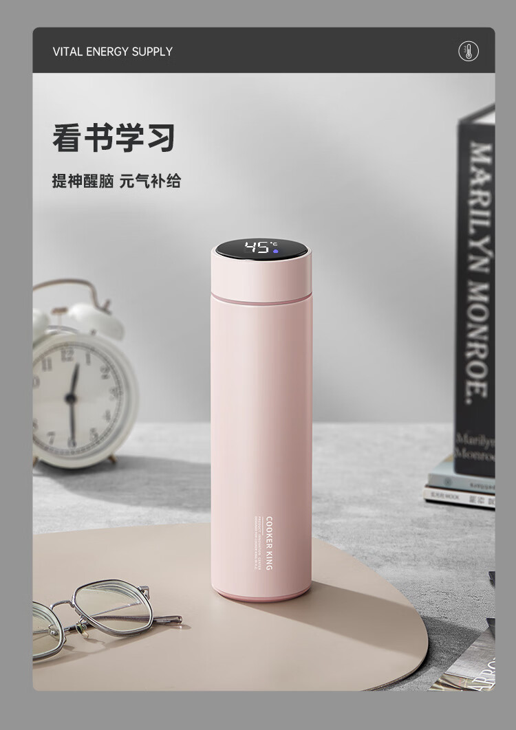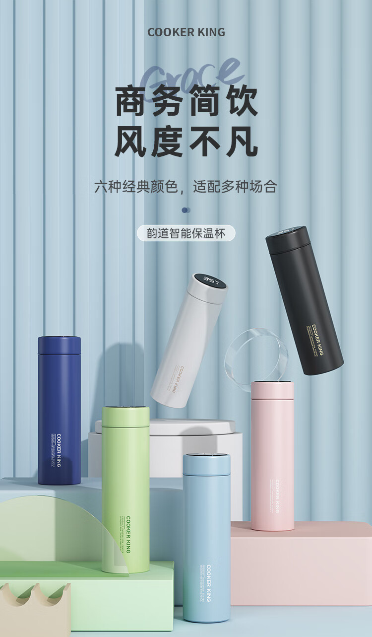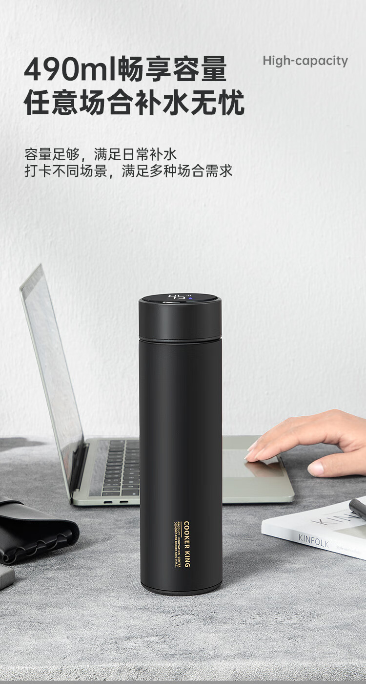 炊大皇保温杯316L医用级不锈钢茶水分离商务便携智能保温杯浅蓝色 490ml