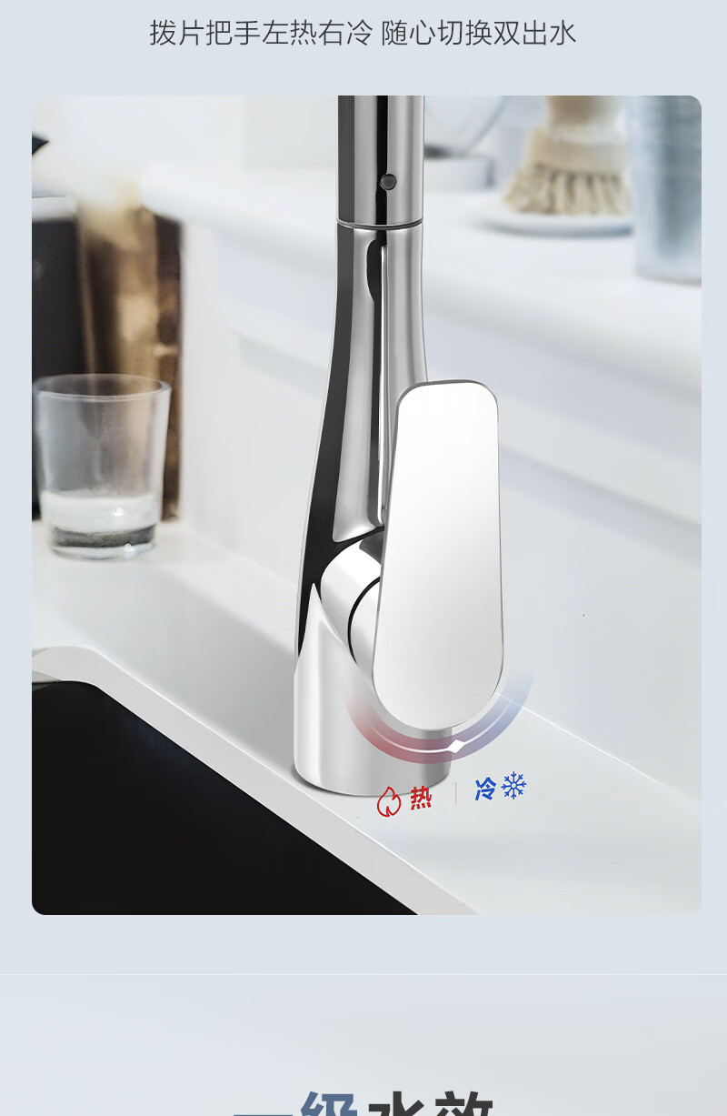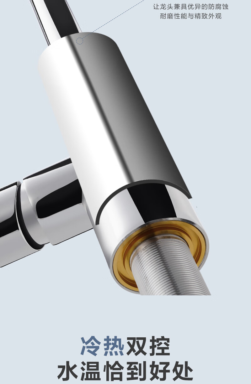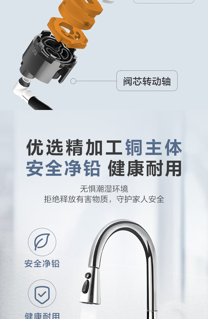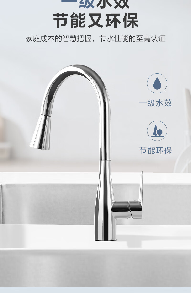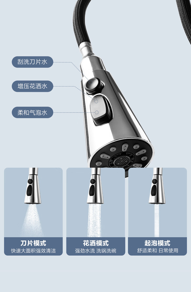 1号会员店厨房水龙头 三功能抽拉式360°旋转冷热双控精铜主体洗碗洗菜盆