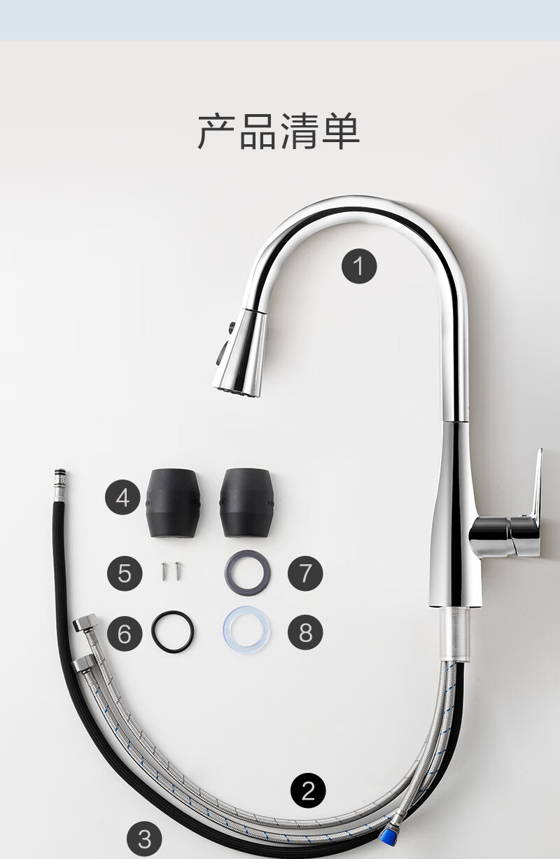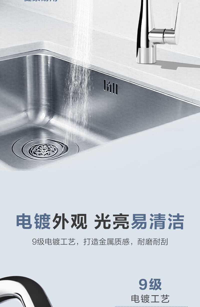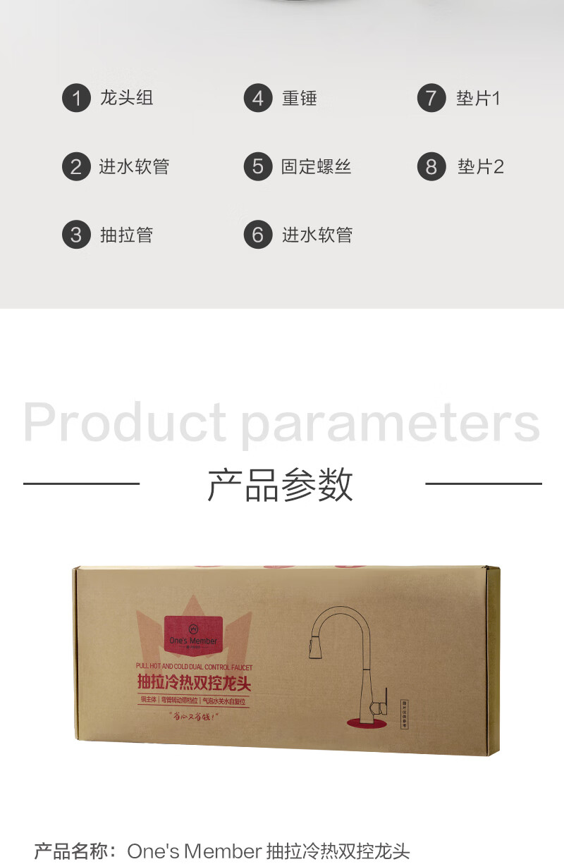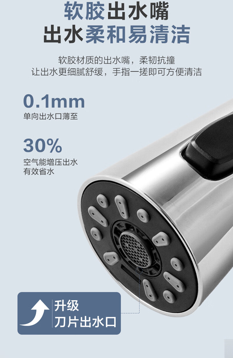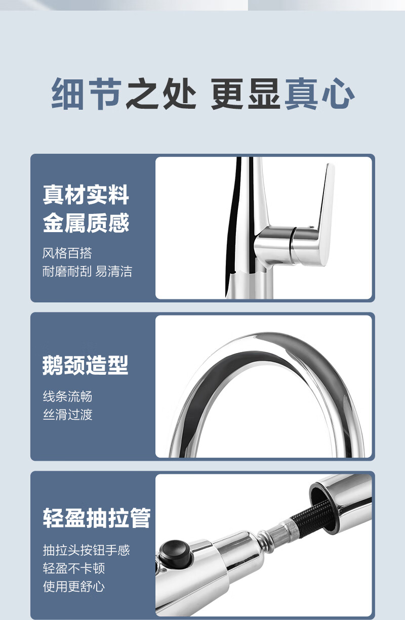 1号会员店厨房水龙头 三功能抽拉式360°旋转冷热双控精铜主体洗碗洗菜盆