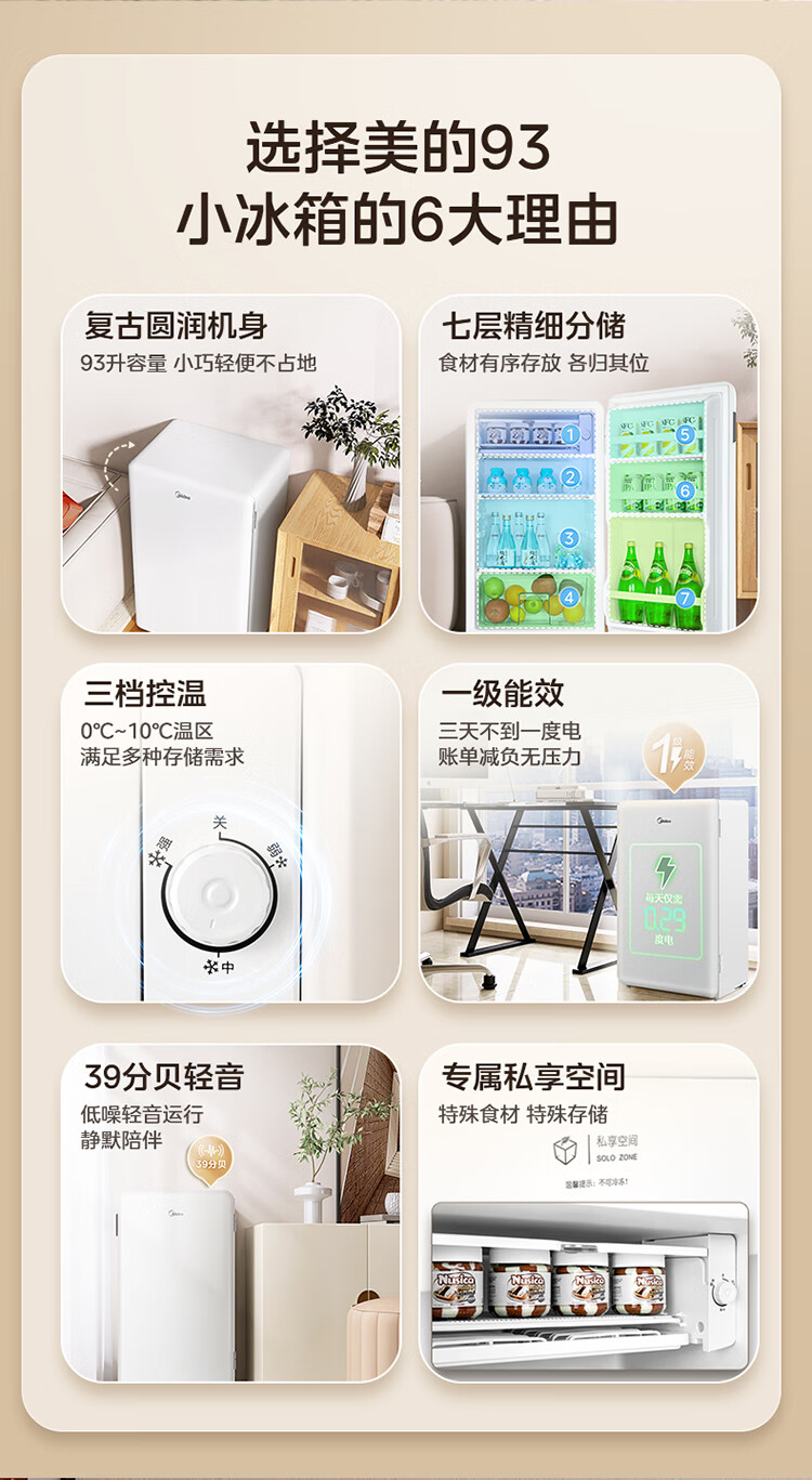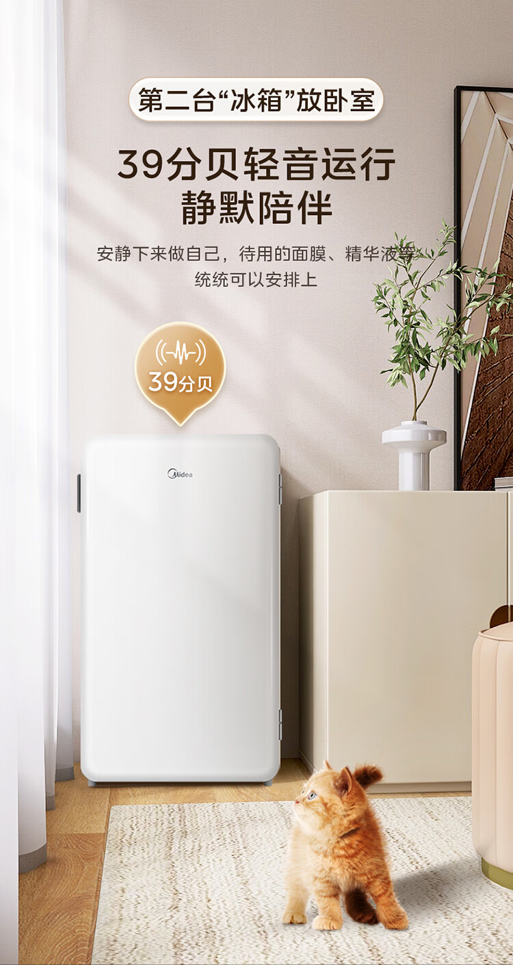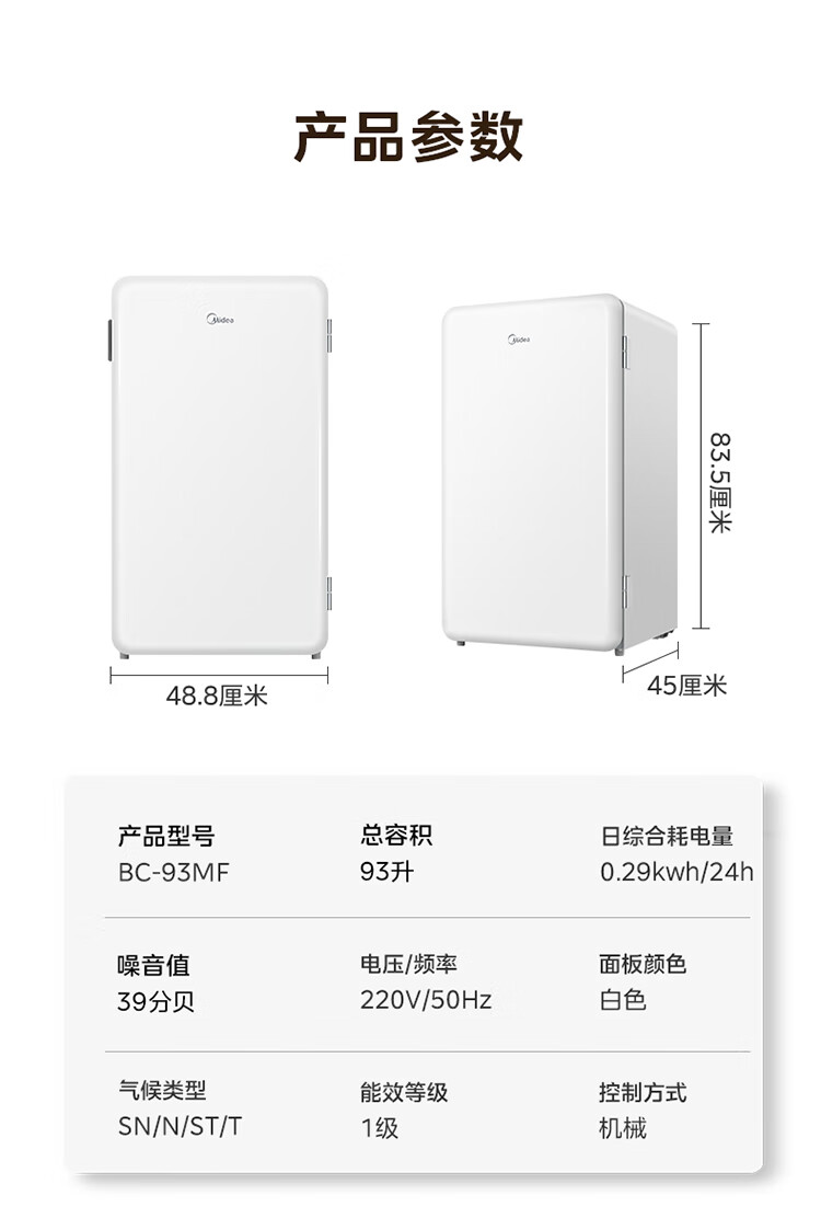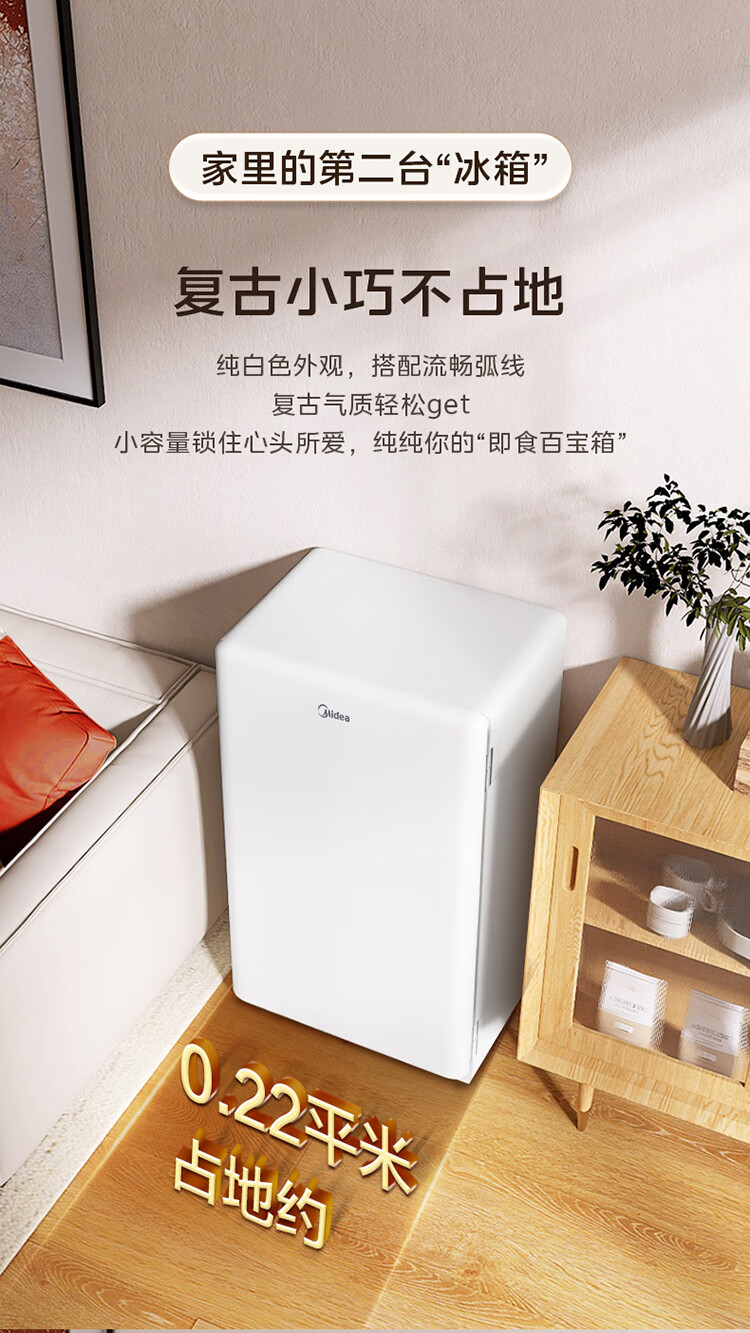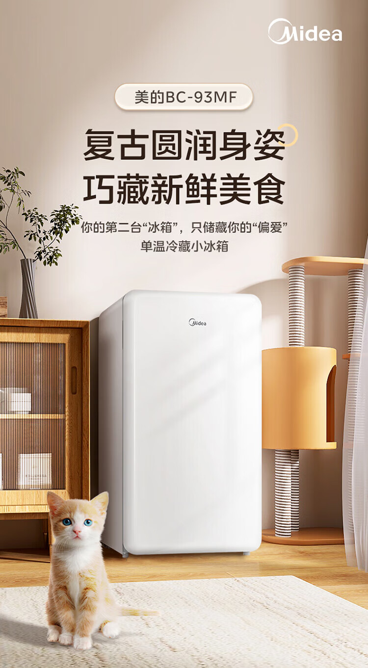 美的(Midea)93L单门小冰箱一级低音复古白色小单温冷藏租房家用宿舍办公室可放美妆BC-93MF【国家补贴】