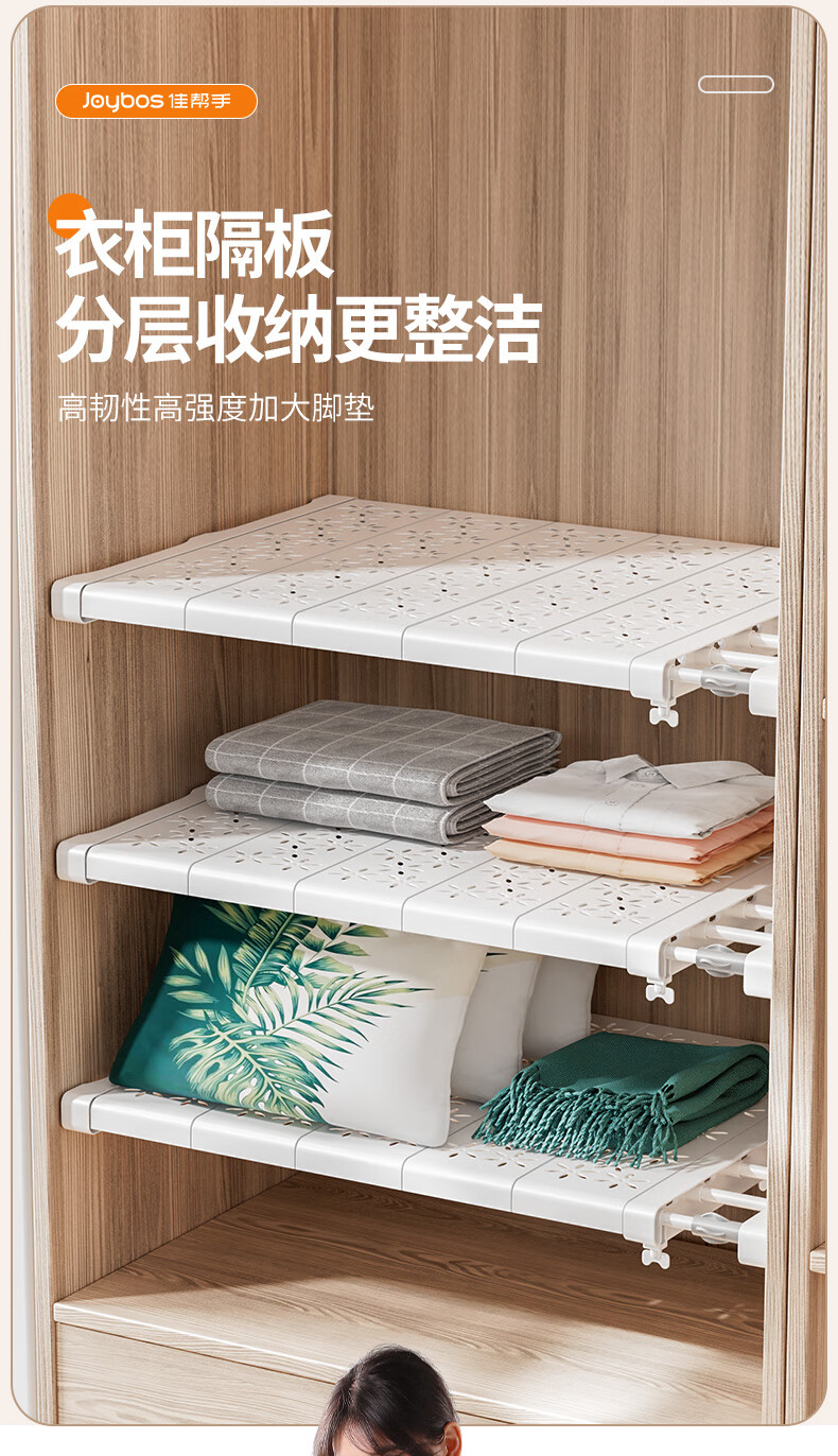 佳帮手柜子置物架衣柜收纳分层隔板橱柜鞋柜伸缩隔断神器 42宽*56-95cm
