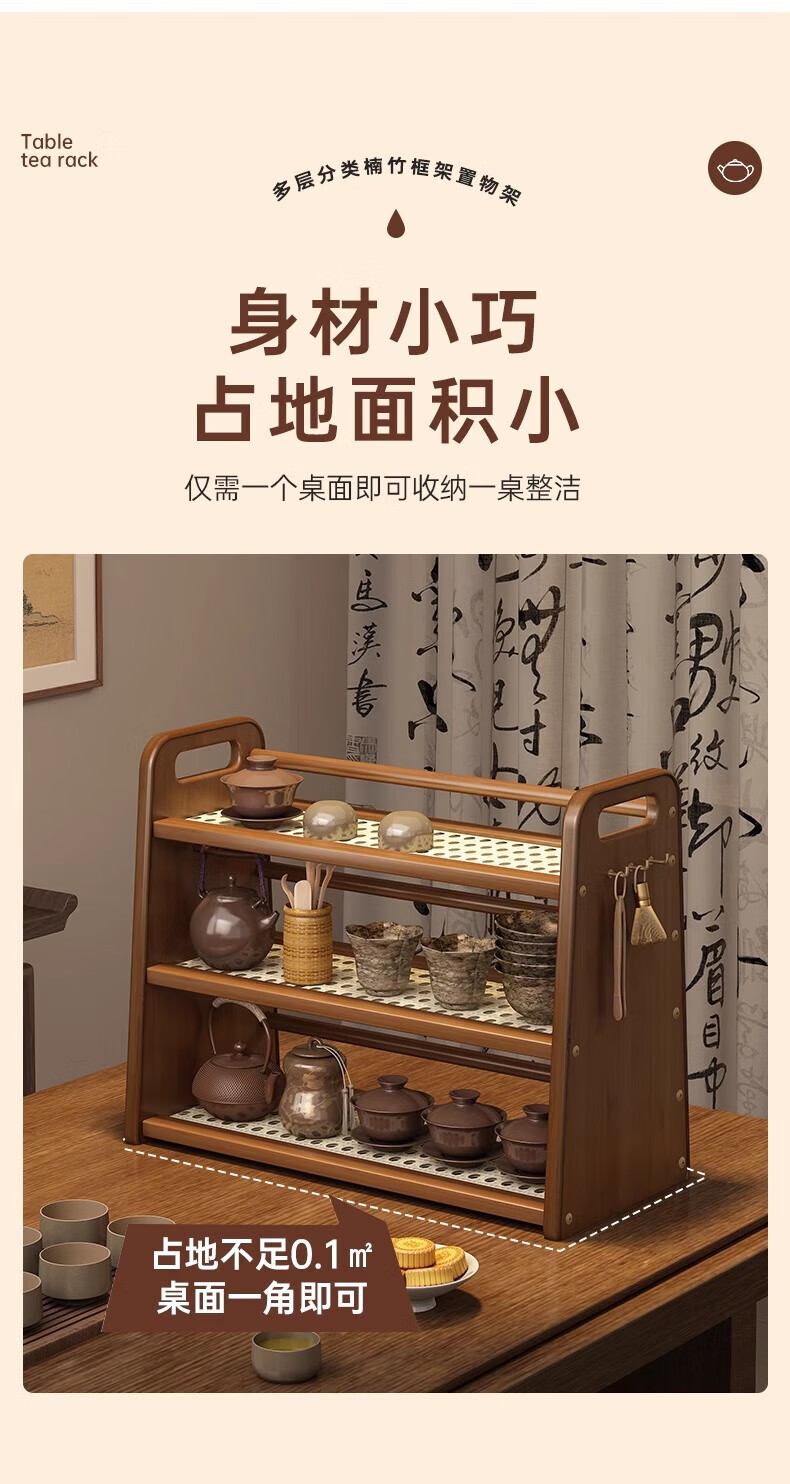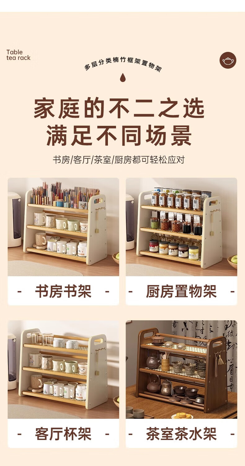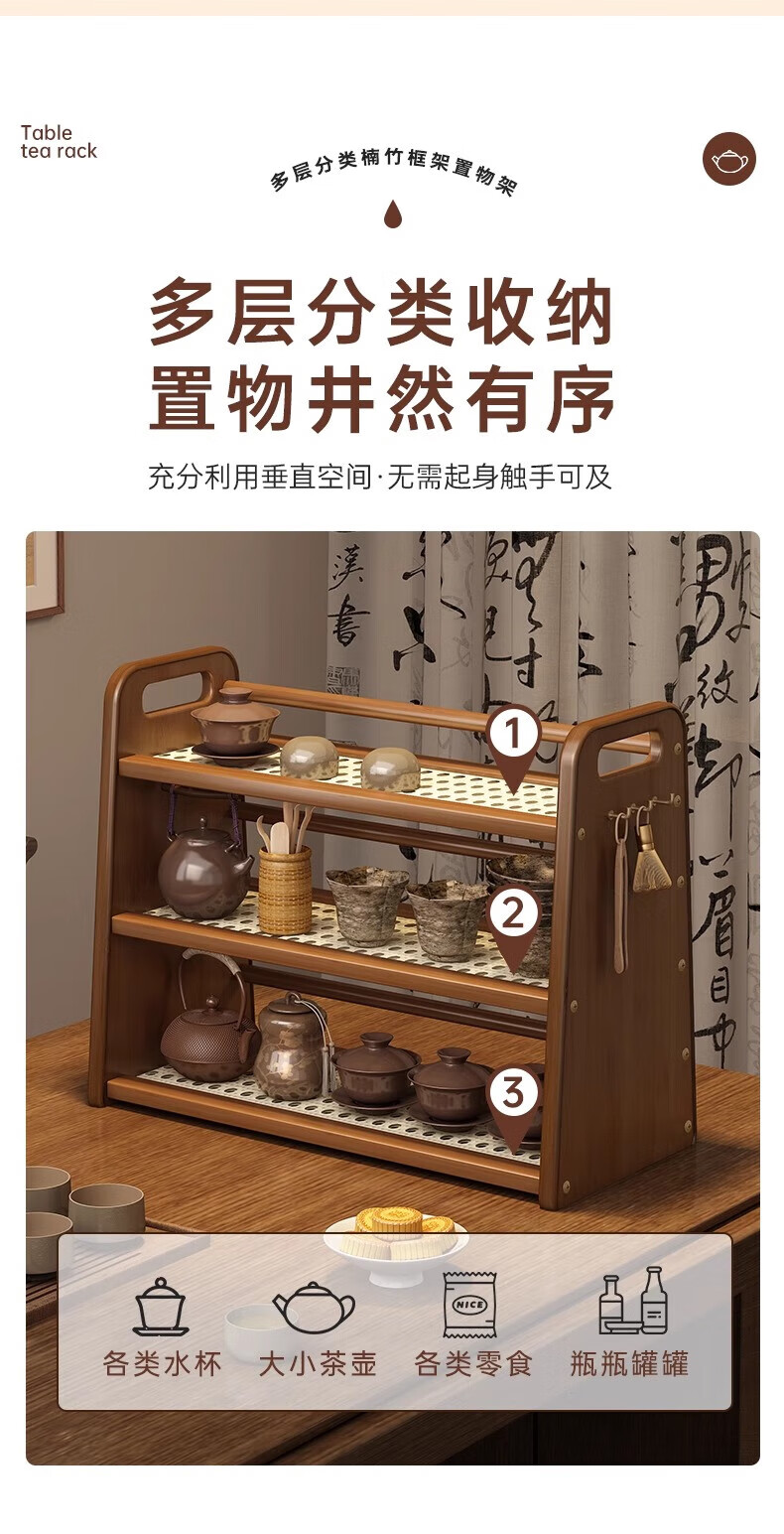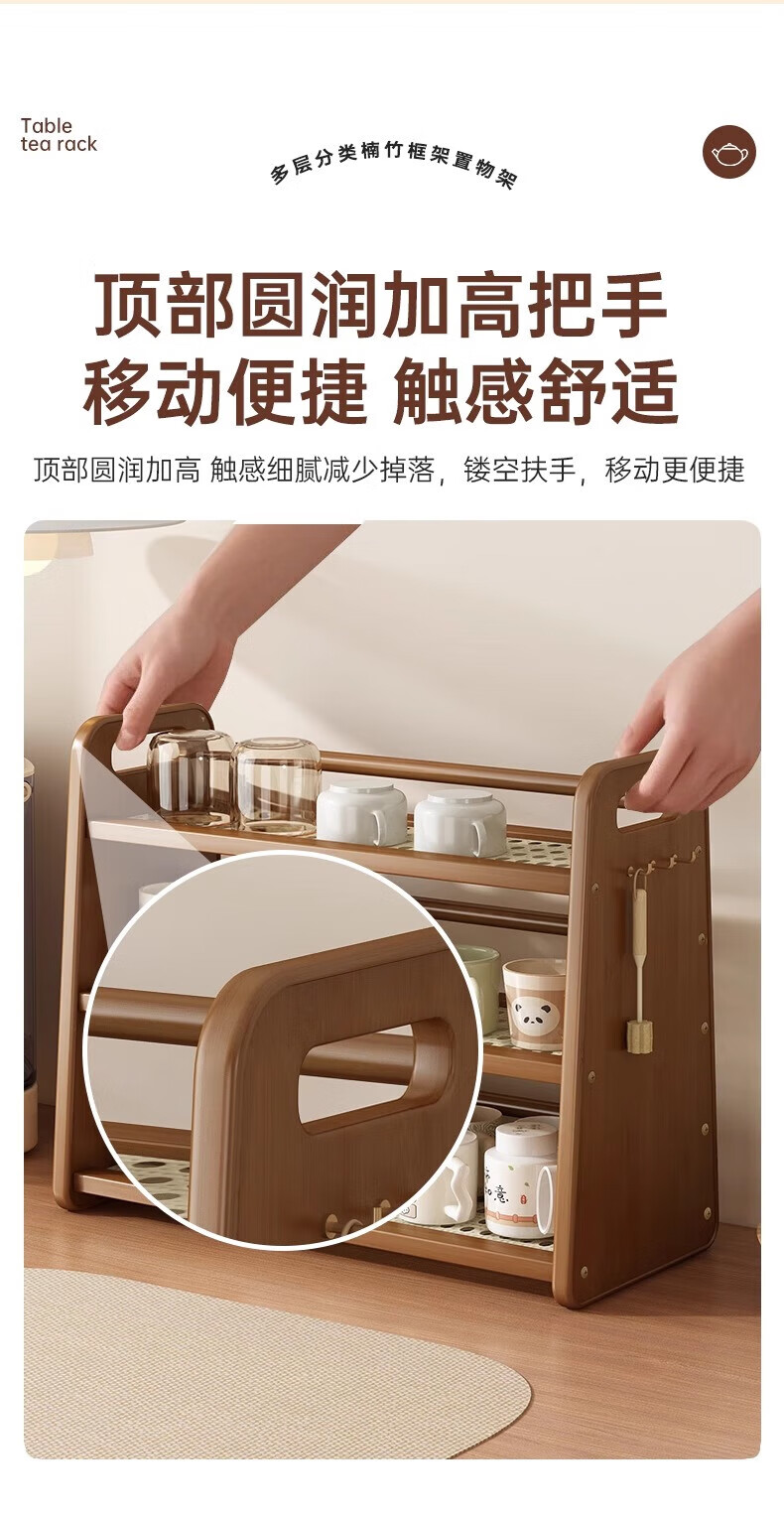 馨婺家桌面杯子置物架茶几客厅水杯收纳架餐桌零食架桌上台面多层储物架 茶色-2层30cm【置物款】