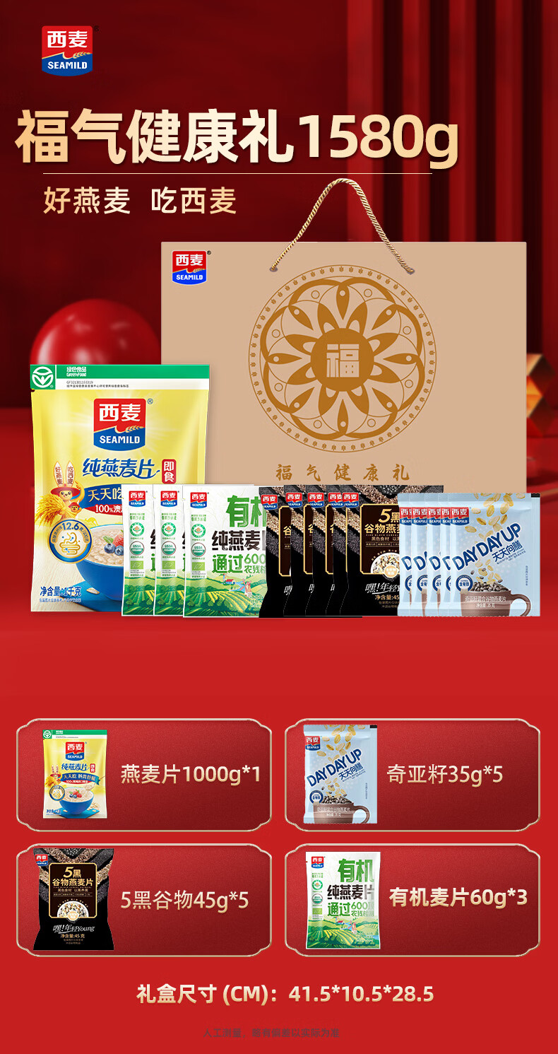 西麦燕麦年货礼盒 营养健康膳食纤维营养礼品节日送长辈团购福利 【福气+五福】共3090g
