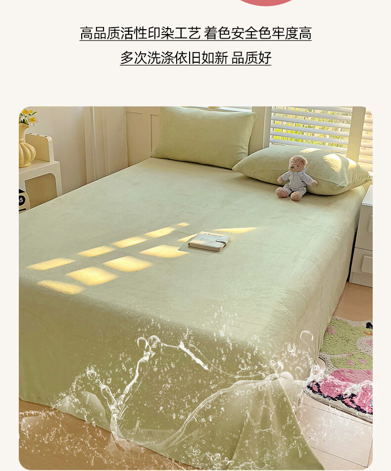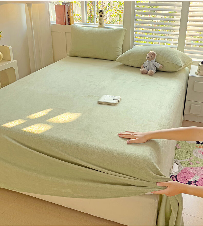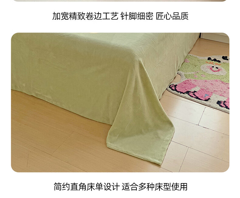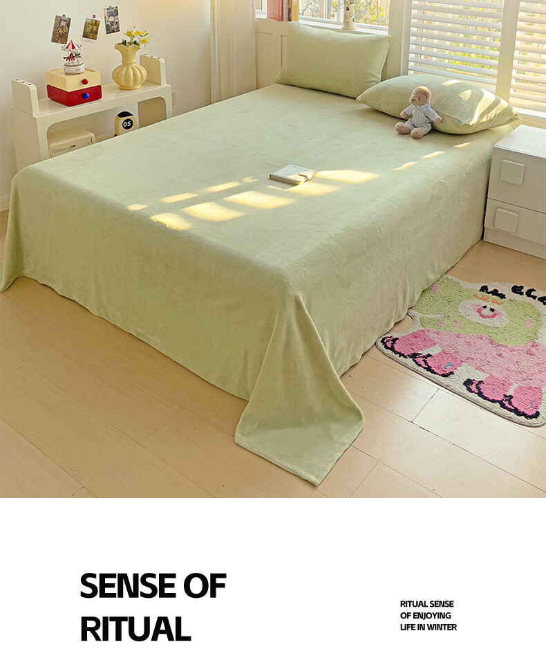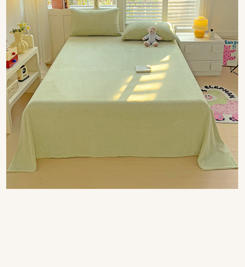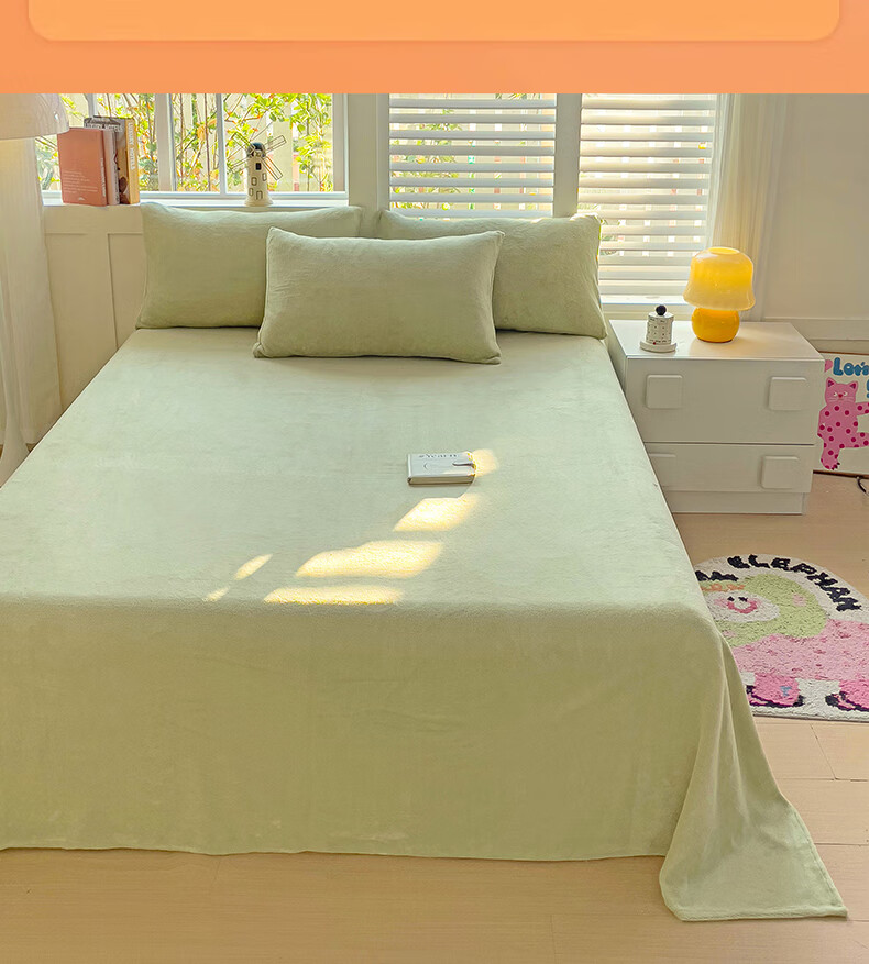 无印良品牛奶绒床单冬季单件加绒毛绒床单三件套冬天加绒被单 牛奶绒-豆绿【加厚保暖】 【单床单】160*230cm