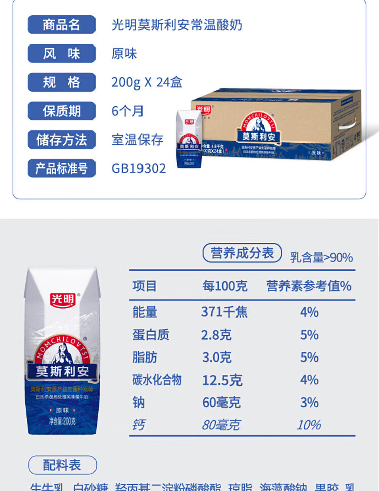 光明莫斯利安常温原味酸奶200g*24盒 营养量贩装年货送礼【10月效期】