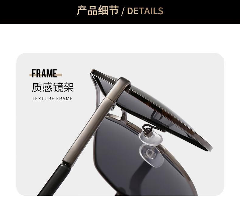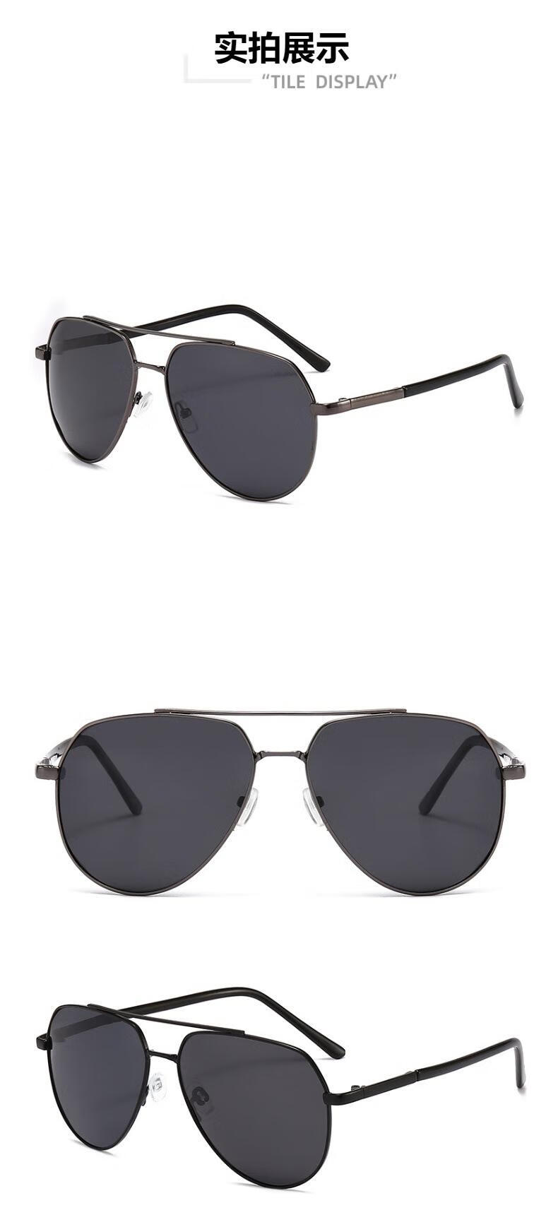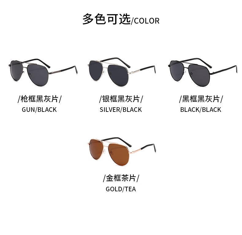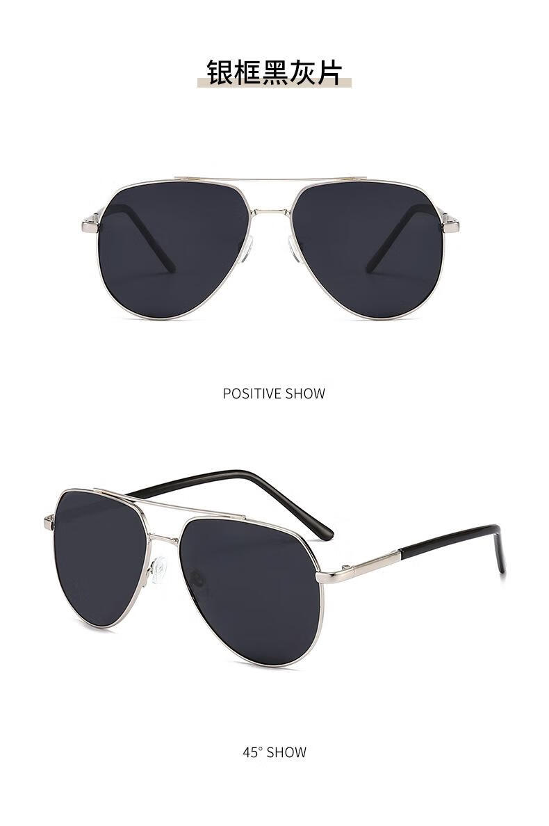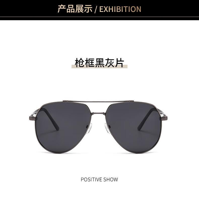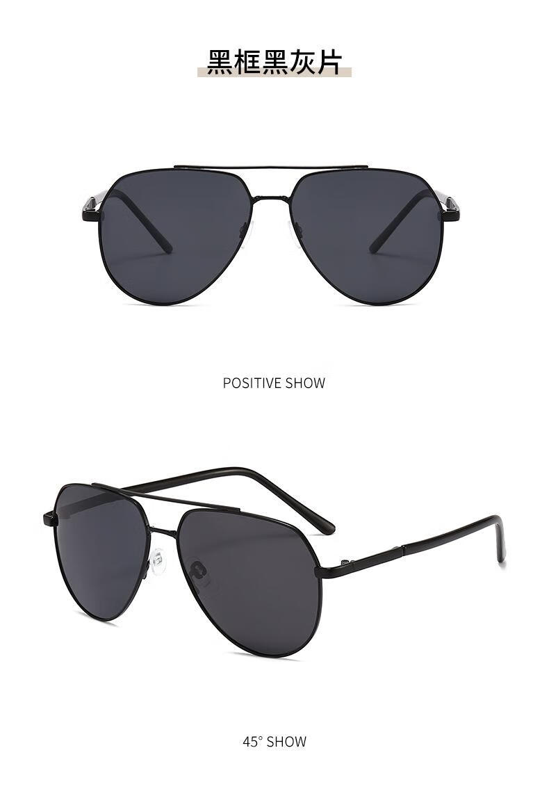 【精选】偏光太阳镜高级感夏新款男士眼镜金属双梁蛤蟆镜黑色墨镜 黑框黑灰片