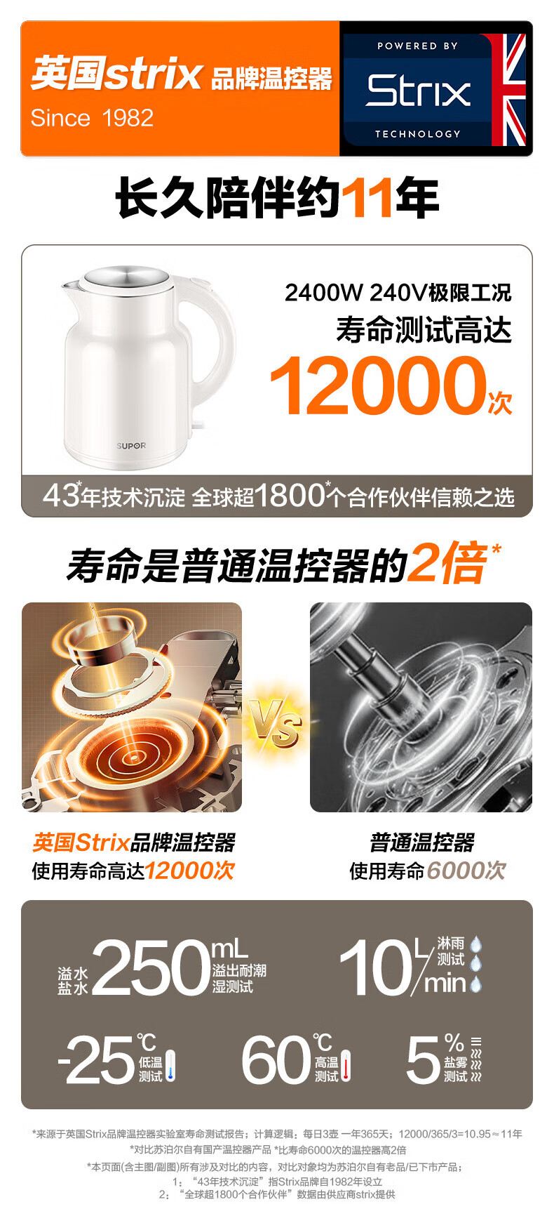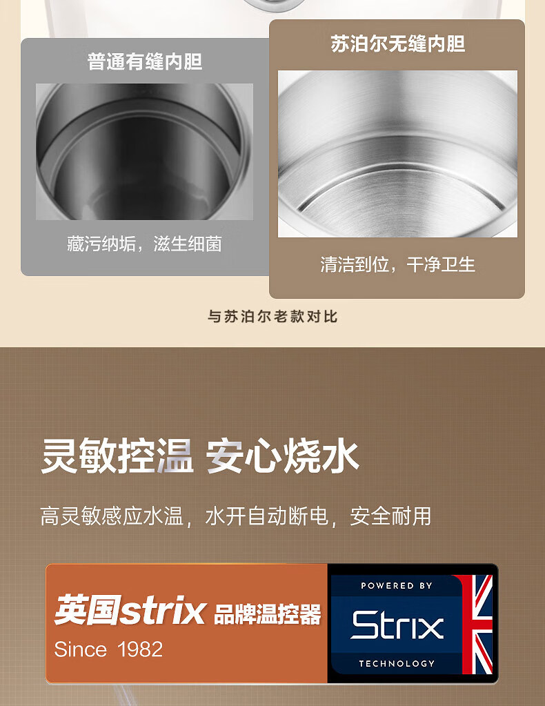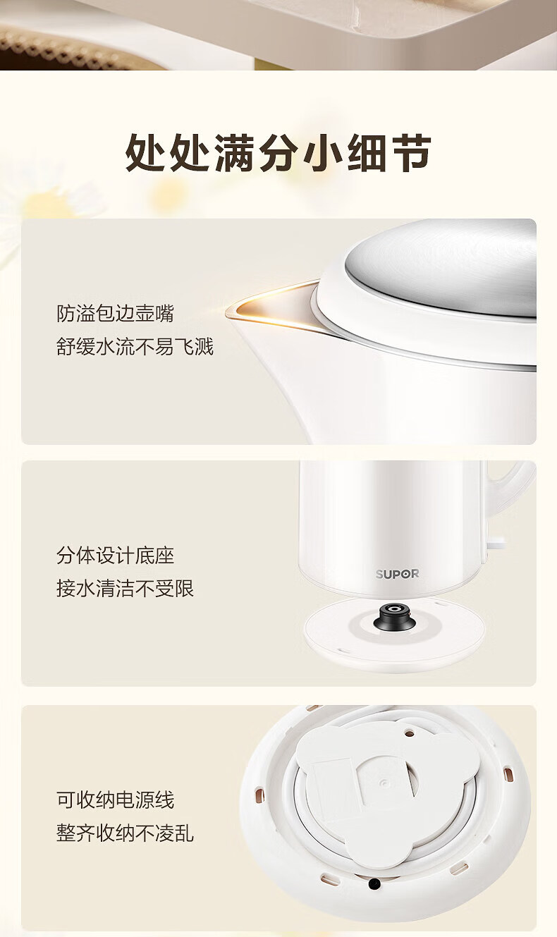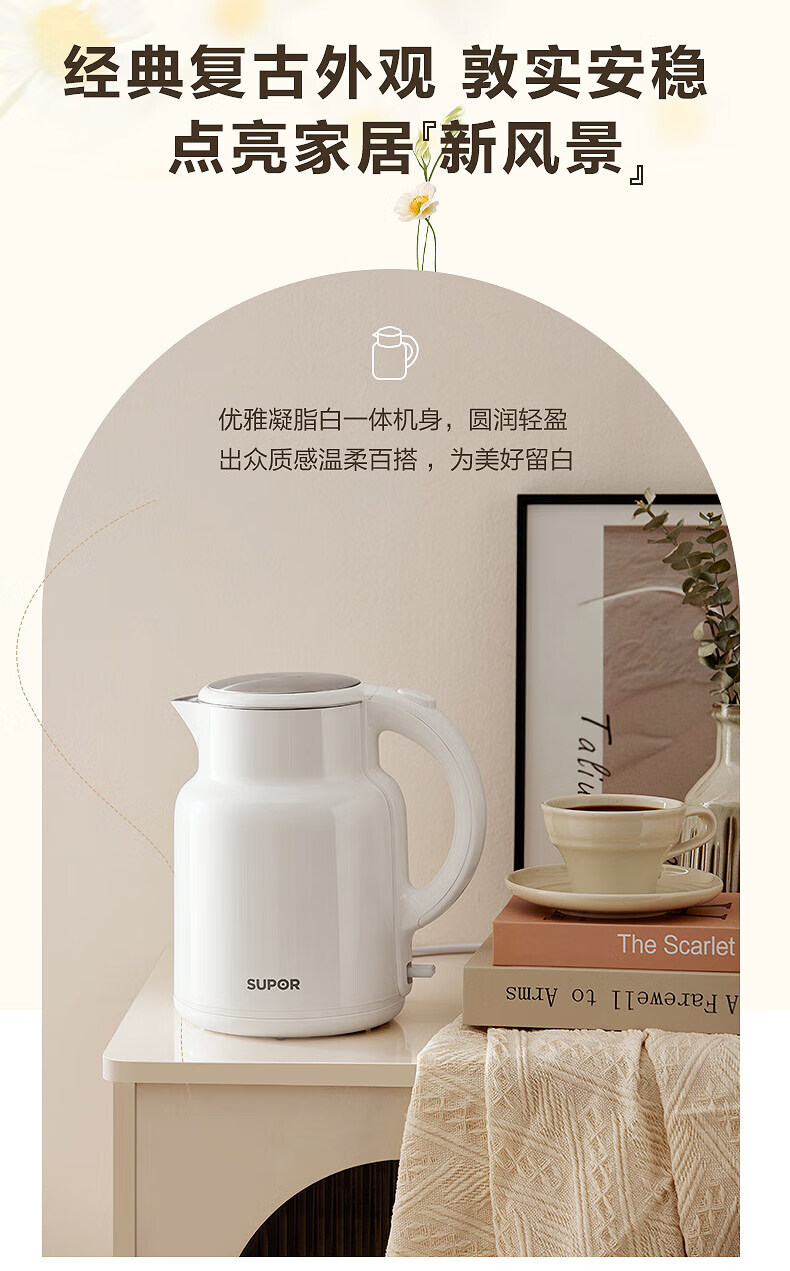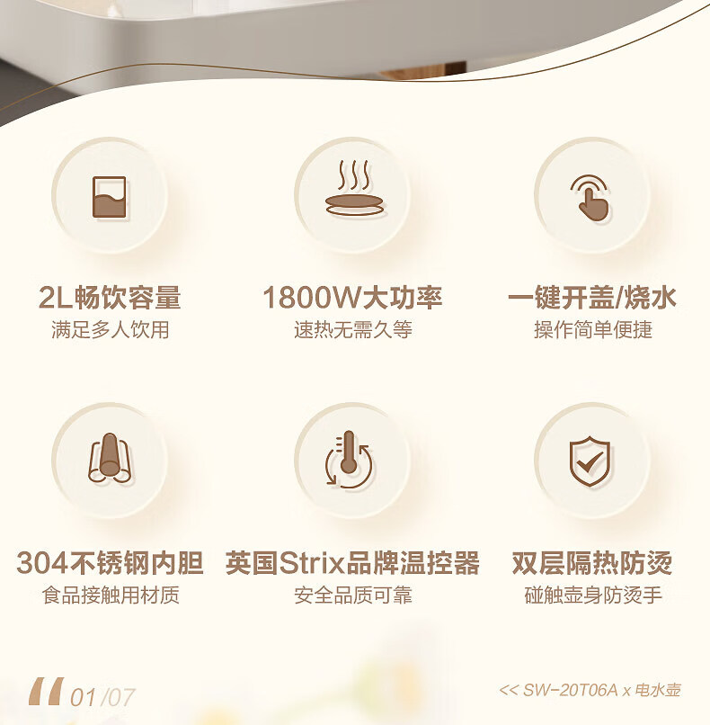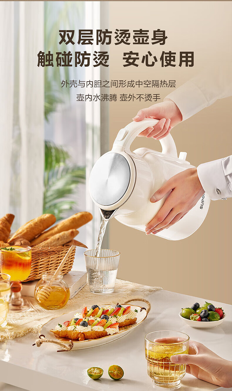 苏泊尔(SUPOR)吨吨大容量电水壶热水壶 2L大容量全钢无缝电热水壶 304不锈钢烧水壶 SW-20T06A