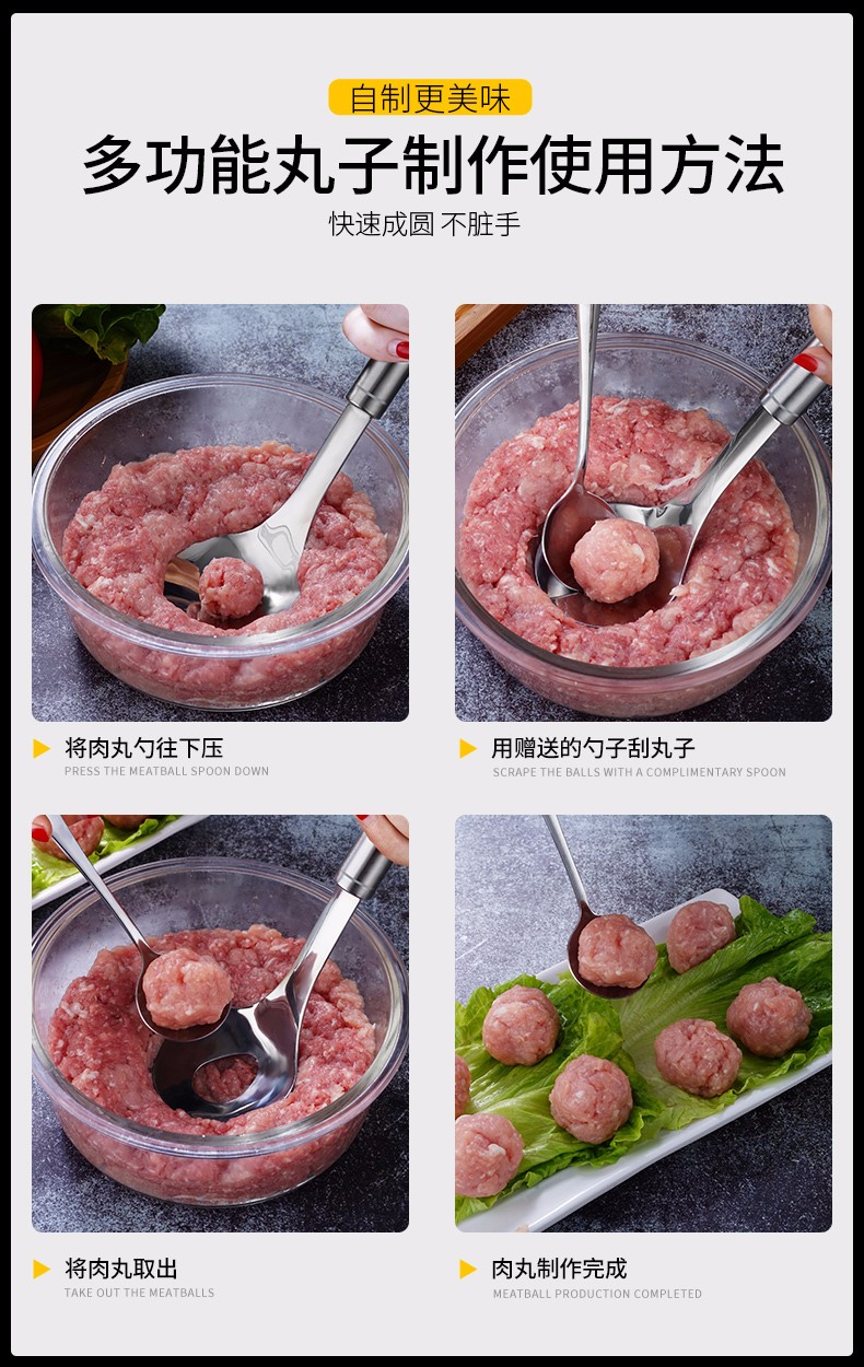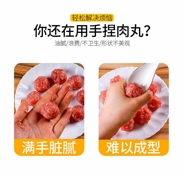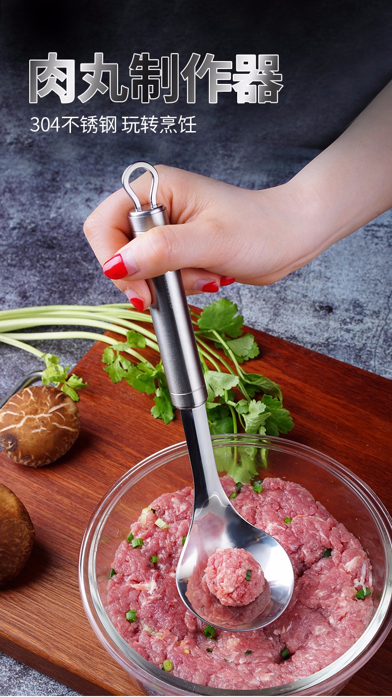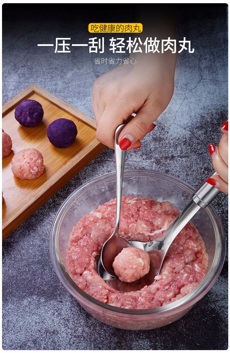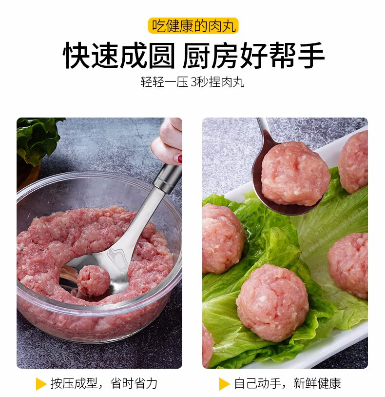 美之扣做小丸子神器肉丸制作器挖勺家用鱼丸圆形炸丸工具压丸厨房用品 304肉丸勺(带勺子)