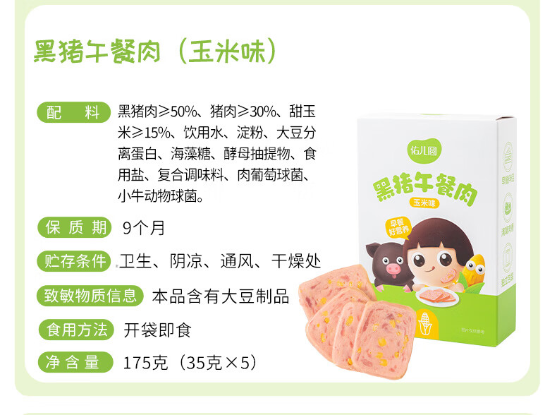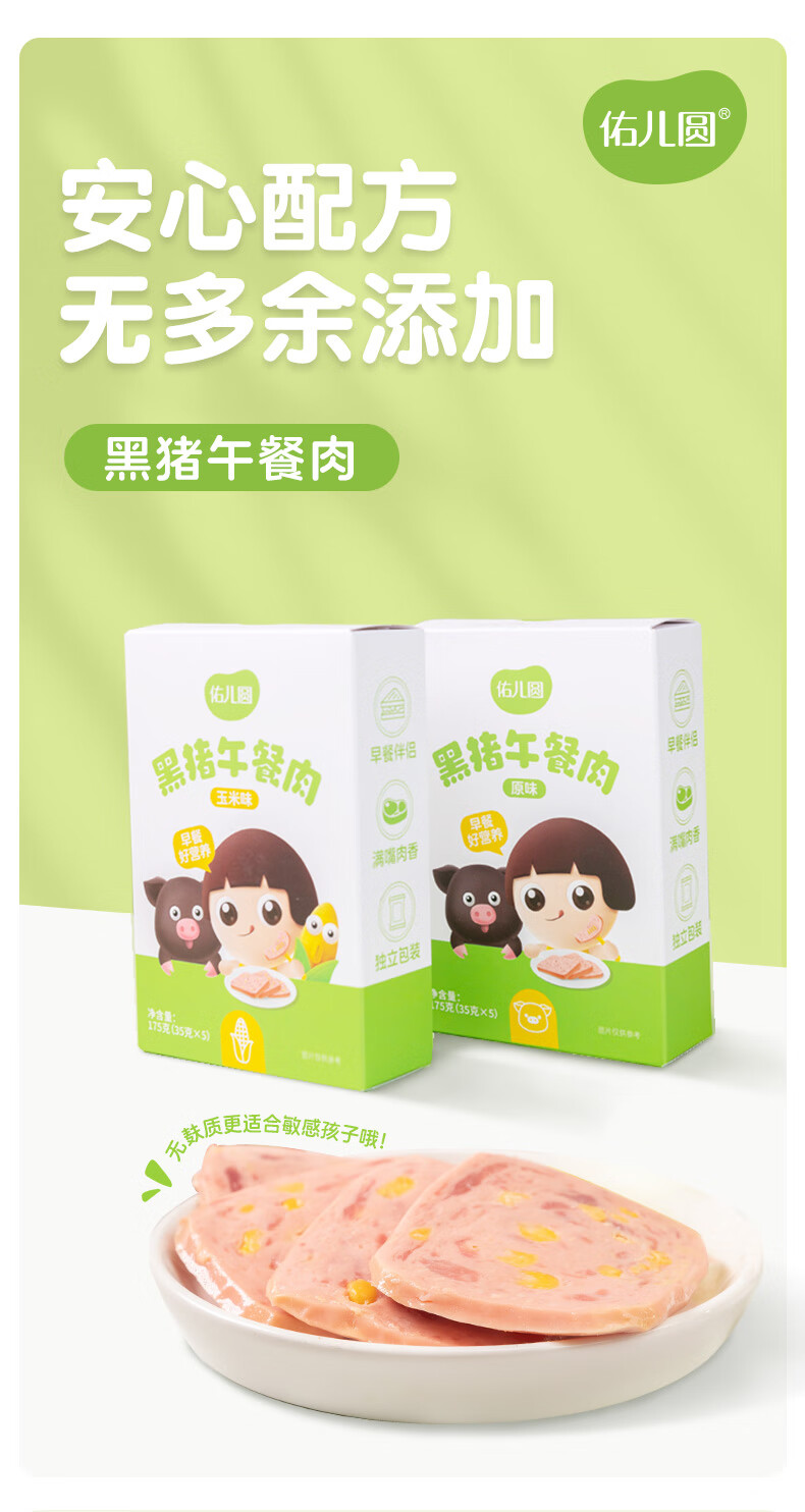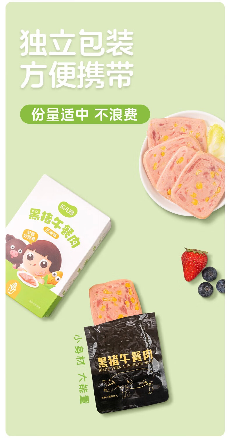 佑儿圆黑猪午餐肉玉米原味孩子早餐三明治即食火腿独立包装便携带 玉米味