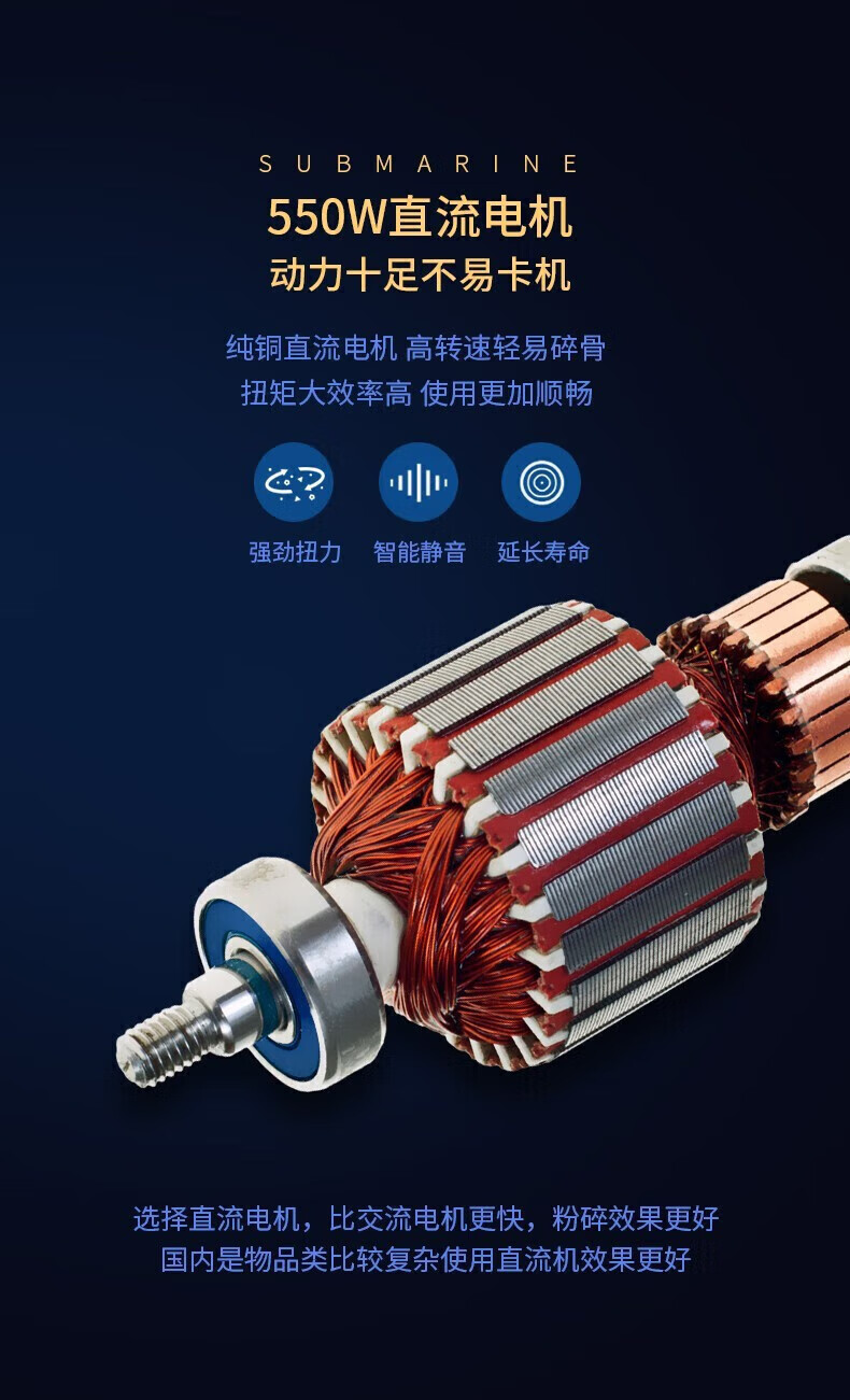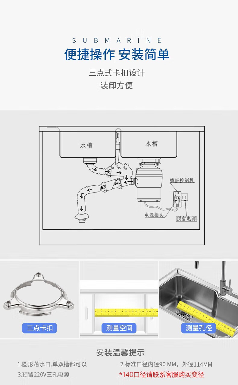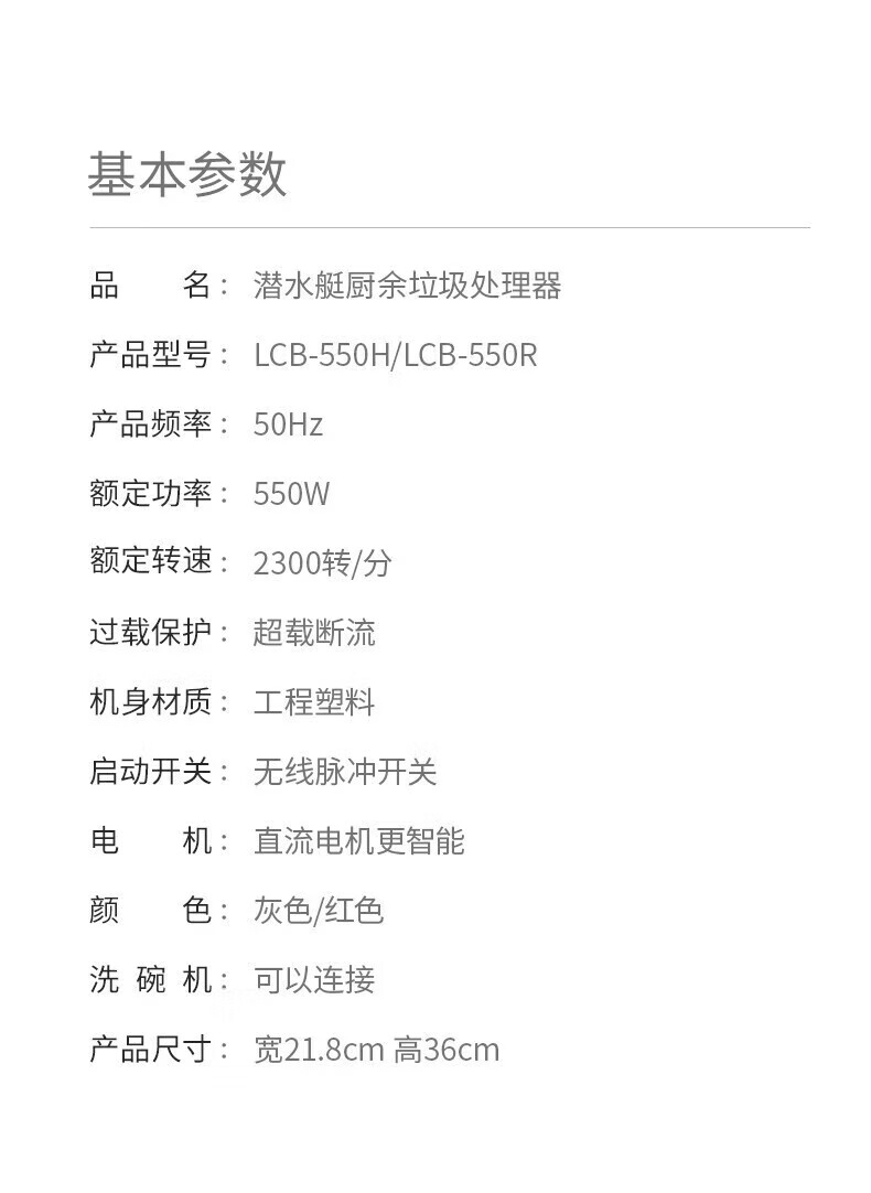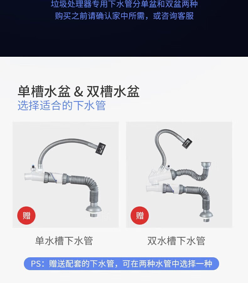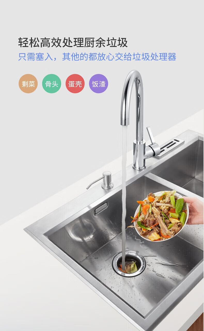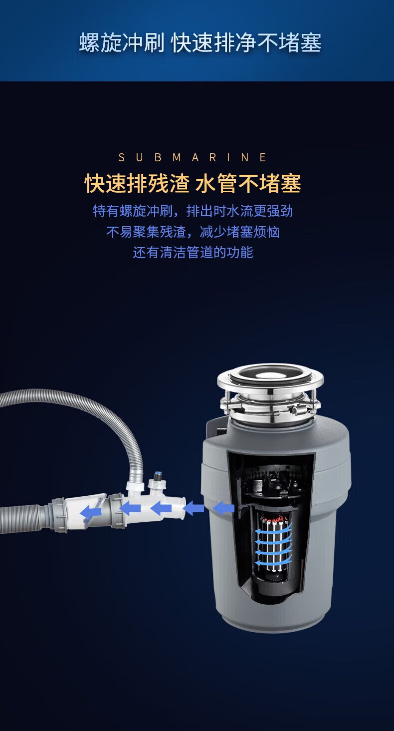 潜水艇(Submarine)厨余垃圾处理器厨房垃圾粉碎机可接洗碗机研磨直流电机静音 灰色 带双槽下水管