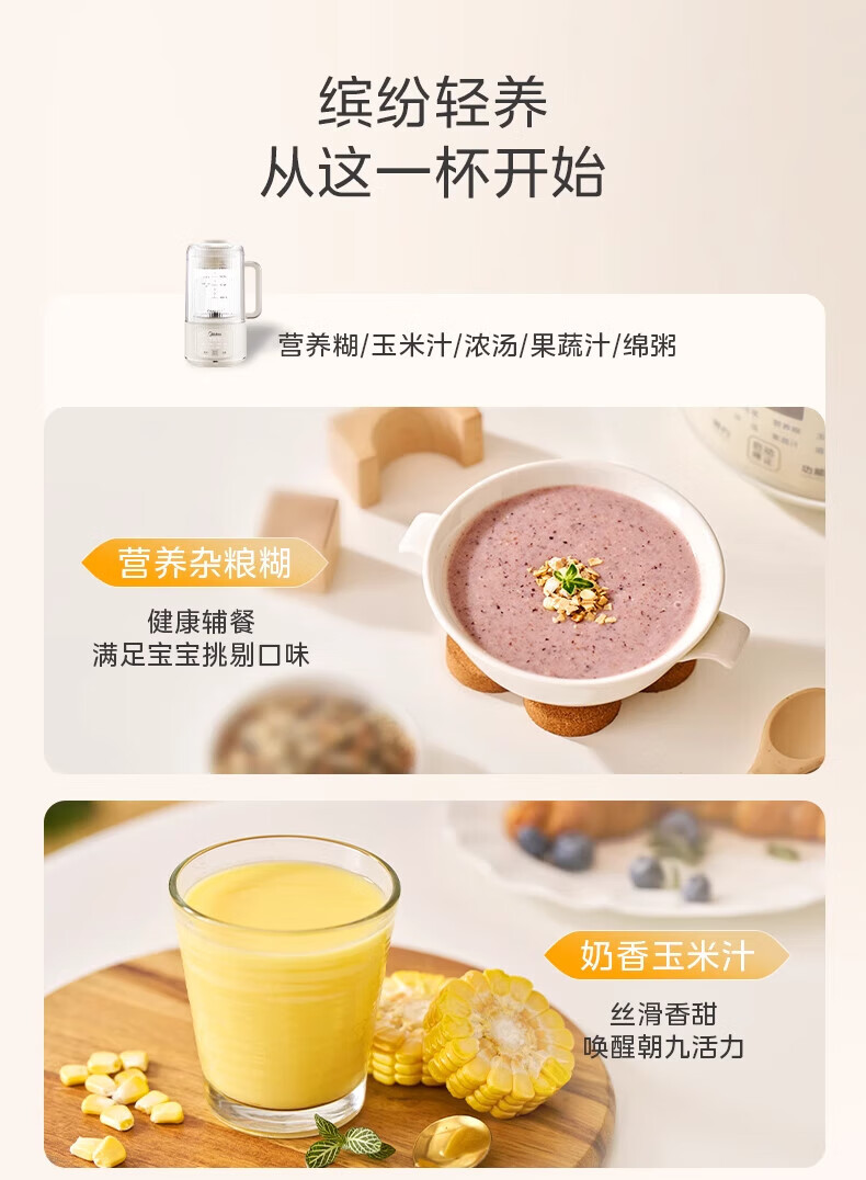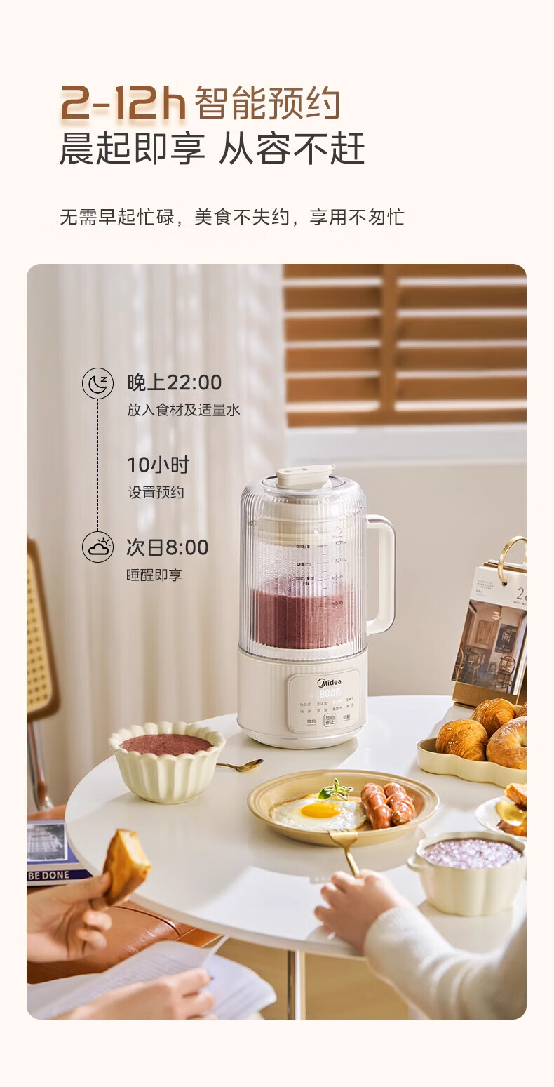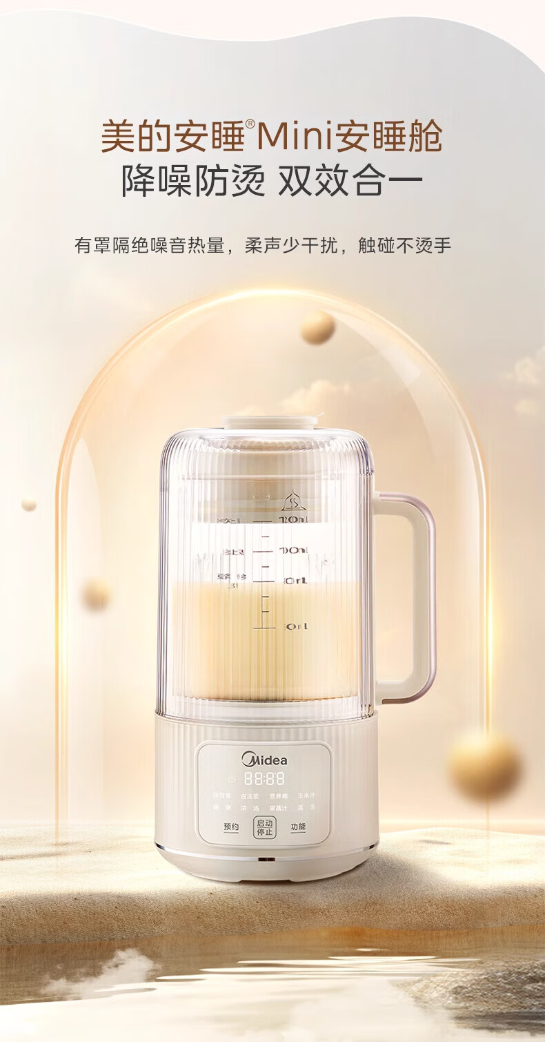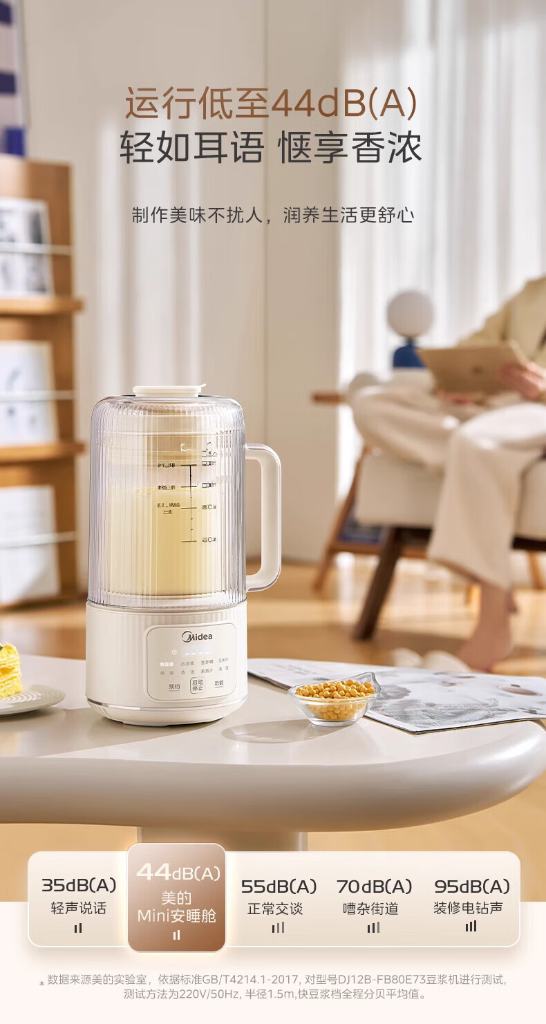 美的(Midea)豆浆机破壁机全自动免煮果汁家用小型多功能榨汁机辅食机轻音免手洗免过滤预约1-2人畅饮 FB80E73 【安睡低音】 1.2L