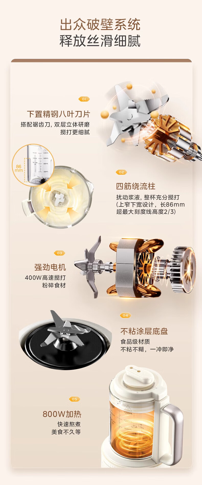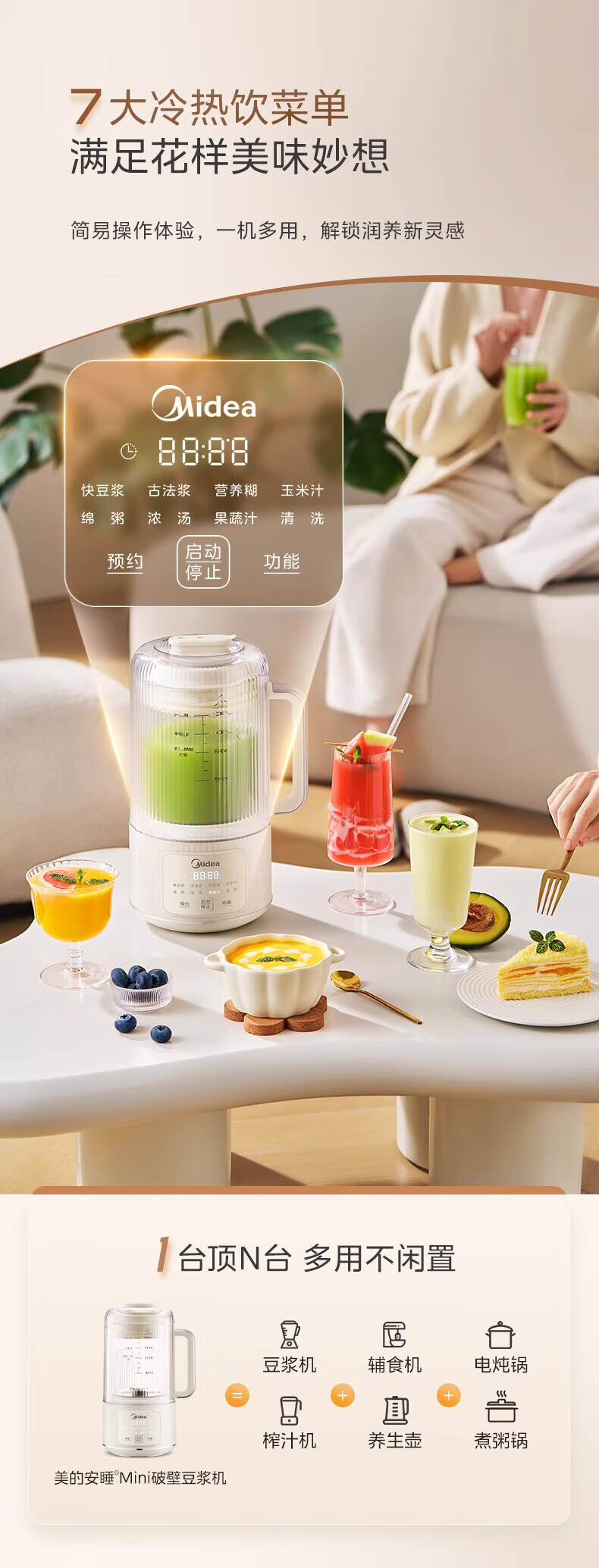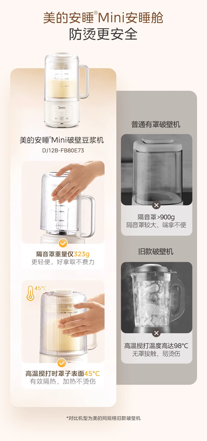 美的(Midea)豆浆机破壁机全自动免煮果汁家用小型多功能榨汁机辅食机轻音免手洗免过滤预约1-2人畅饮 FB80E73 【安睡低音】 1.2L