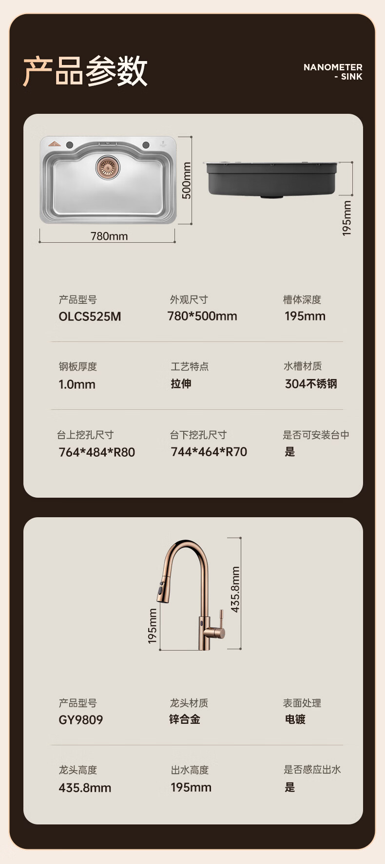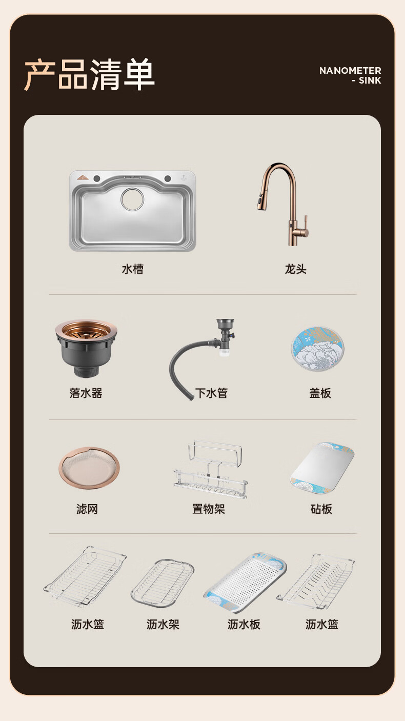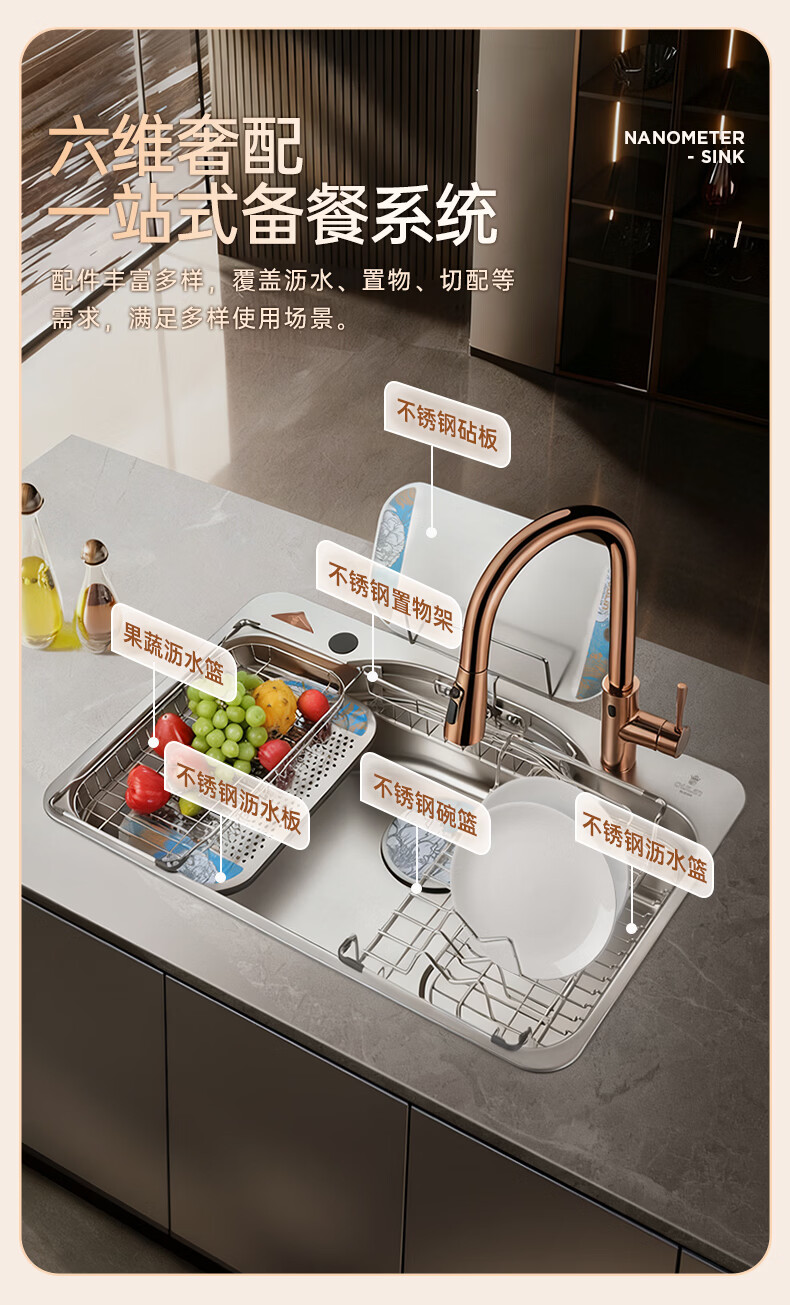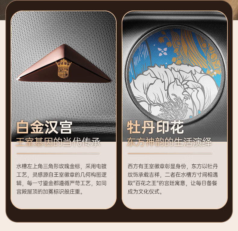 欧琳(OULIN)白金汉宫水槽304不锈钢厨房大单槽压纹耐刮洗碗池家用轻奢洗菜盆 鎏金轻奢日式收纳槽 外观780mm*500mm