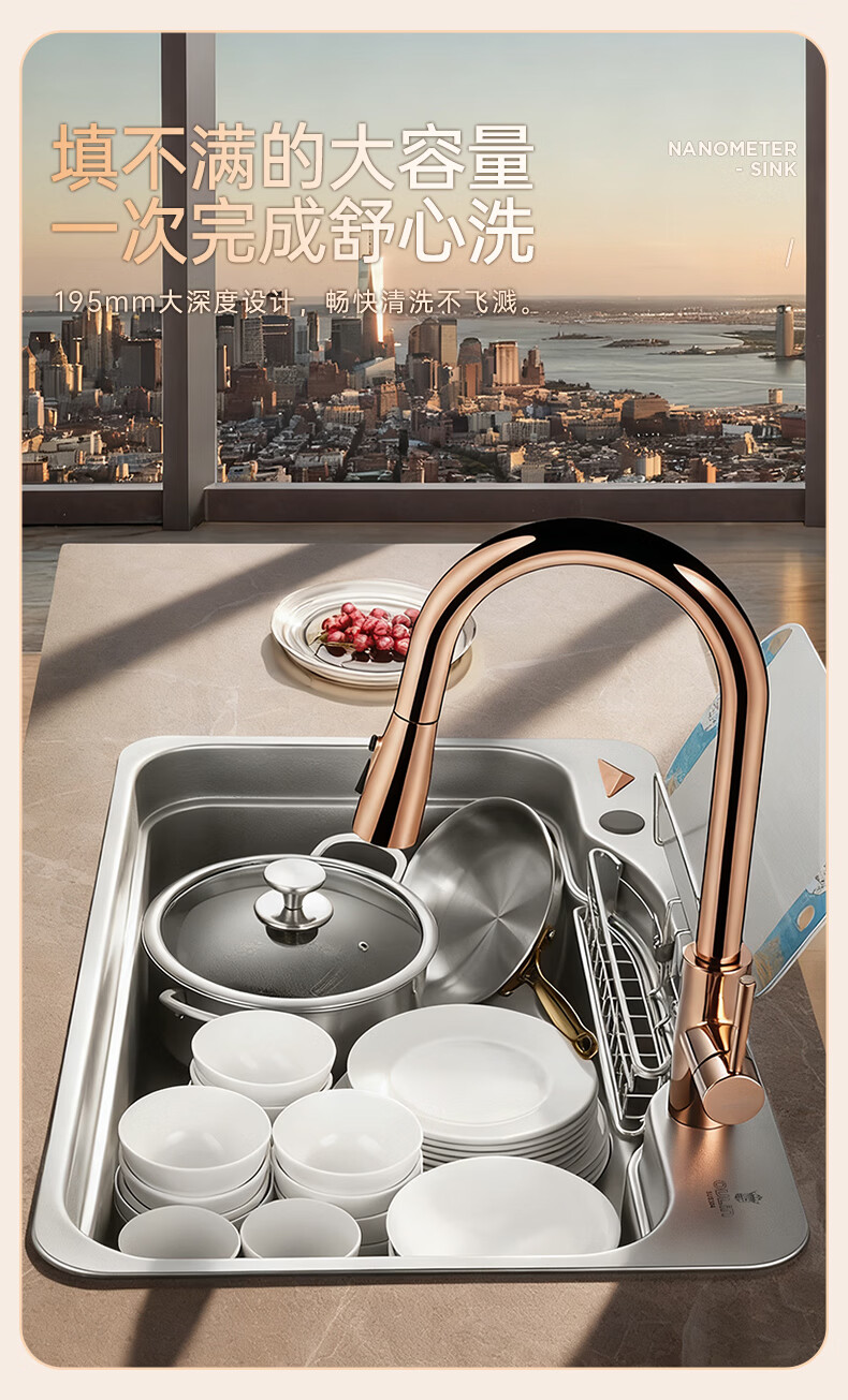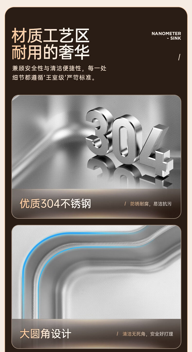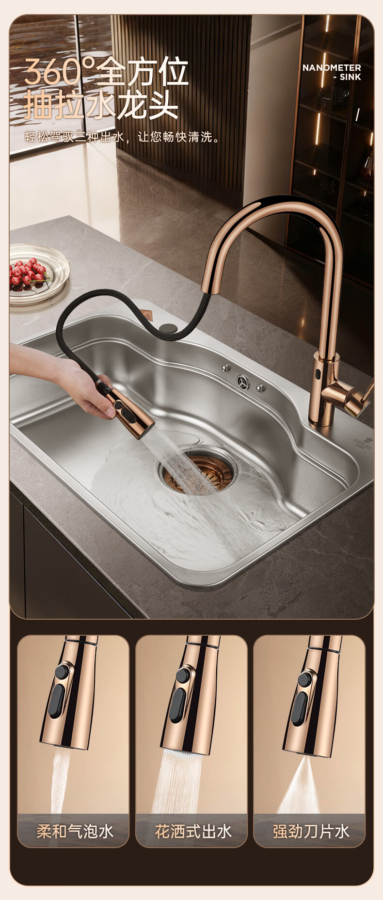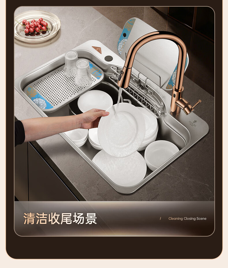 欧琳(OULIN)白金汉宫水槽304不锈钢厨房大单槽压纹耐刮洗碗池家用轻奢洗菜盆 鎏金轻奢日式收纳槽 外观780mm*500mm