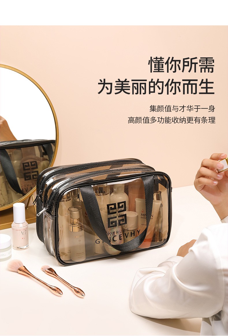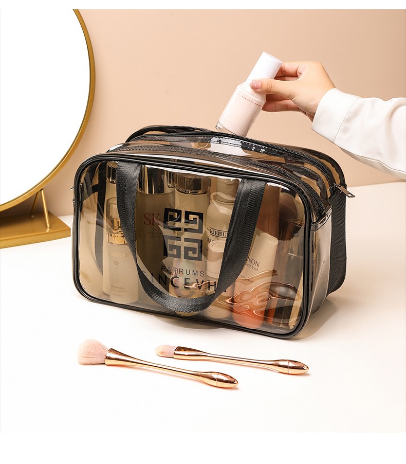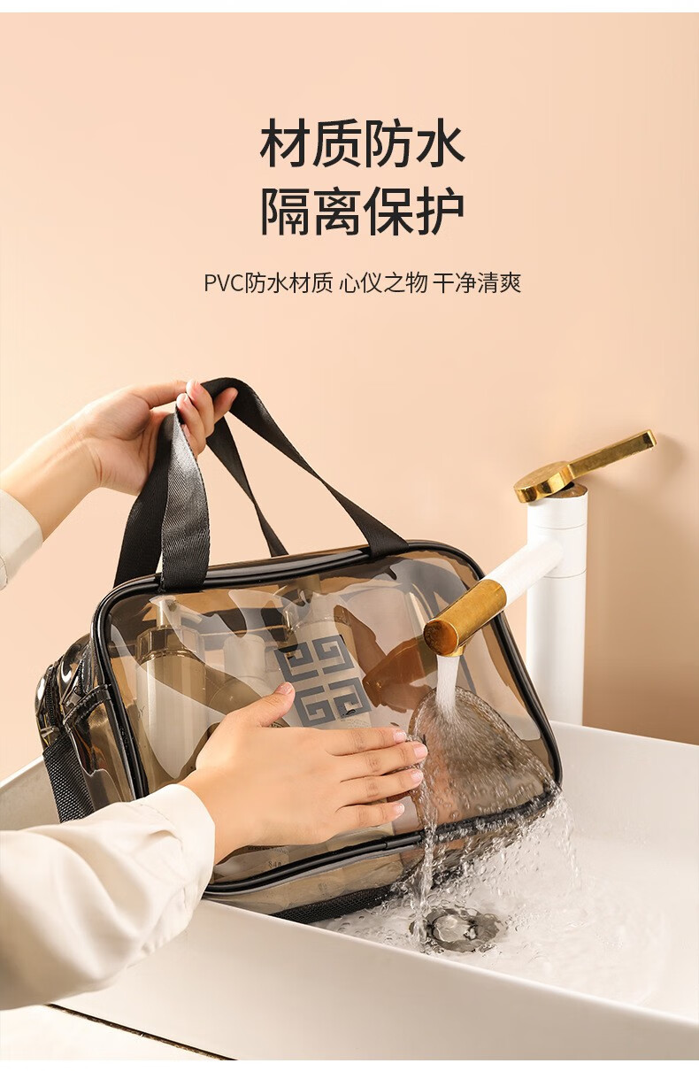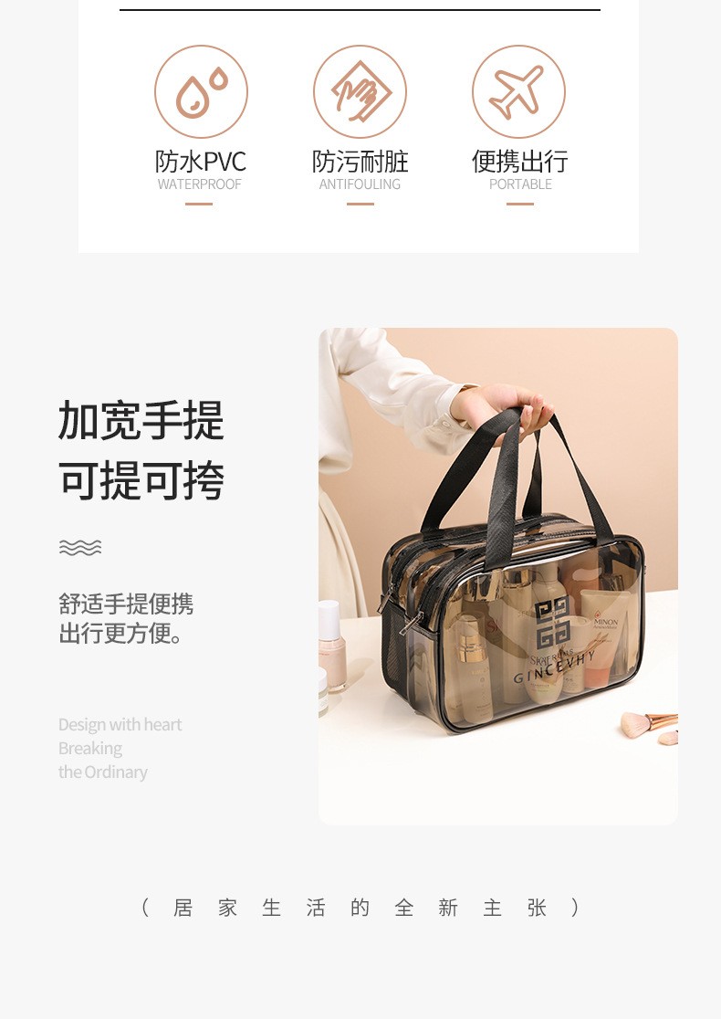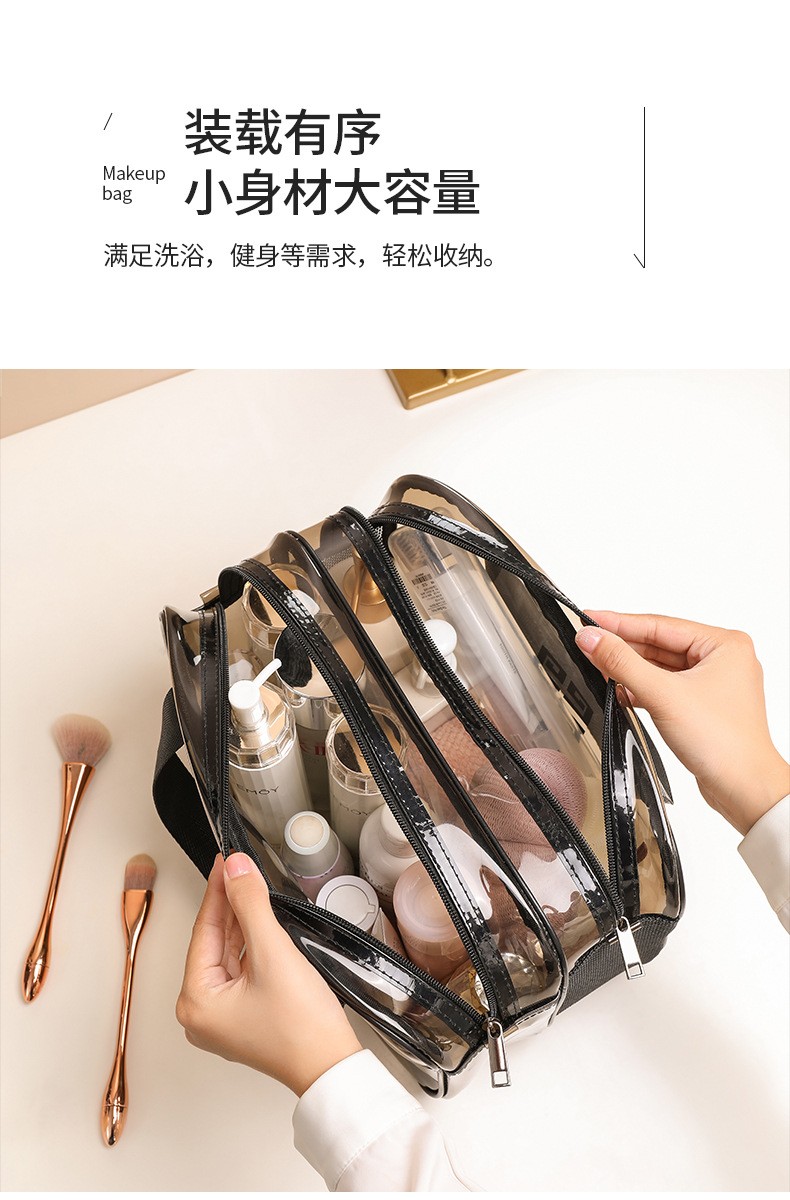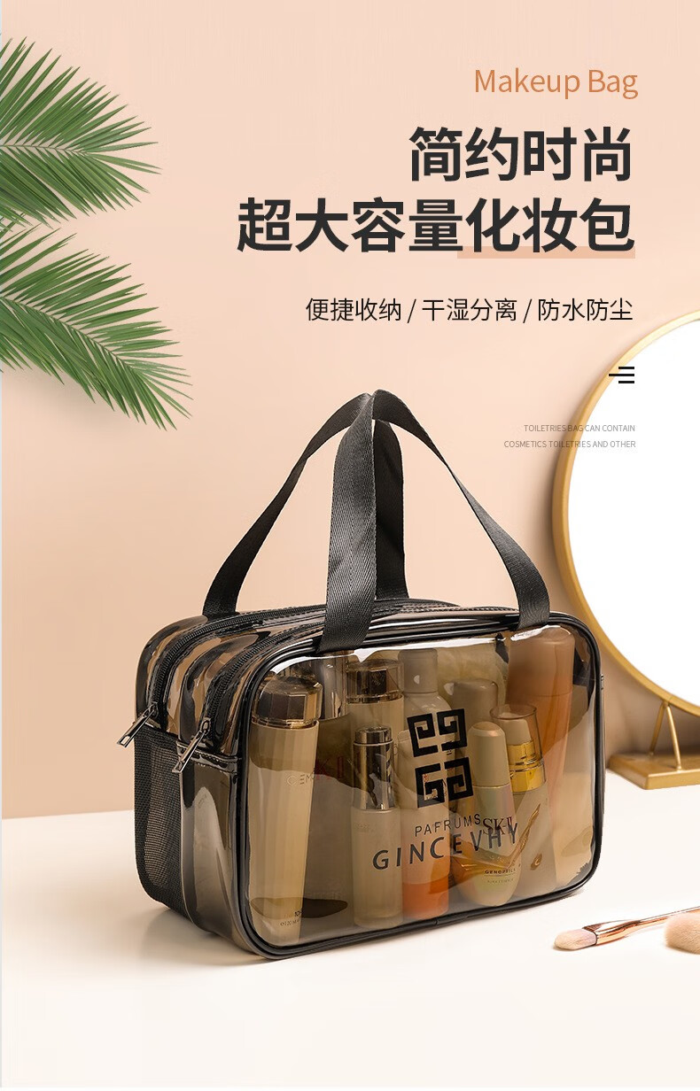 米德恩 透明化妆包防水干湿分离双层大容量便携洗漱包旅行健身洗澡收纳包 双层灰色大号