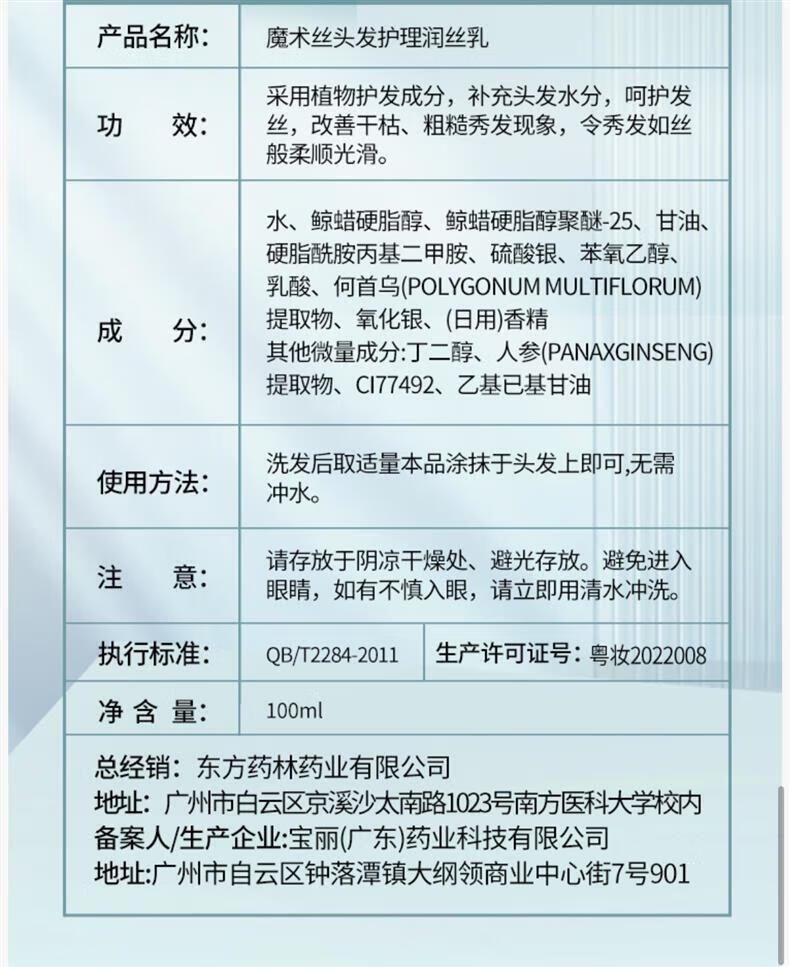 魔术丝【官方店】东方药林头发护理润丝乳新款精华乳乌发乳头皮护1瓶 1瓶常规款