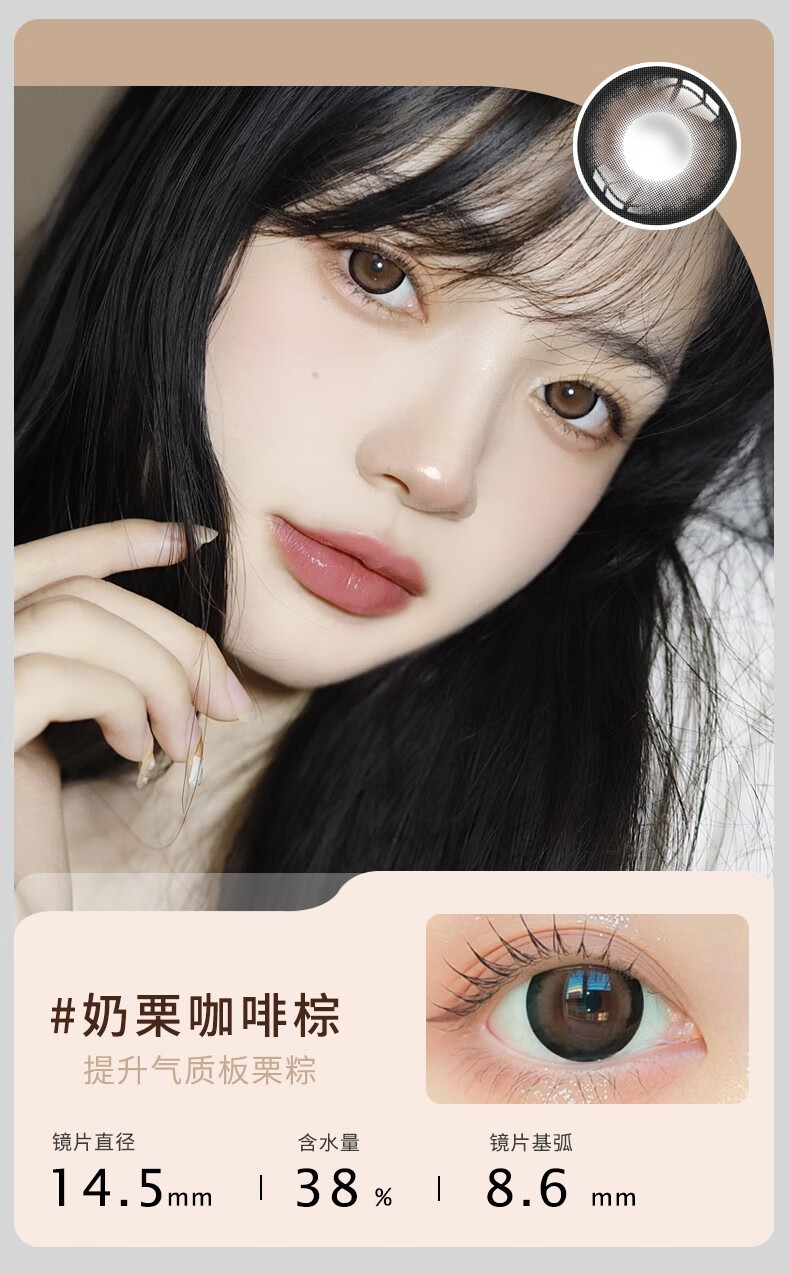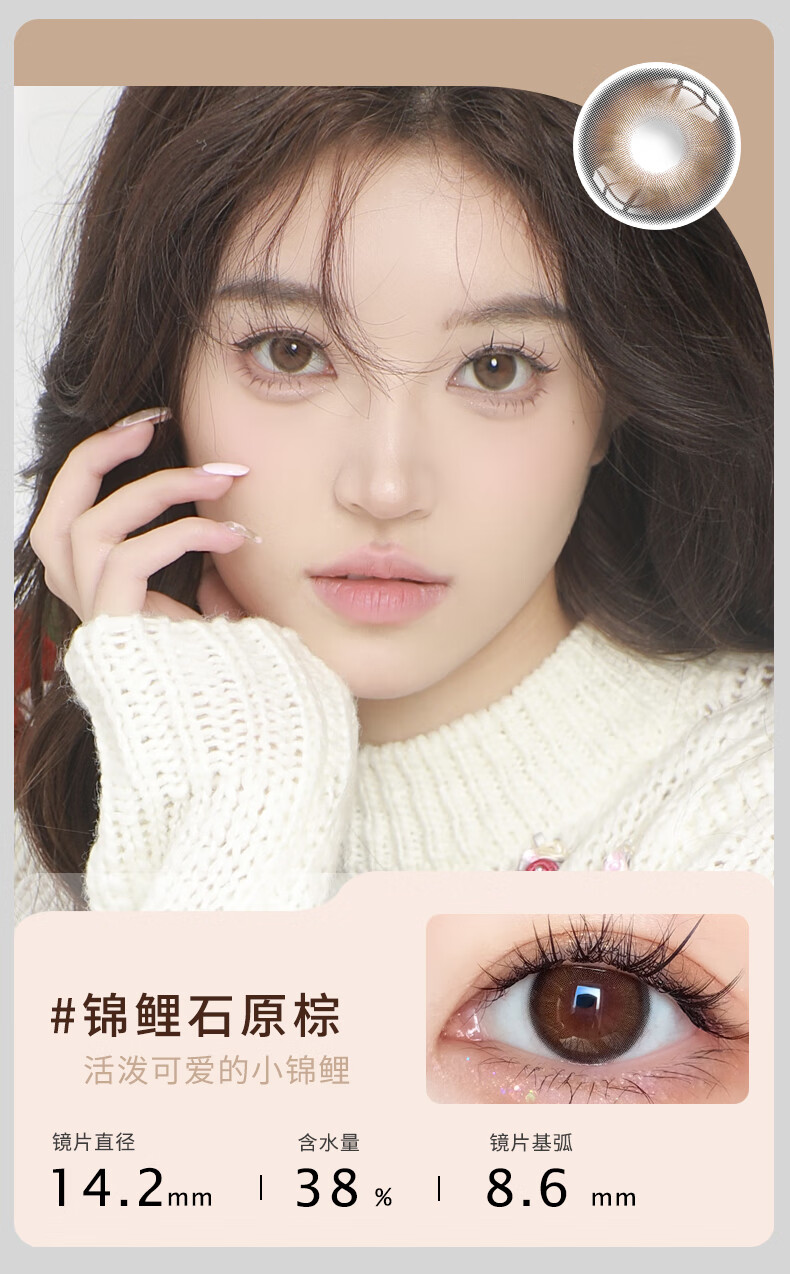 Color Baby美瞳半年抛2片韩国进口14.5大直径自然素颜显色提亮彩色隐形眼镜 锦鲤石原棕 100度