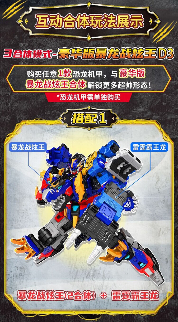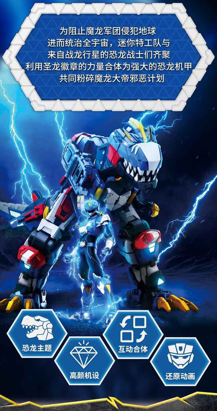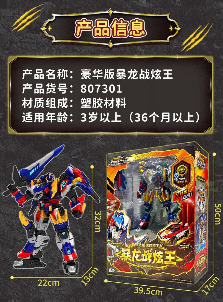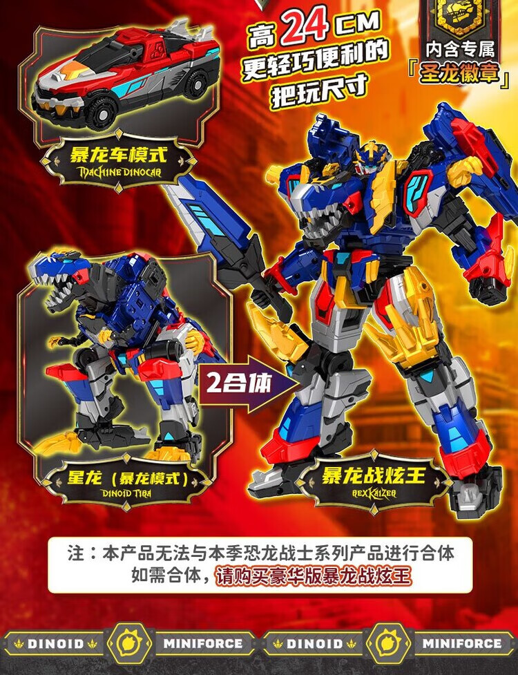 迷你特工队8战炫王变形玩具男孩动画同款恐龙合体礼盒正版 酷玩版【金刚龙】2合体/大尺寸