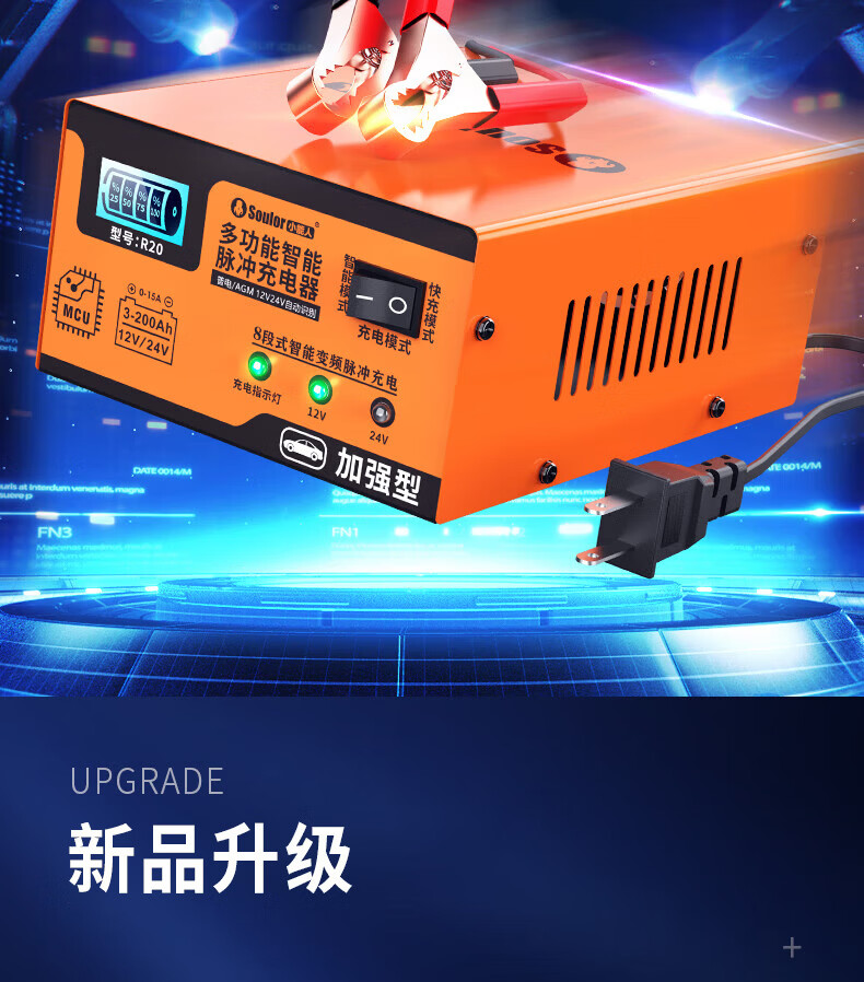 小能人(soulor) R20汽车电瓶充电器12V24V通用纯铜摩托车轿车货车充电加强修复款