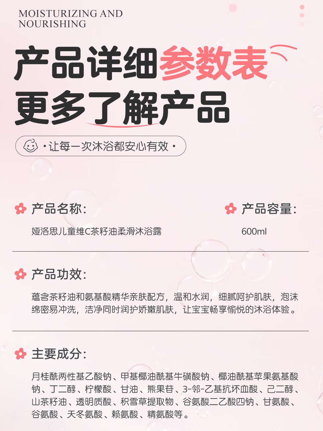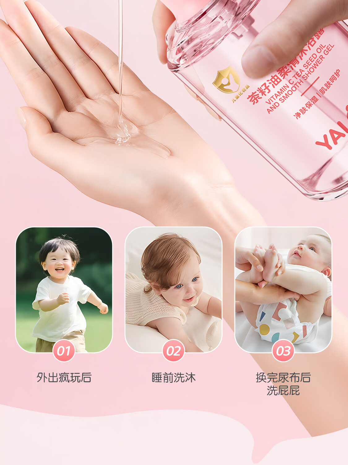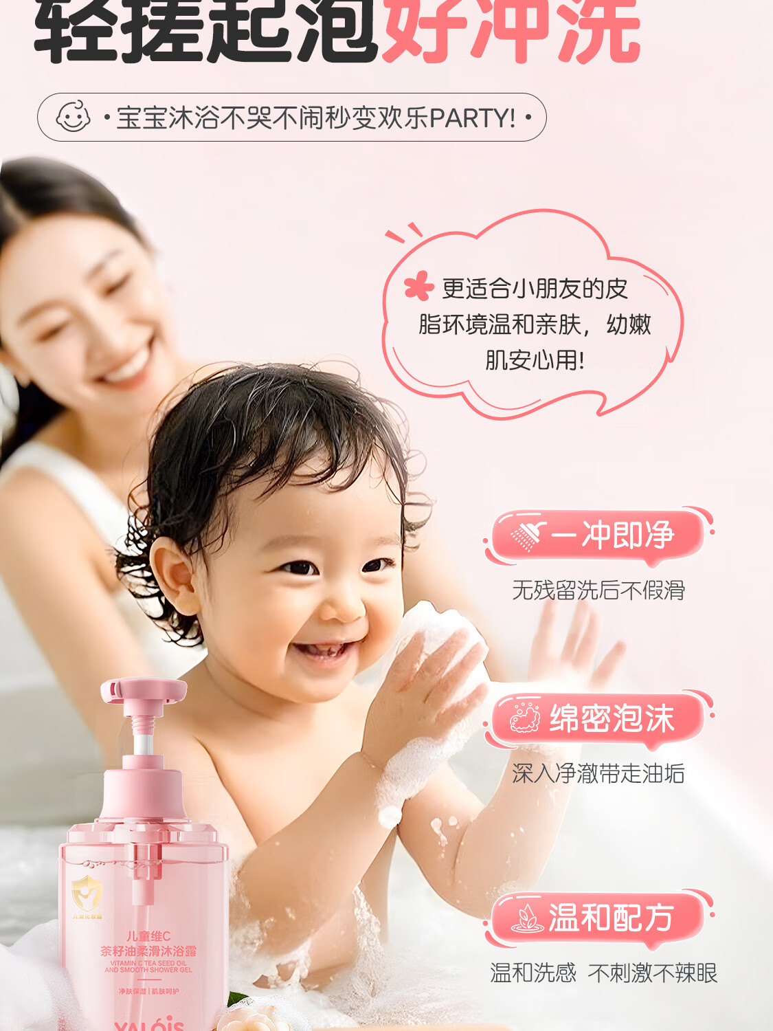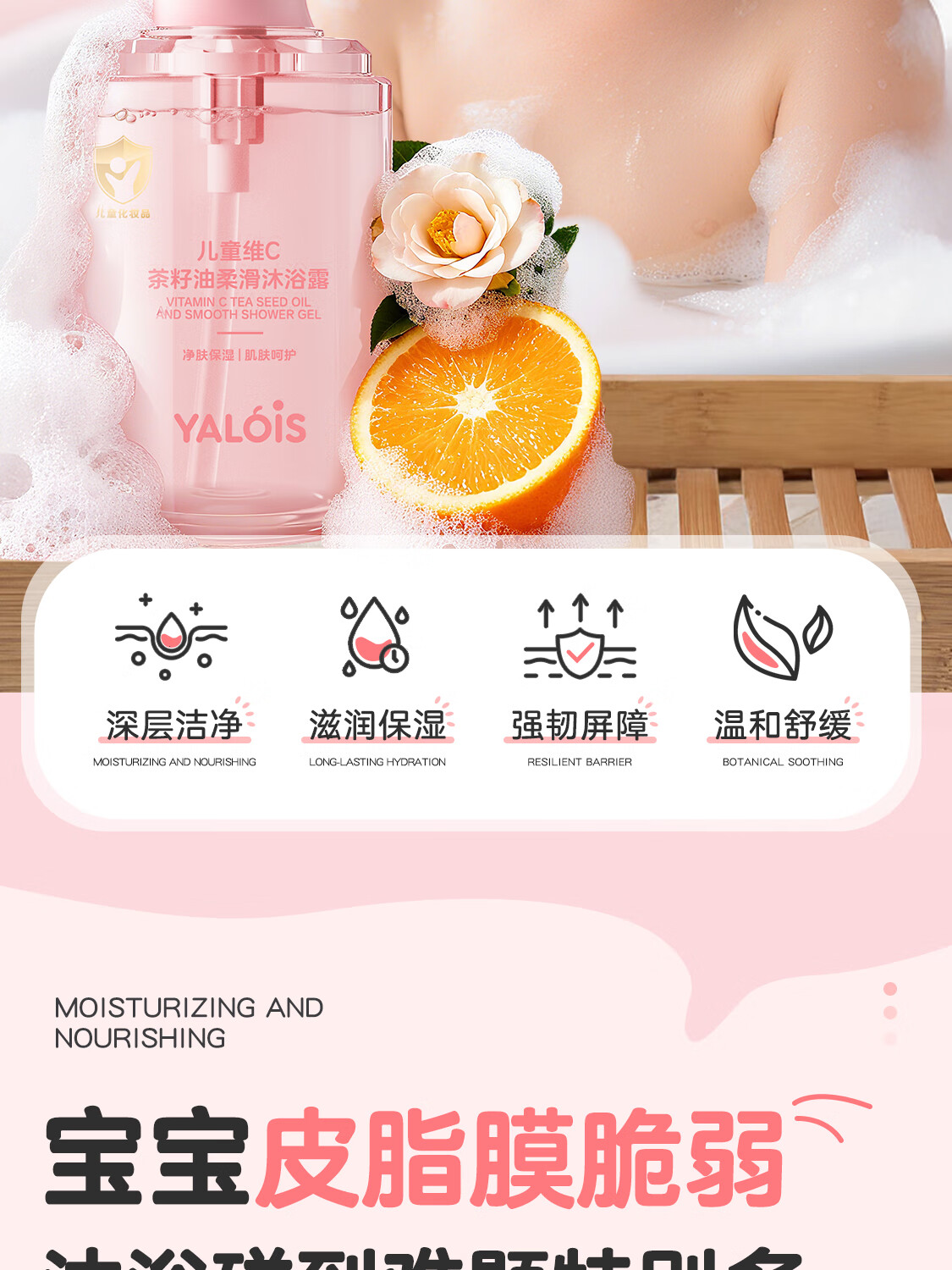 YALOIS儿童维C茶籽油沐浴露洗护二合一新生儿婴儿大童沐浴乳3-12岁600ml