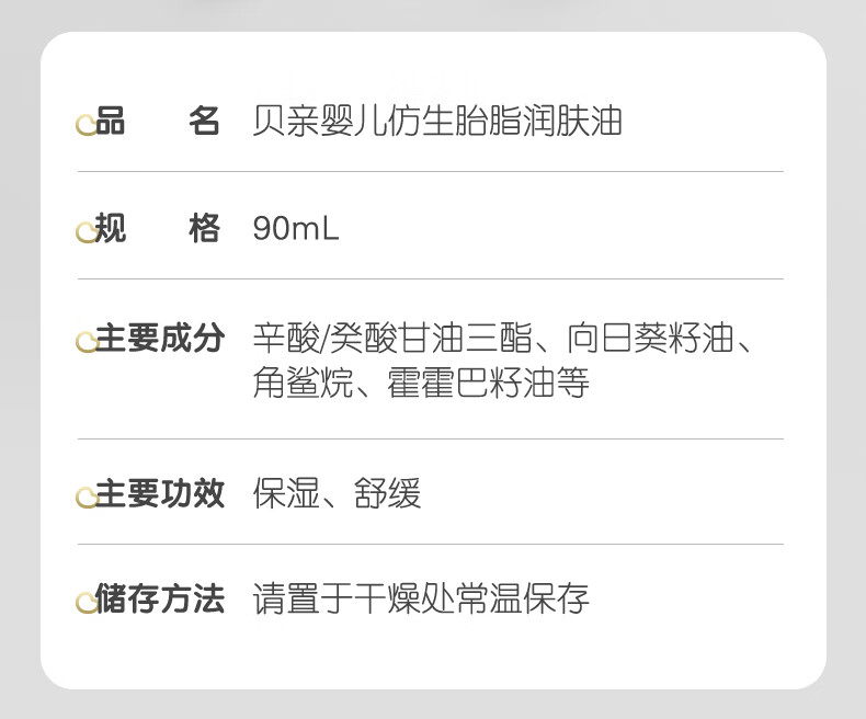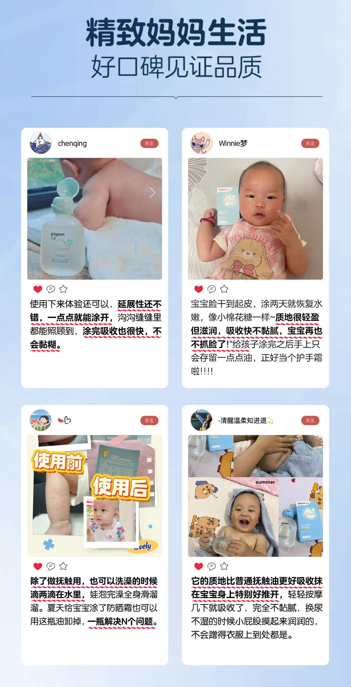 贝亲(Pigeon)婴儿仿生胎脂润肤油90ml IA312