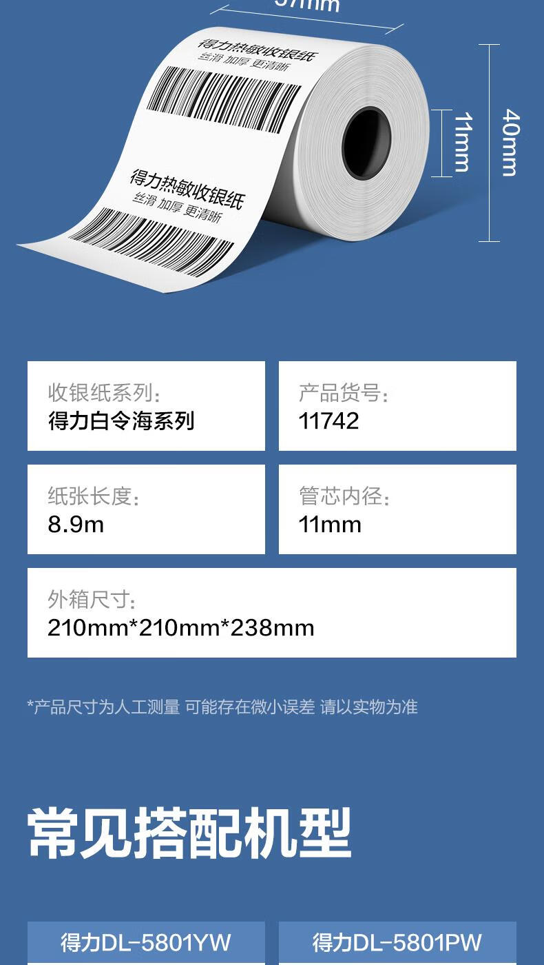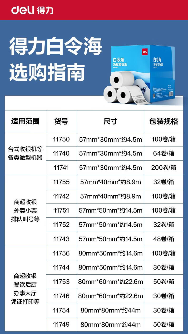 得力(deli)热敏收银纸 京东美团外卖收银打印纸 ZS157