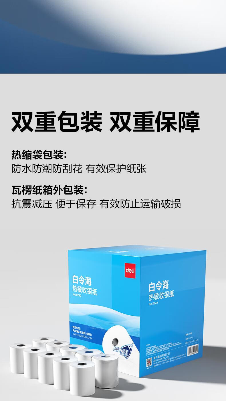 得力(deli)薄荷海三防热敏标签纸 快递面单不干胶打印纸 70*20mm-1000枚(白)(1卷/筒)