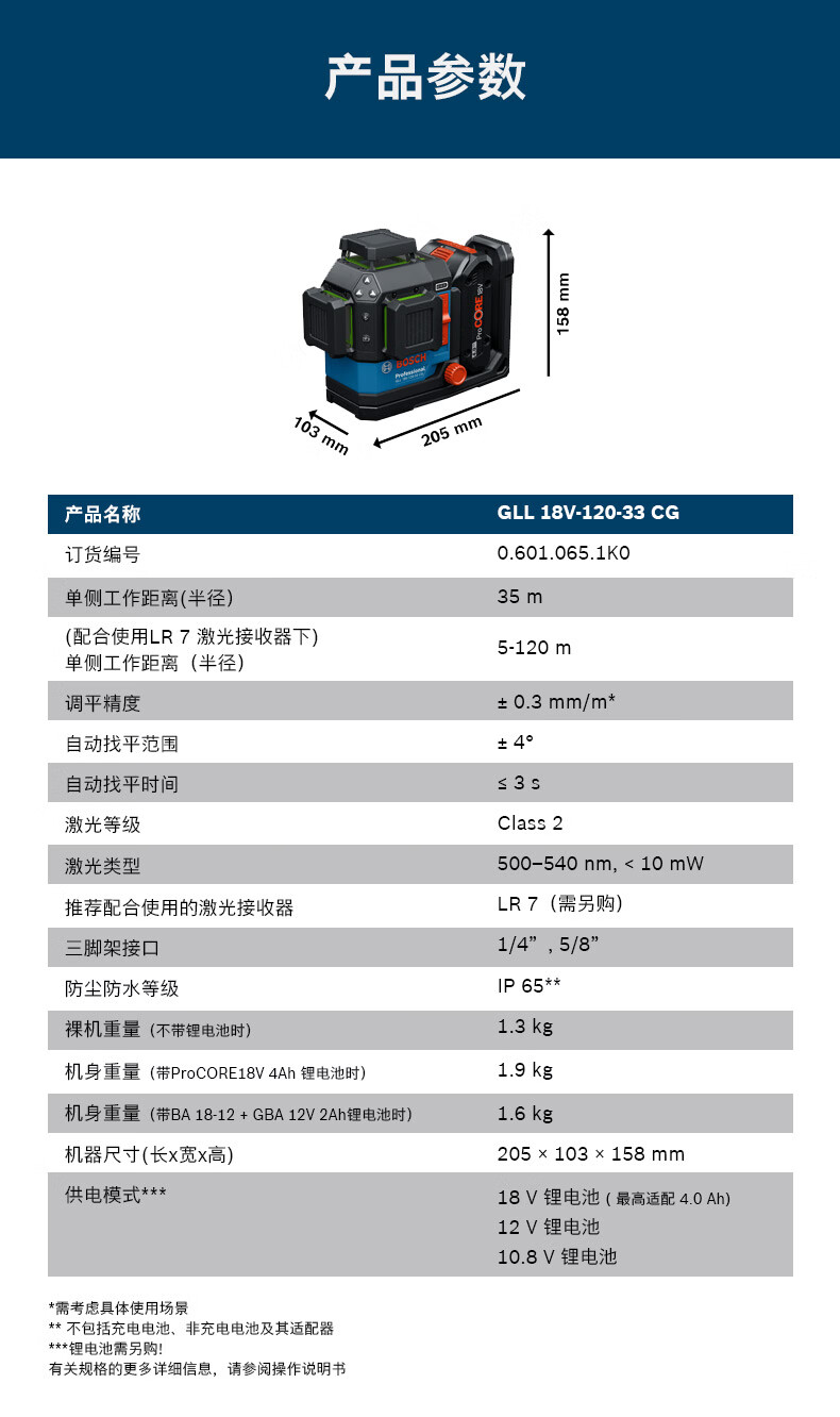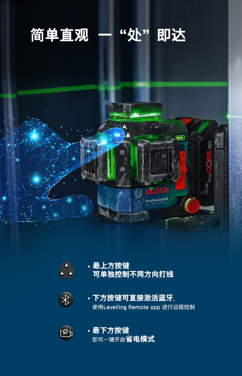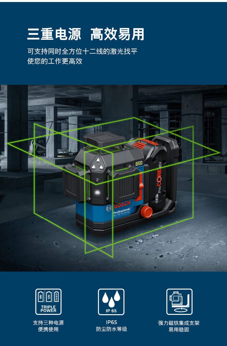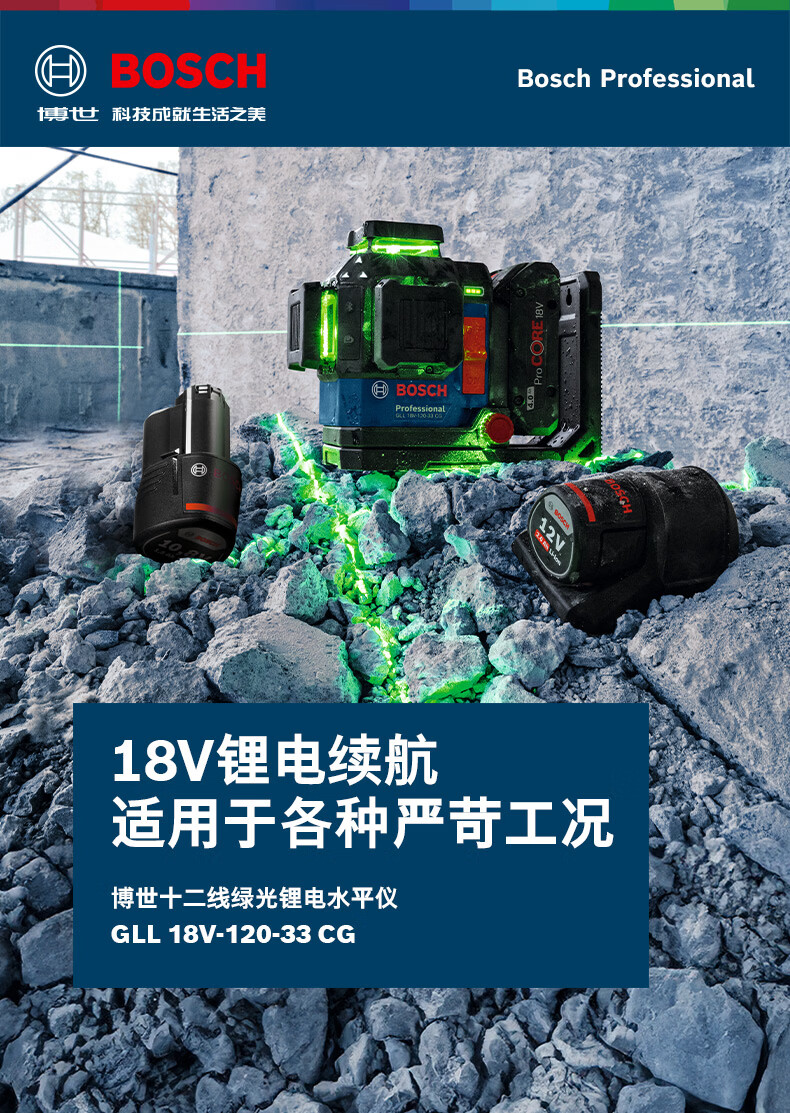 博世(BOSCH)GLL 18V-120-33 CG锂电十二线绿光水平仪专业级高精度激光标线仪 官方标配(不含电池)