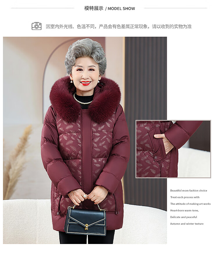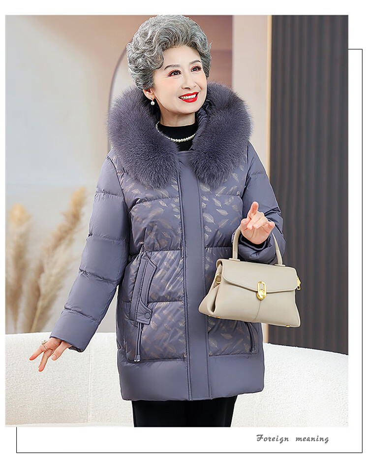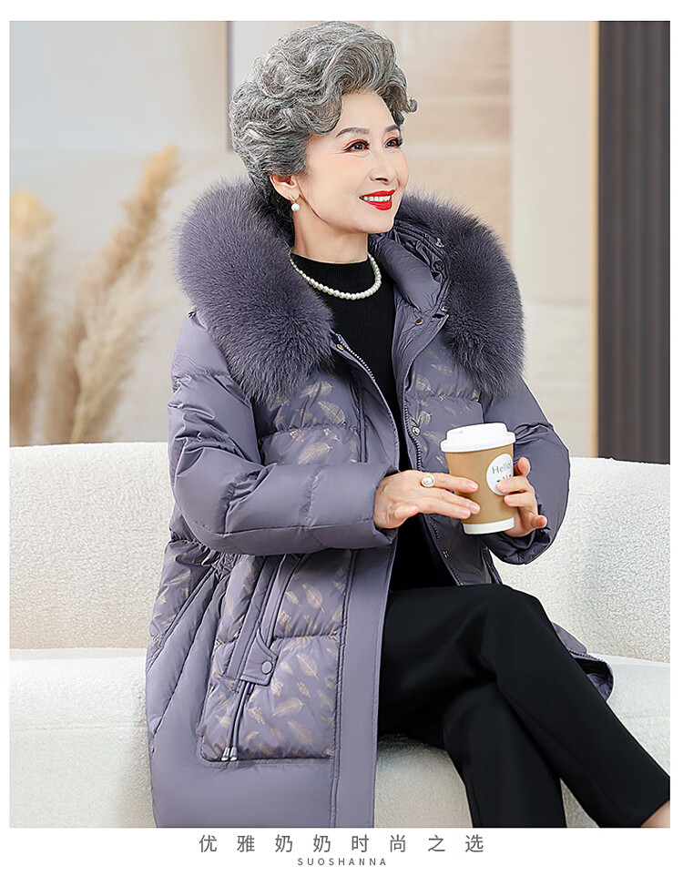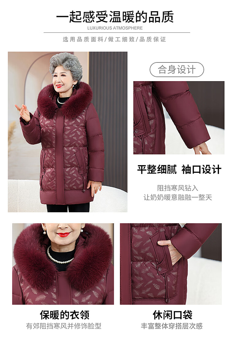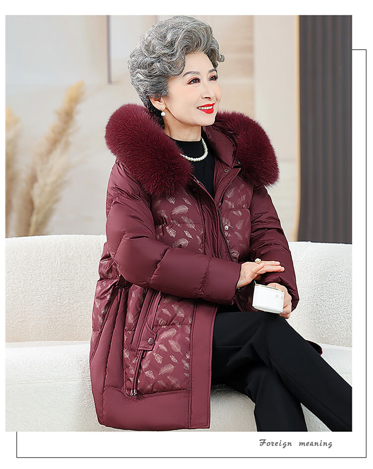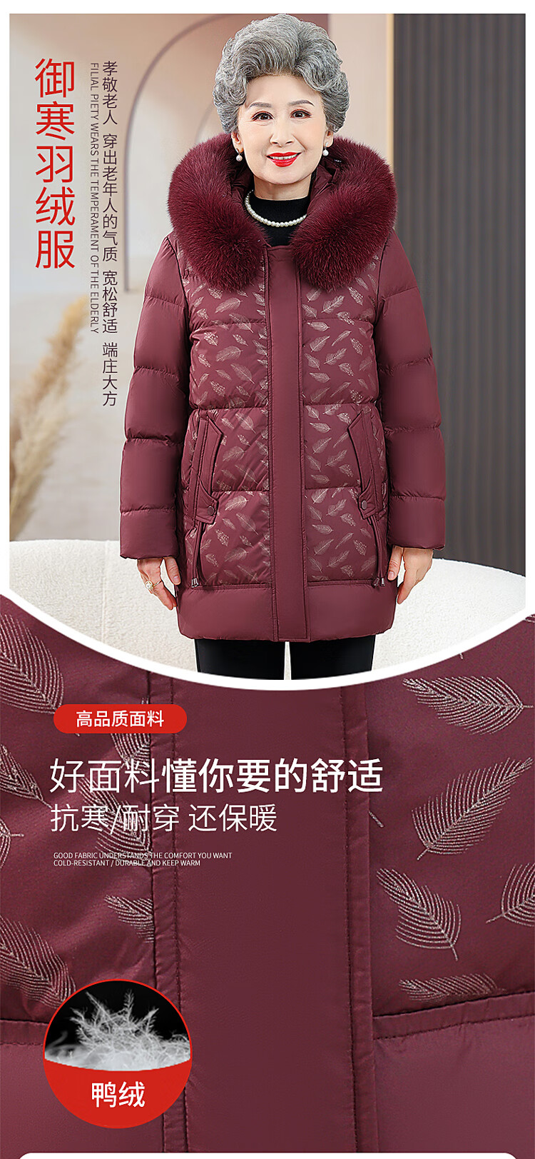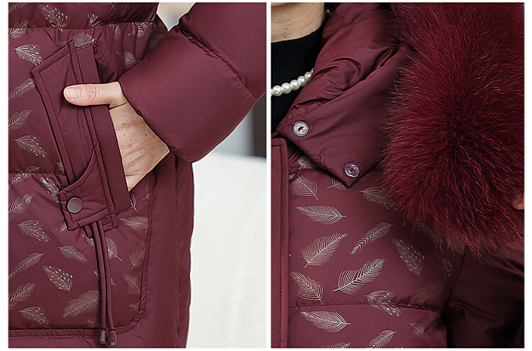 雪中飞羽绒服女2025款中长款狐狸毛领保暖外套气质优雅奶奶装30903 酒红 L (170) 90-110斤