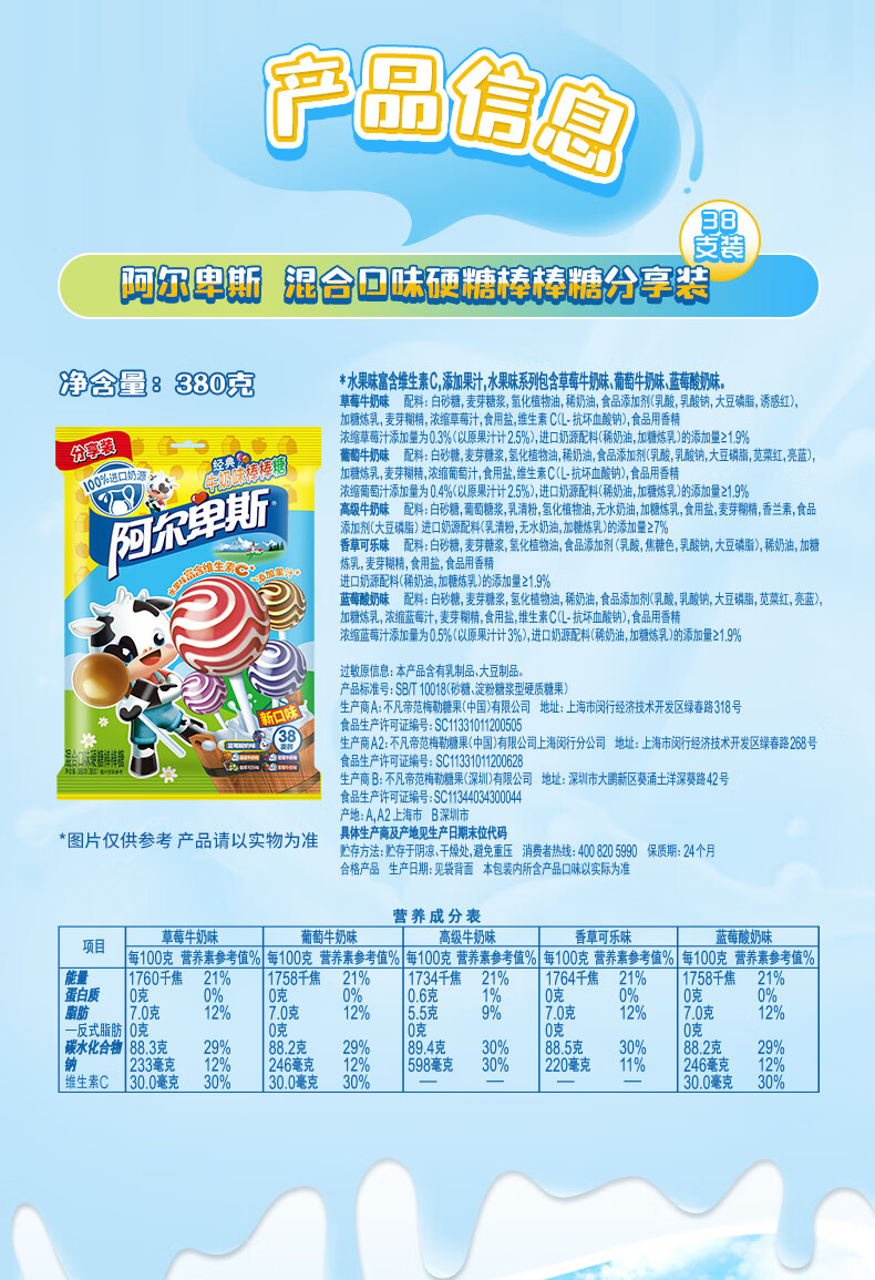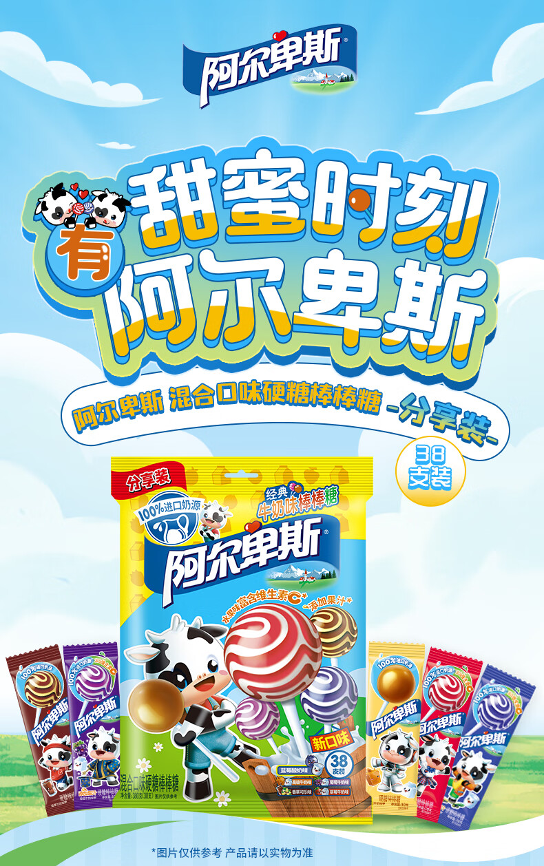 阿尔卑斯 混合口味棒棒糖380g (38支) 休闲零食儿童水果果汁硬糖礼物分享