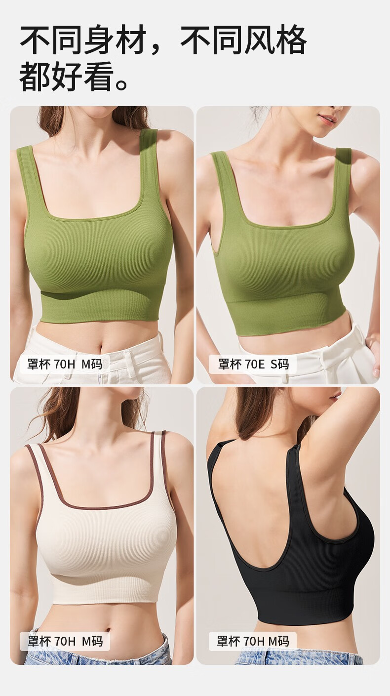 奶糖派美背沙漏衣带胸垫文胸一体显瘦性感针织背心送女友大胸吊带 黑色 S (65/70B-G)