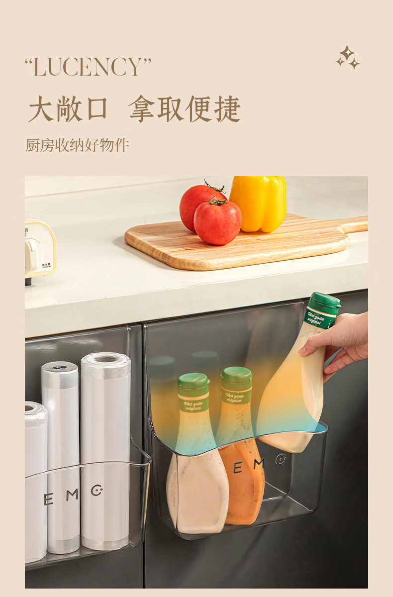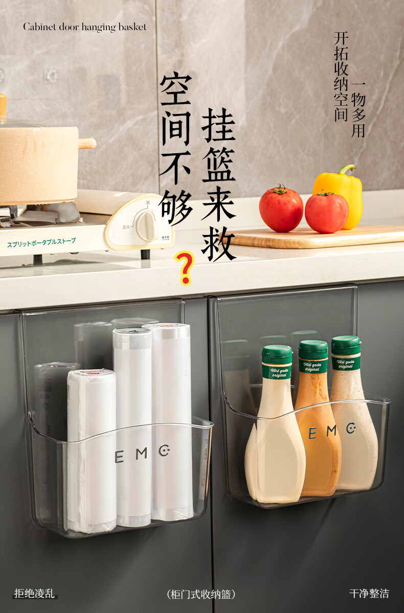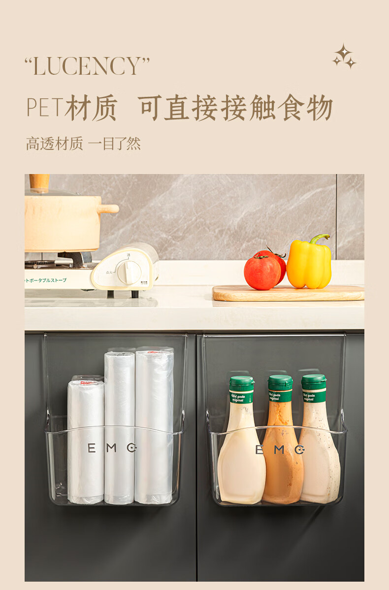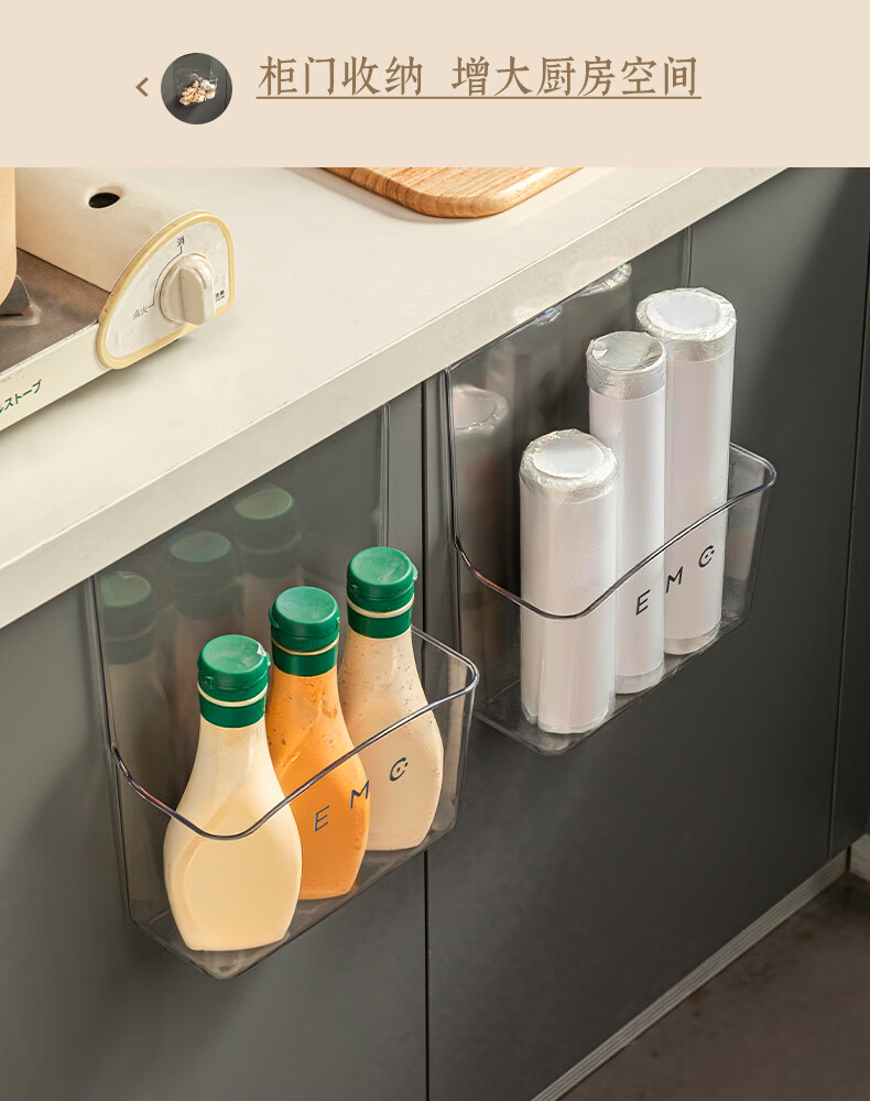 甘香屋柜门收纳盒侧门调料盒厨房姜蒜透明挂篮置物架菜篮保鲜膜垃圾袋盒 透明2个