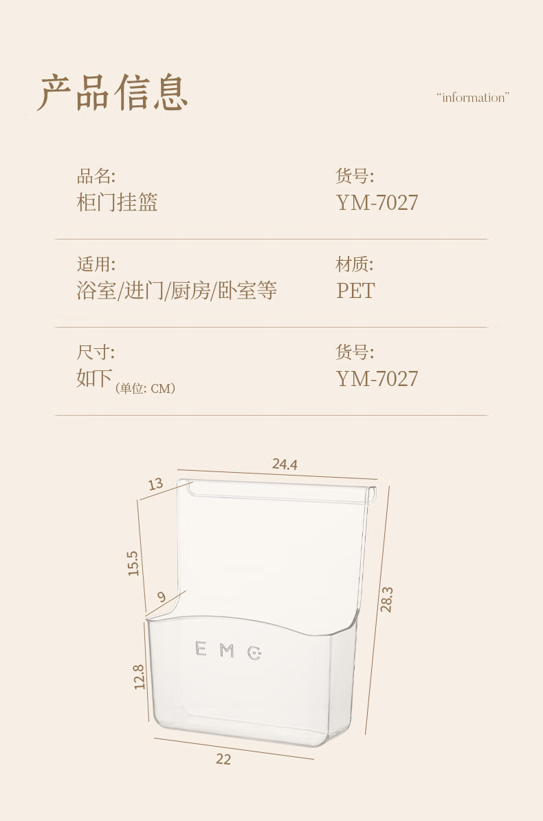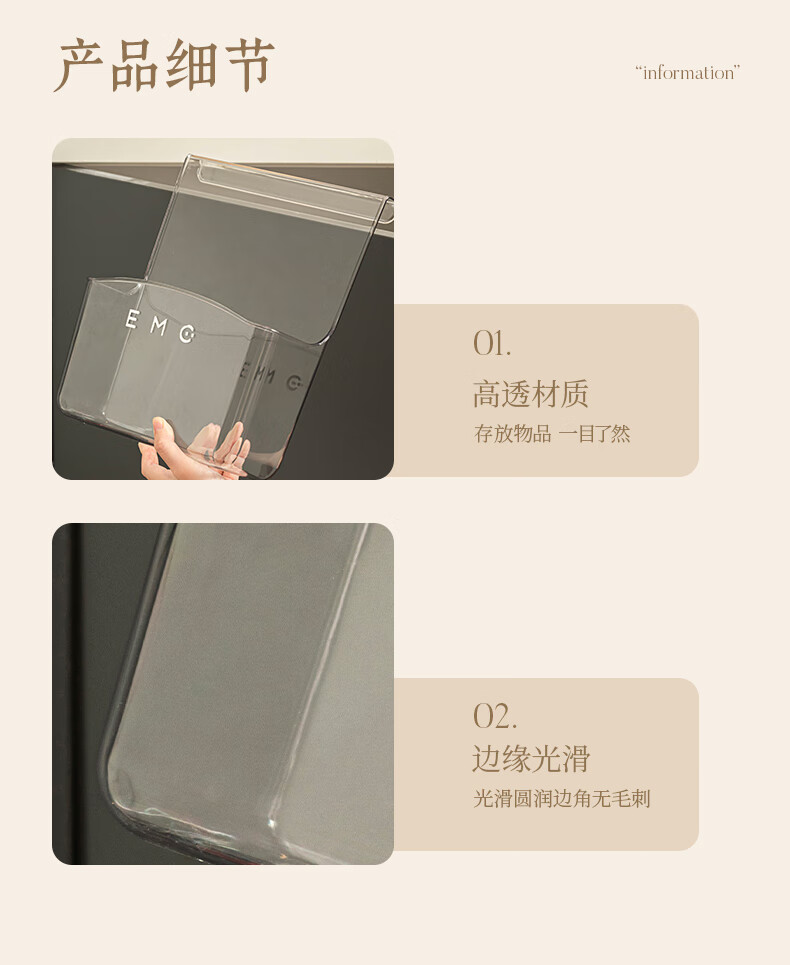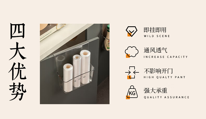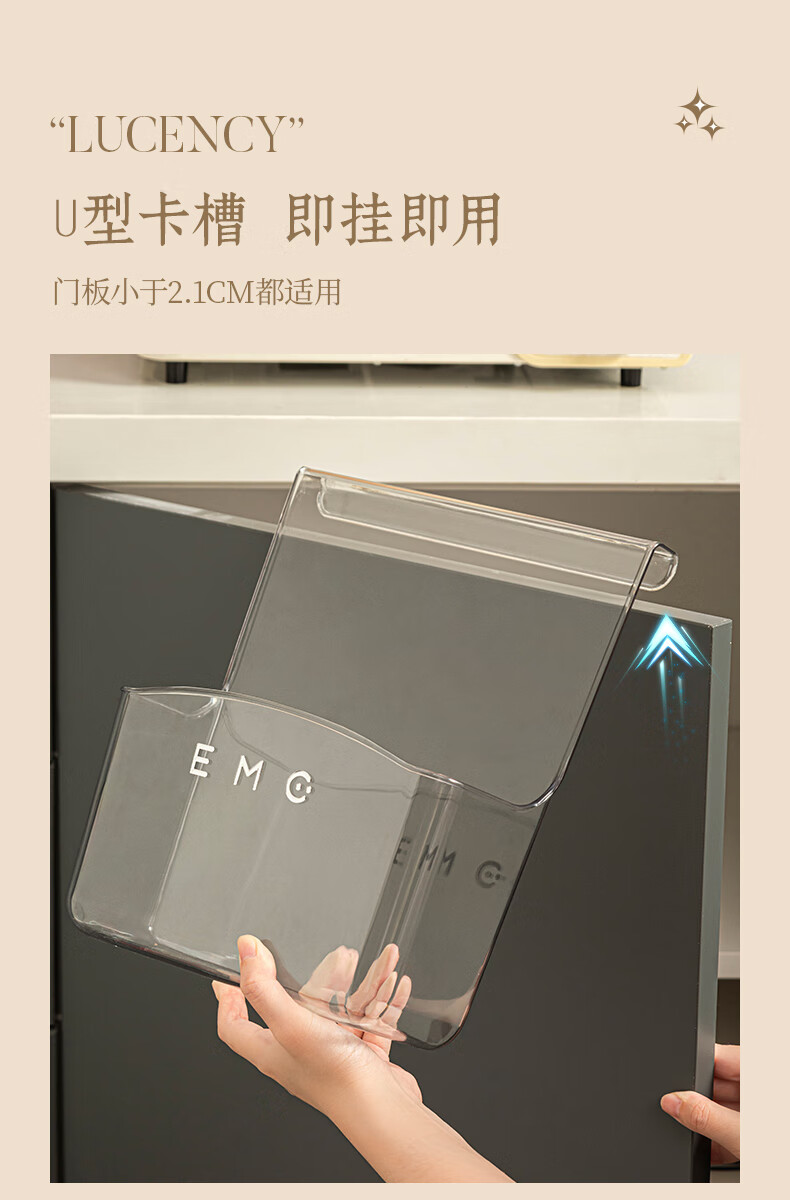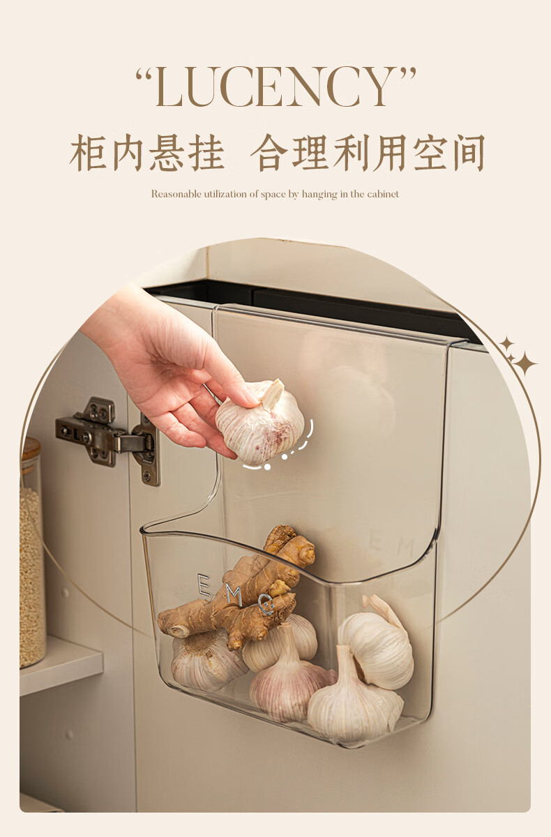 甘香屋柜门收纳盒侧门调料盒厨房姜蒜透明挂篮置物架菜篮保鲜膜垃圾袋盒 透明2个