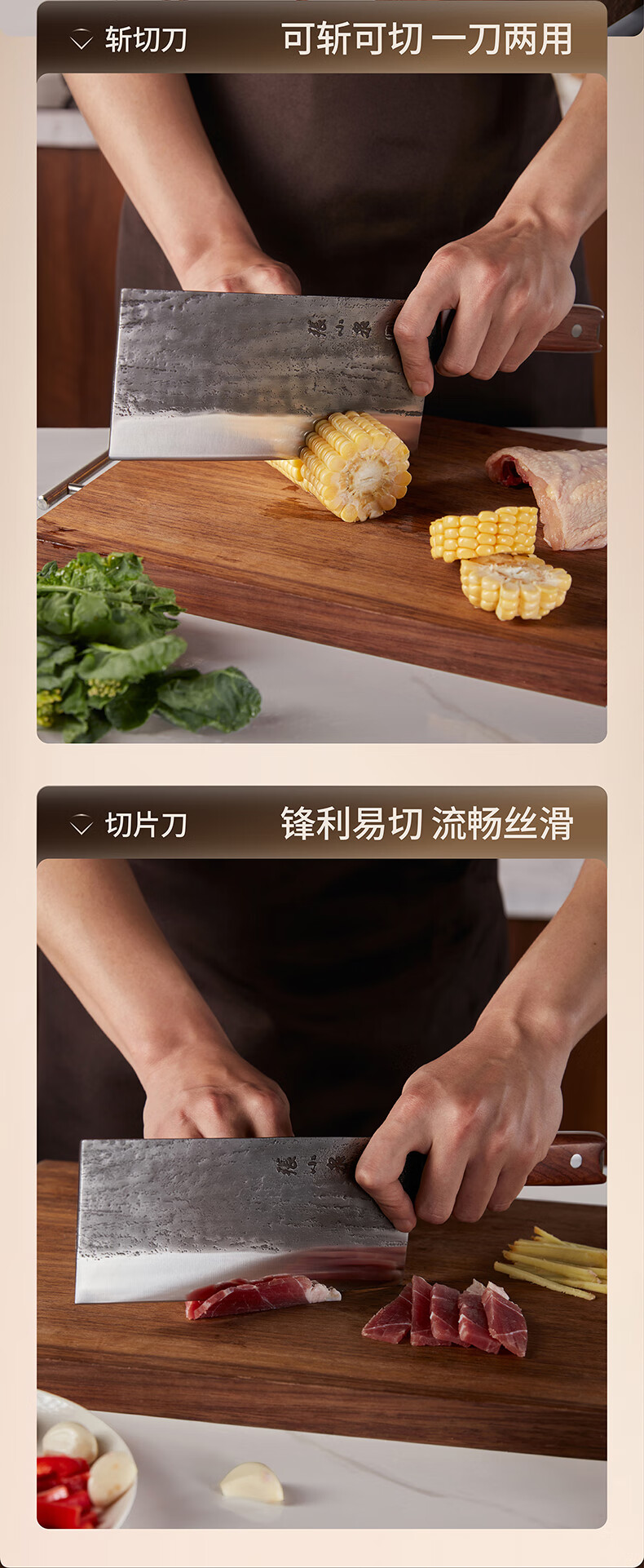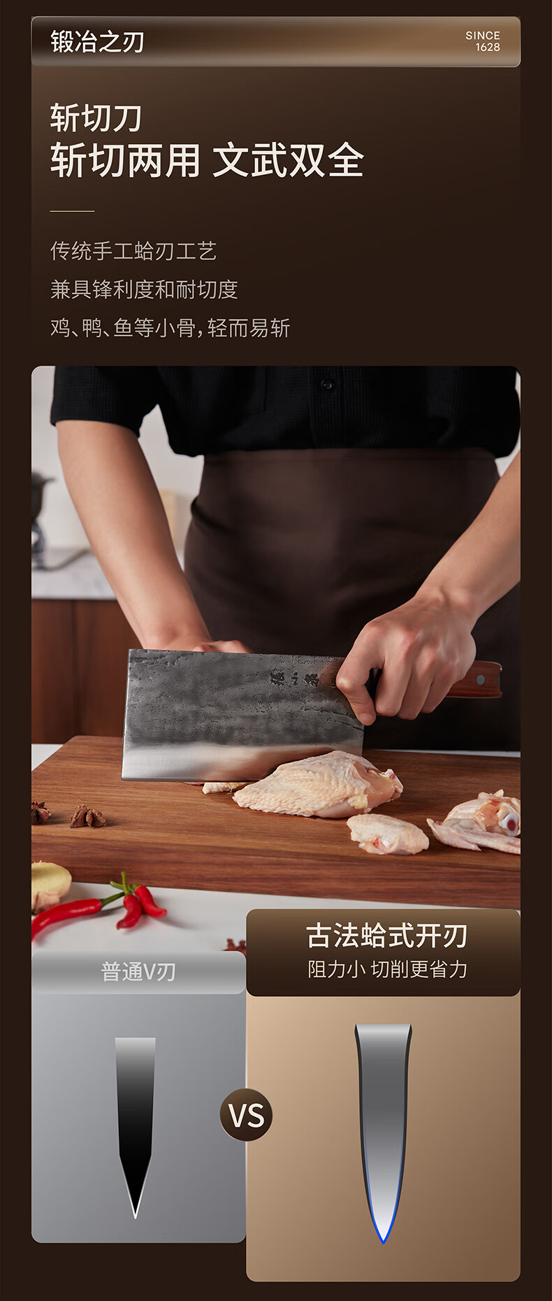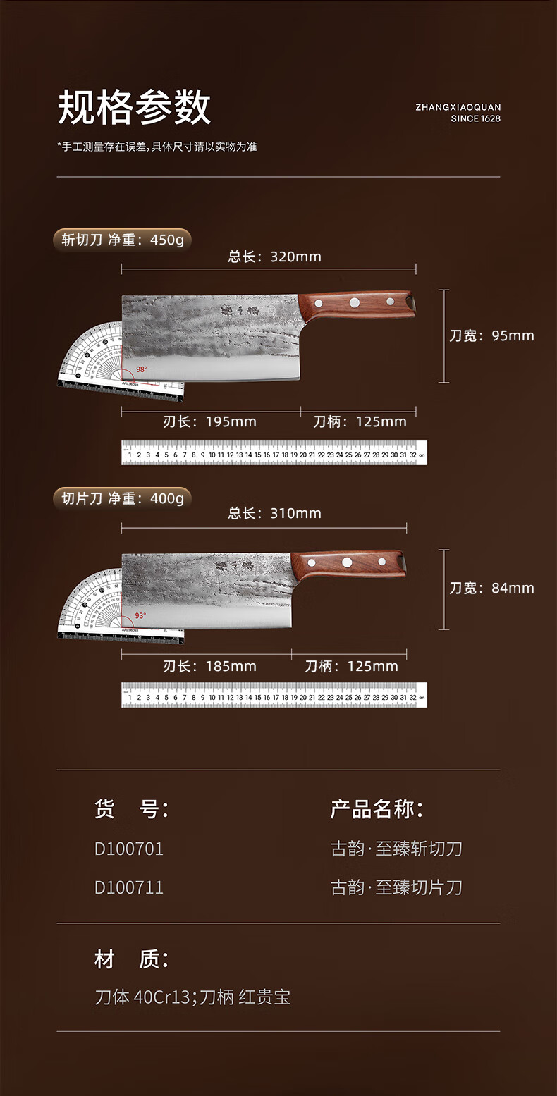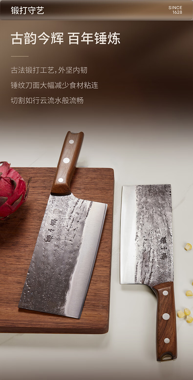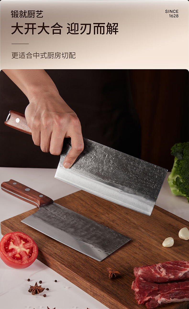 张小泉至臻手工锻打斩切刀超快家用不锈钢厨房菜刀切菜切肉商用厨具 斩切刀 125mm