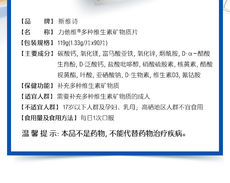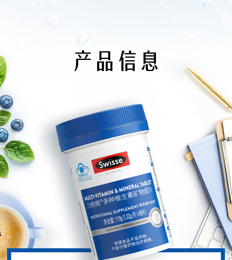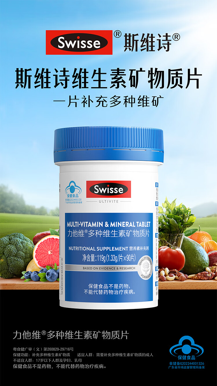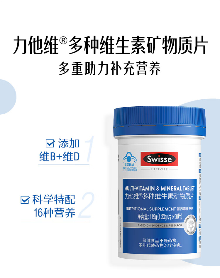Swisse斯维诗 力他维多种维生素矿物质片 蓝帽认证「联盟专享」 【男士复合维生素】1.33g/片*90片*1瓶