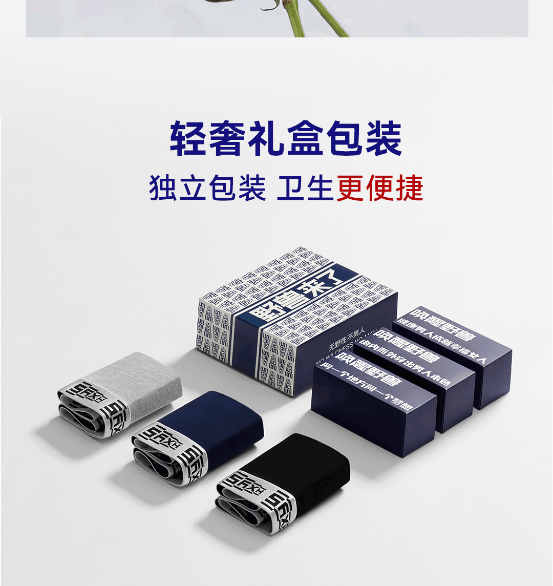野兽来了唤醒野兽冰川系列冰丝男士内裤100A抗菌物理养护生蚝素健康平角裤 三条礼盒包装-棉款 4XL (建议体重170-200斤)