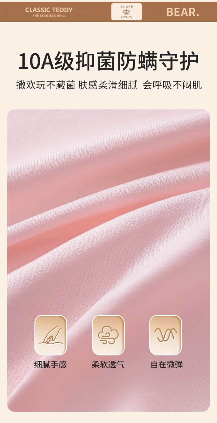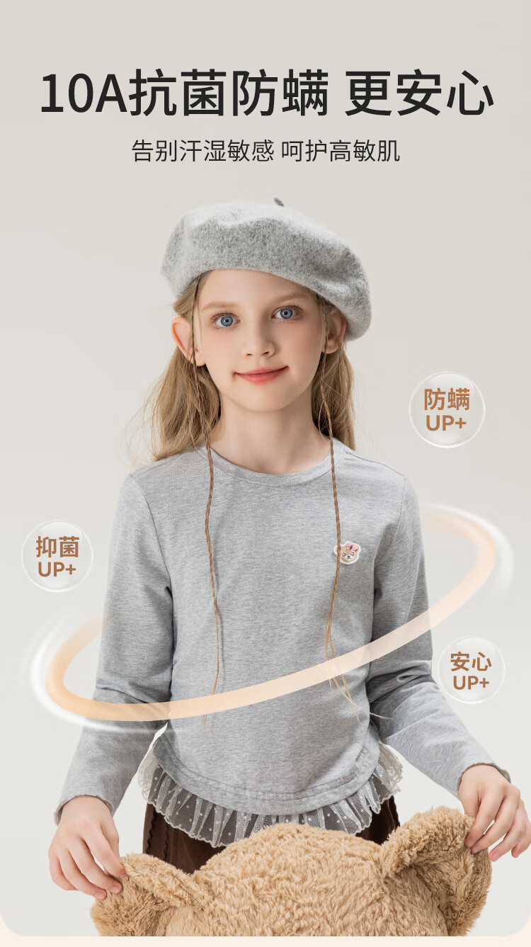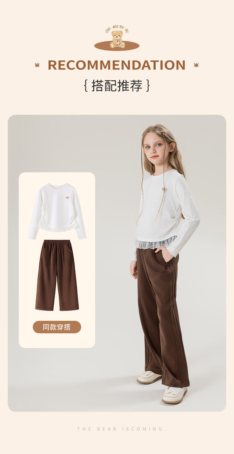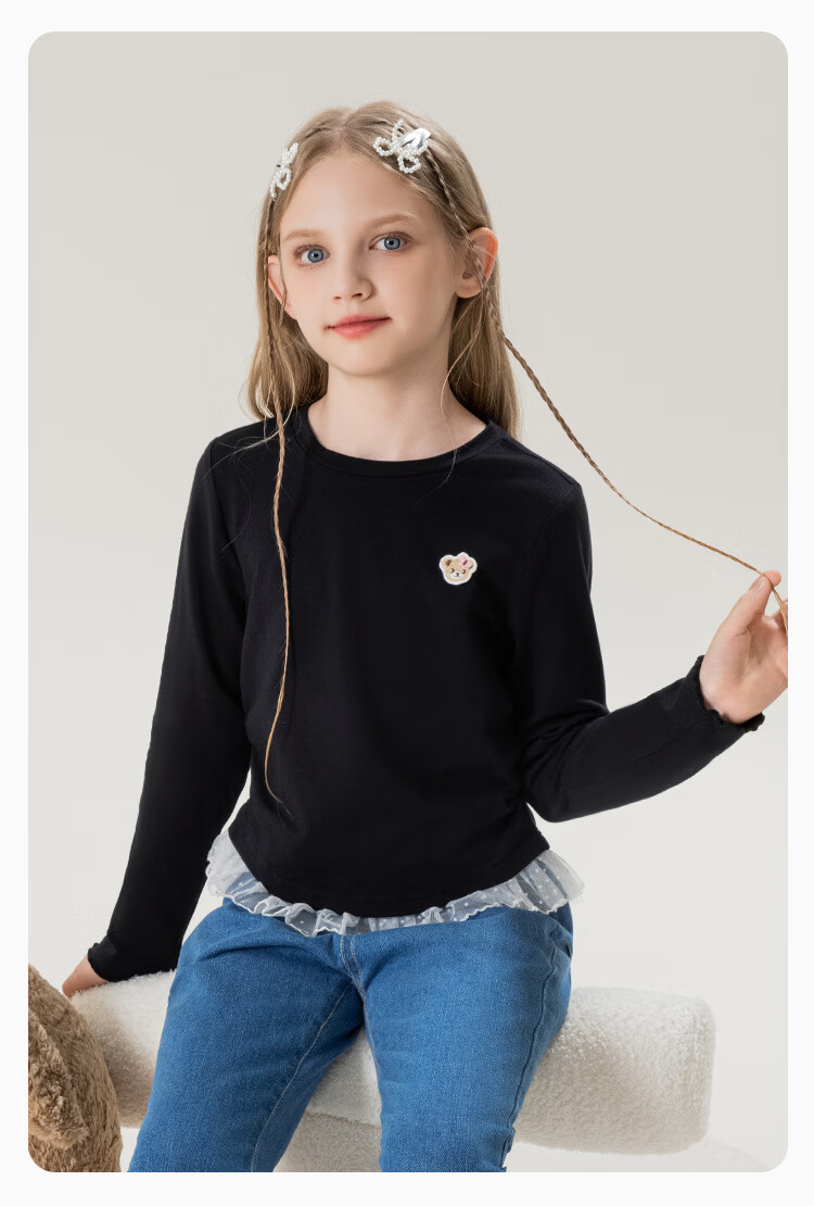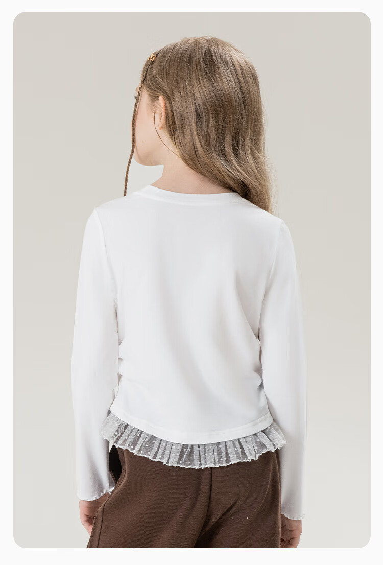 Classic Teddy女童柔软打底衫春季新品抑菌长袖T恤蕾丝边休闲上衣 皮粉 90